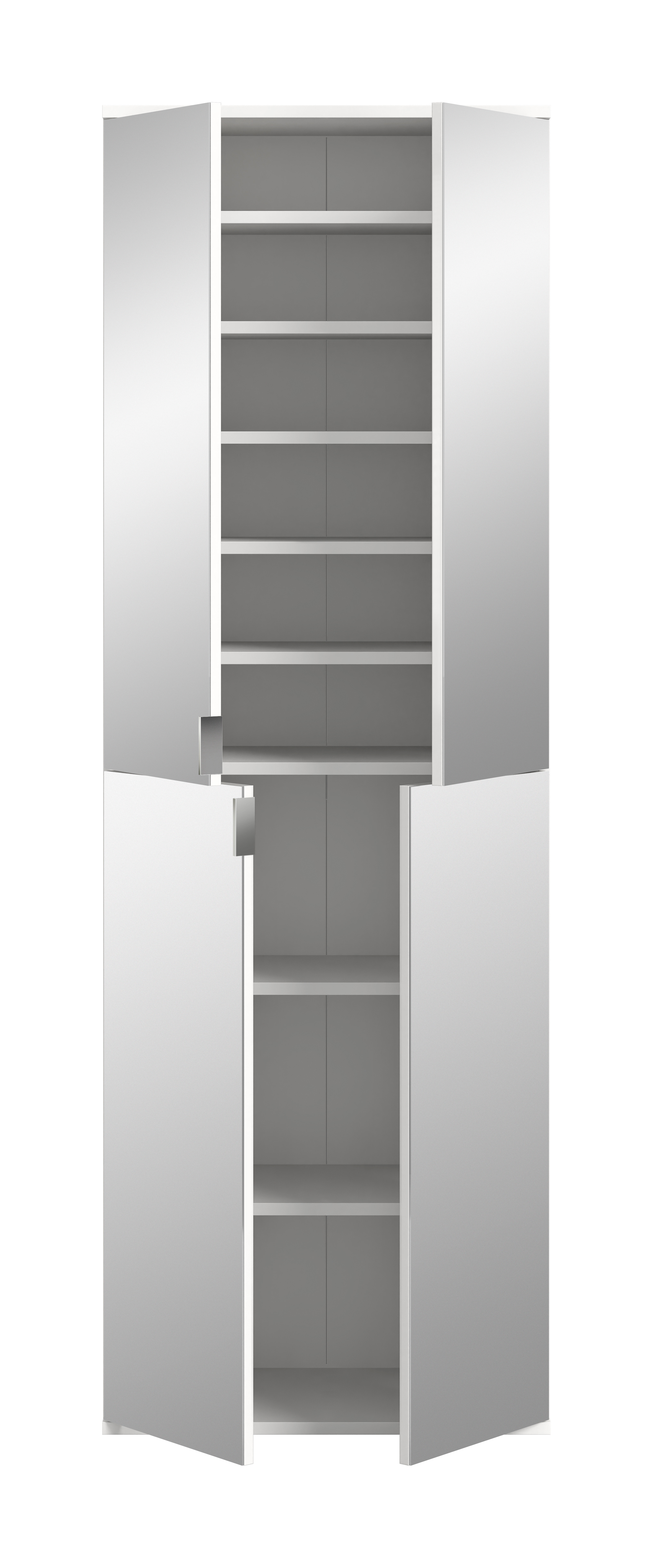 1 Garderobenschrank mit 2 Türen mit Spiegel, 7 Einlegeböden, 1 Konstruktionsboden und 1 Kleiderstange
