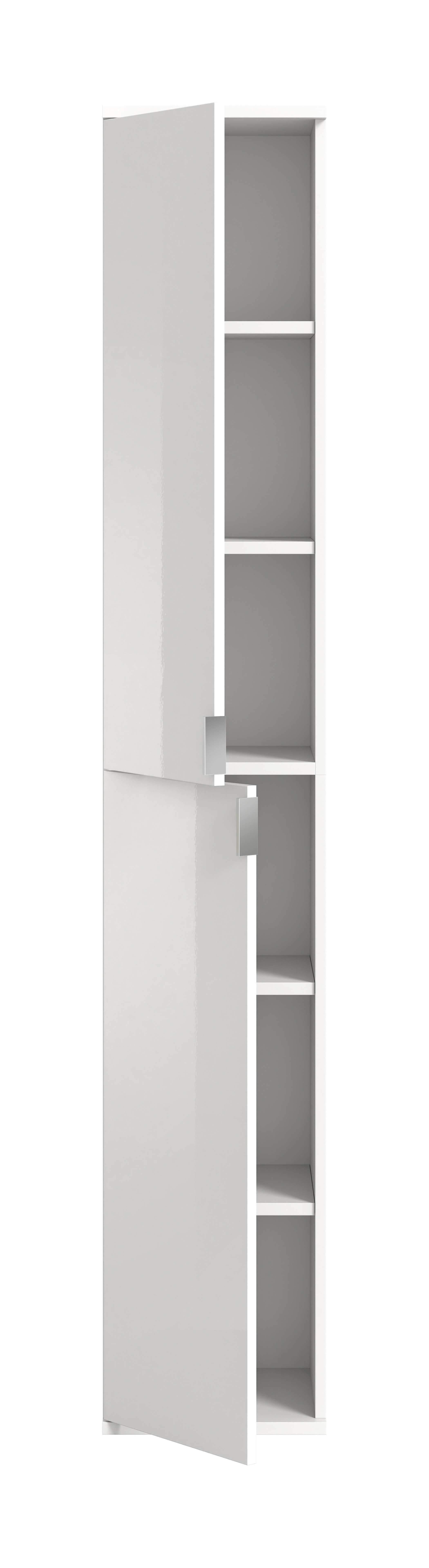 1 Garderobenschrank mit 1 Tür in Weiß Hochglanz, 4 Einlegeböden und1 Konstruktionsboden