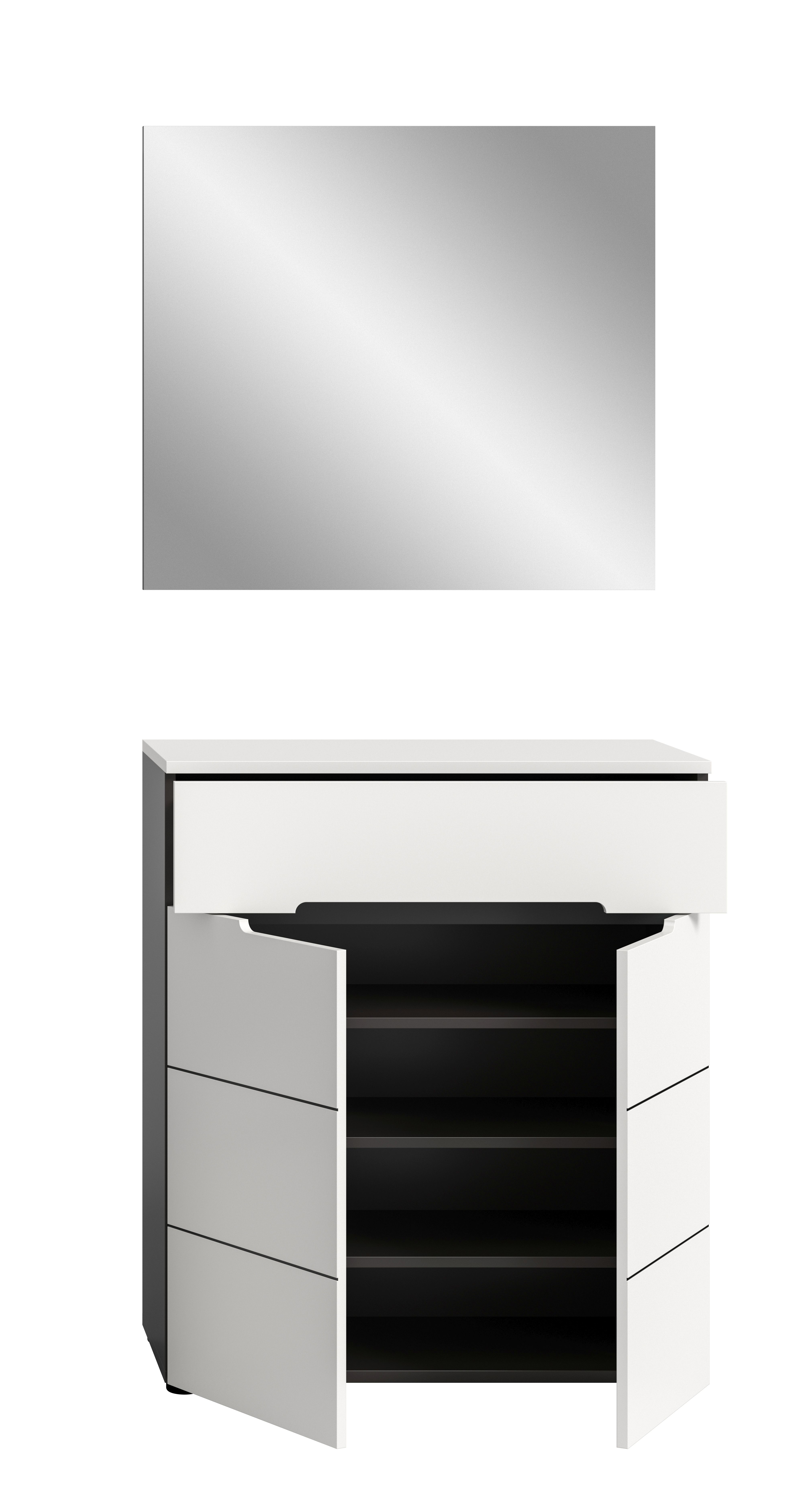 1 Schuhkommode mit 2 Türen, 1 Schubkasten und 3 Einlegeböden