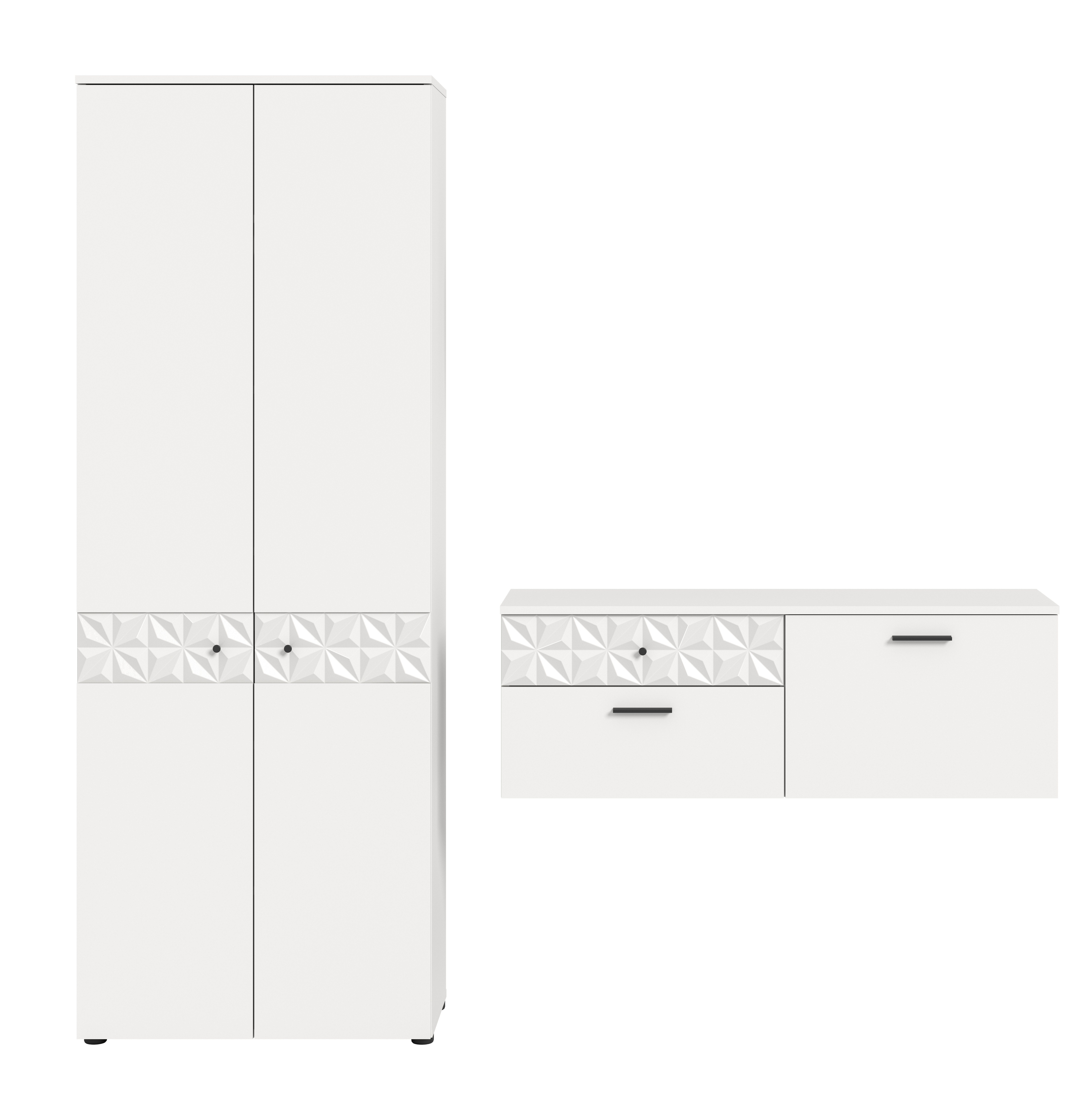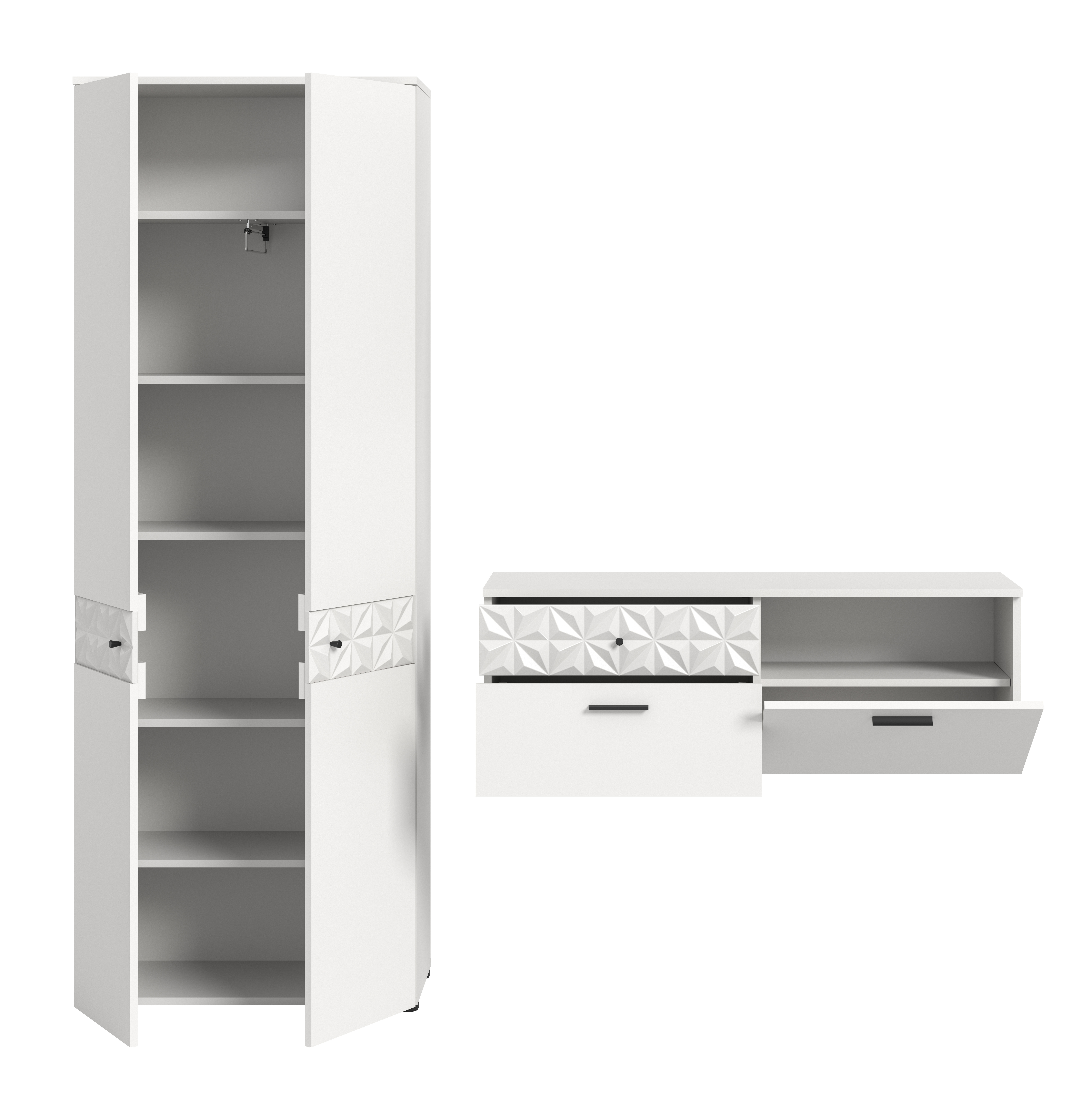 Erweitern Sie den Eingangsbereich Ihres Zuhauses mit unserer eleganten Garderobenkombination in Weiß Nachbildung und Weiß Hochglanz für Flur und Diele. Durchdacht gestaltet und mit großzügigem Stauraum ausgestattet, bietet sie nicht nur praktische Aufbewahrungsmöglichkeiten, sondern verleiht Ihrem Raum auch eine zeitlose Ästhetik. Entdecken Sie jetzt dieses stilvolle Möbelstück und schaffen Sie einen einladenden Empfangsbereich für Ihre Gäste.