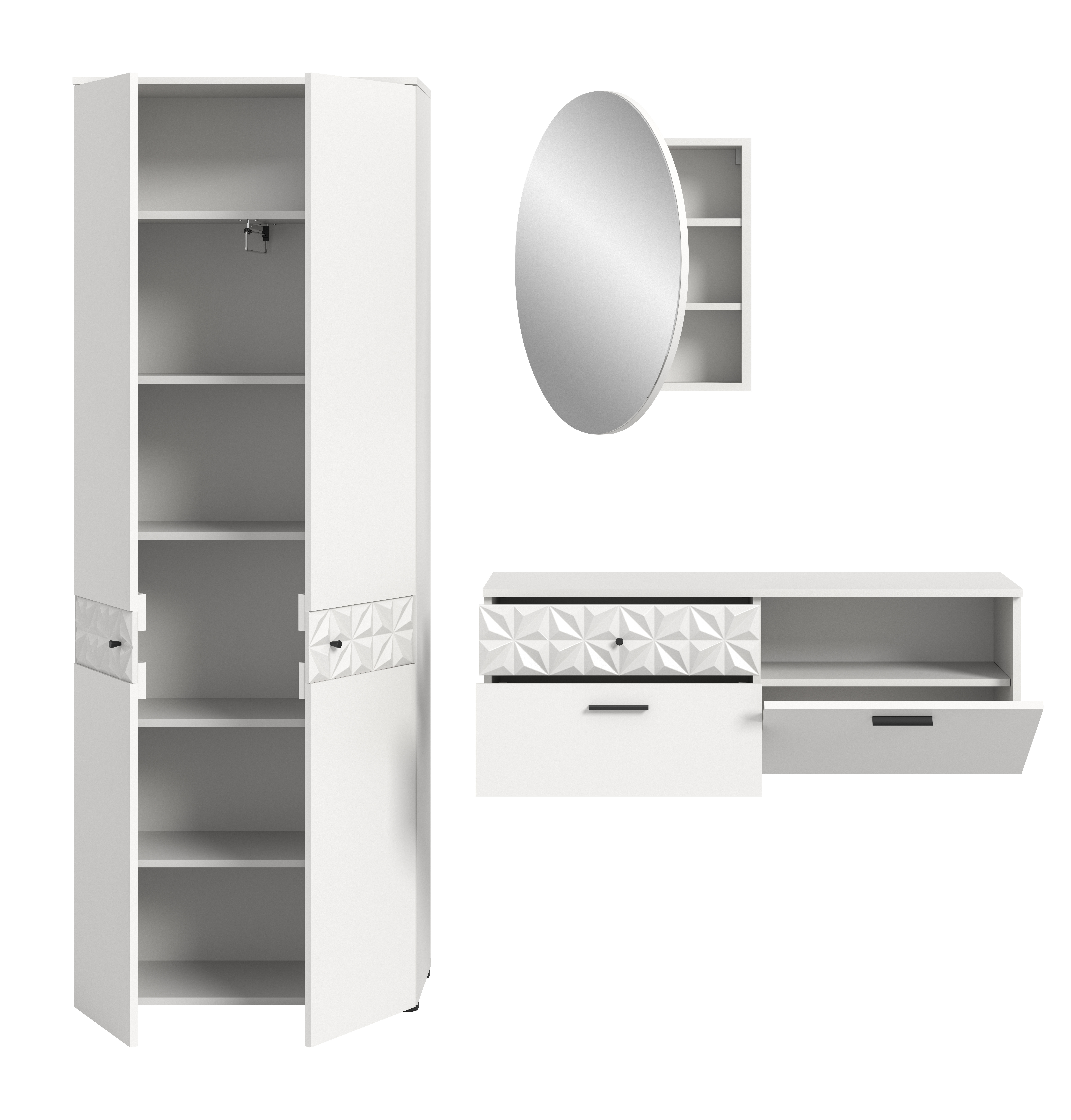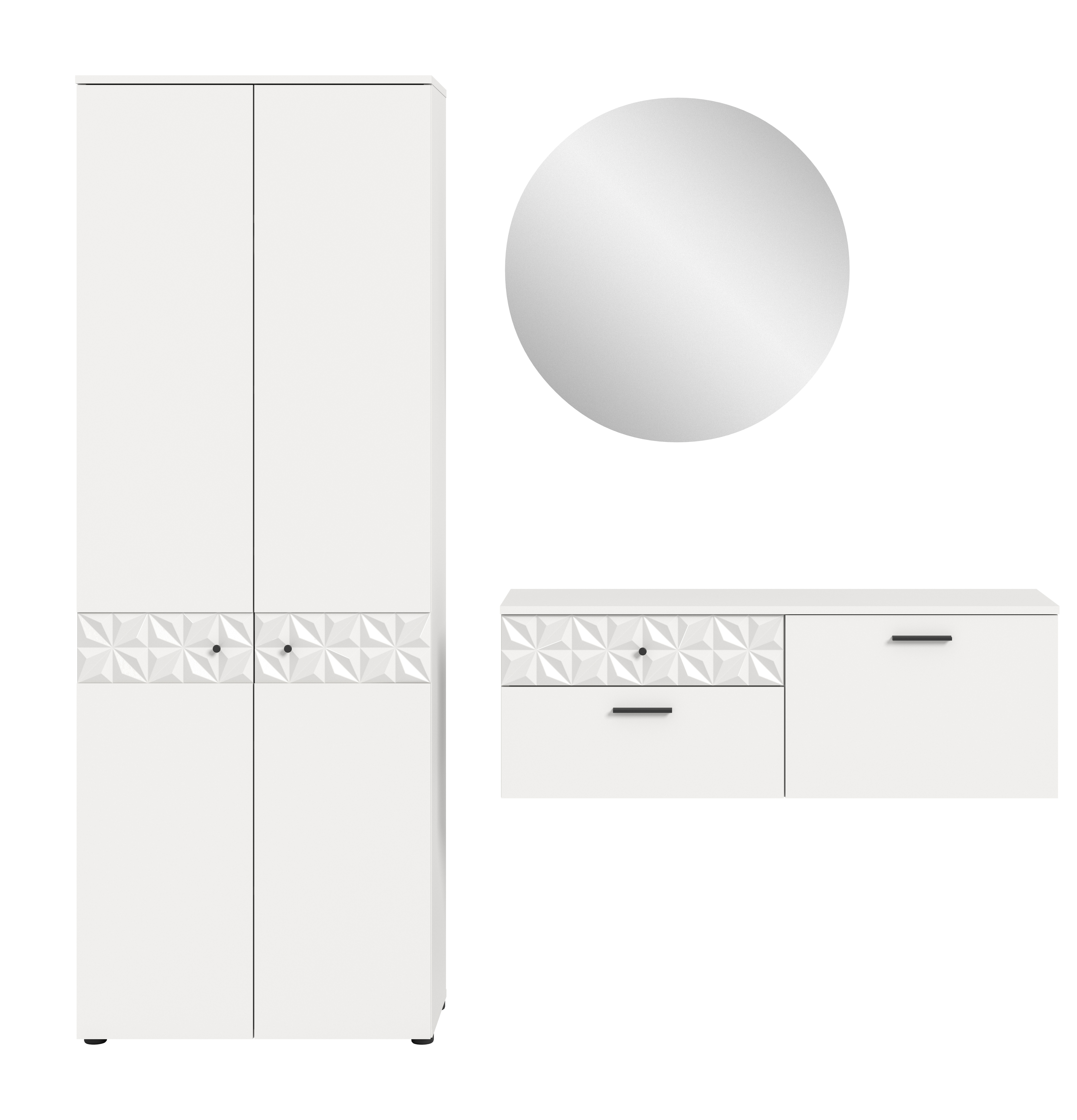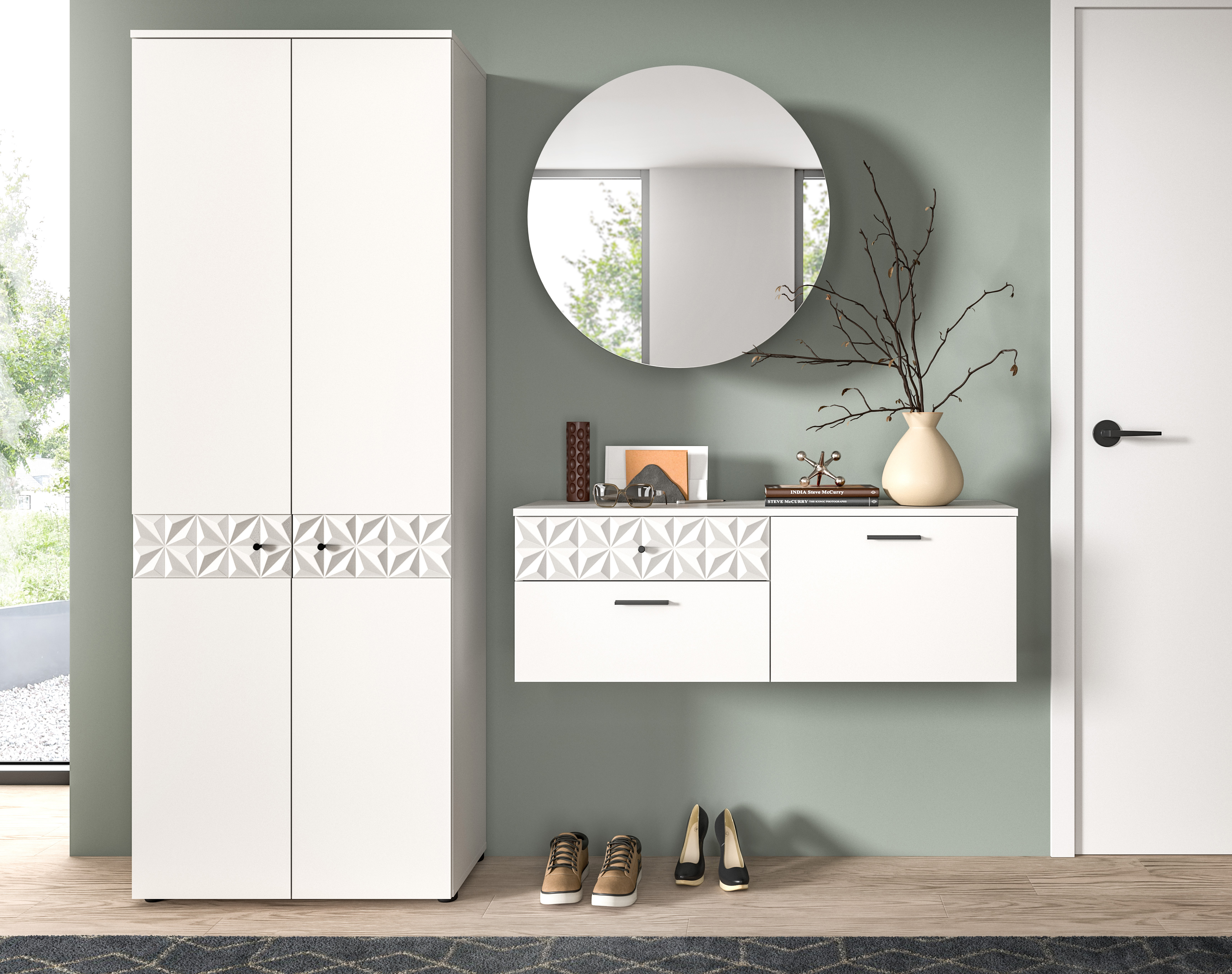 Erweitern Sie den Eingangsbereich Ihres Zuhauses mit unserer eleganten Garderobenkombination in Weiß Nachbildung und Weiß Hochglanz für Flur und Diele. Durchdacht gestaltet und mit großzügigem Stauraum ausgestattet, bietet sie nicht nur praktische Aufbewahrungsmöglichkeiten, sondern verleiht Ihrem Raum auch eine zeitlose Ästhetik. Entdecken Sie jetzt dieses stilvolle Möbelstück und schaffen Sie einen einladenden Empfangsbereich für Ihre Gäste.