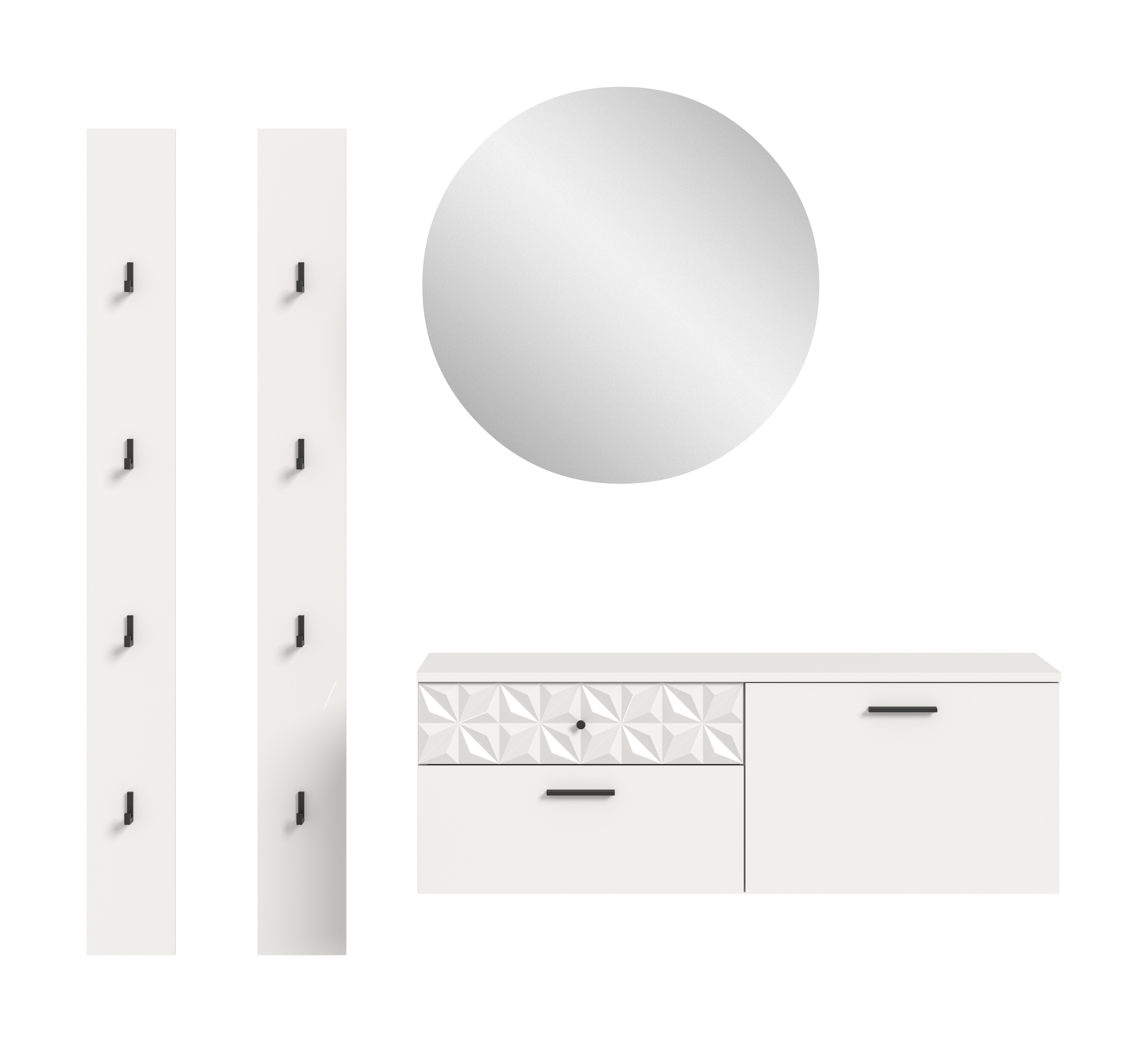 Erweitern Sie den Eingangsbereich Ihres Zuhauses mit unserer eleganten Garderobenkombination in Weiß Nachbildung und Weiß Hochglanz für Flur und Diele. Durchdacht gestaltet und mit großzügigem Stauraum ausgestattet, bietet sie nicht nur praktische Aufbewahrungsmöglichkeiten, sondern verleiht Ihrem Raum auch eine zeitlose Ästhetik. Entdecken Sie jetzt dieses stilvolle Möbelstück und schaffen Sie einen einladenden Empfangsbereich für Ihre Gäste.