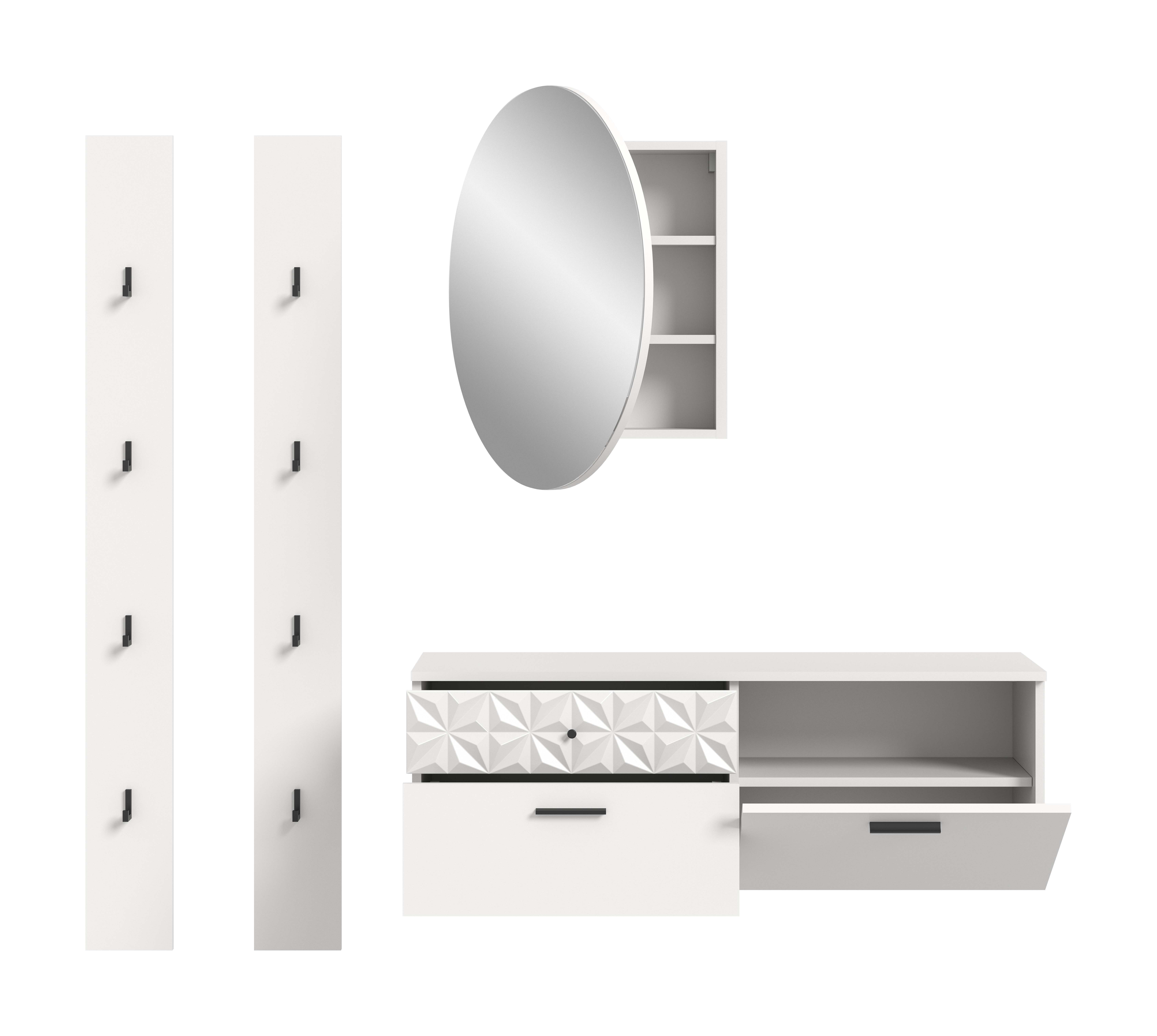 - Einsatzbereich: Die Garderobenkombination eignet sich perfekt für den Einsatz im Flur oder in der Diele, um zusätzlichen Stauraum zu schaffen und gleichzeitig das Raumambiente mit ihrem modernen Design aufzuwerten.