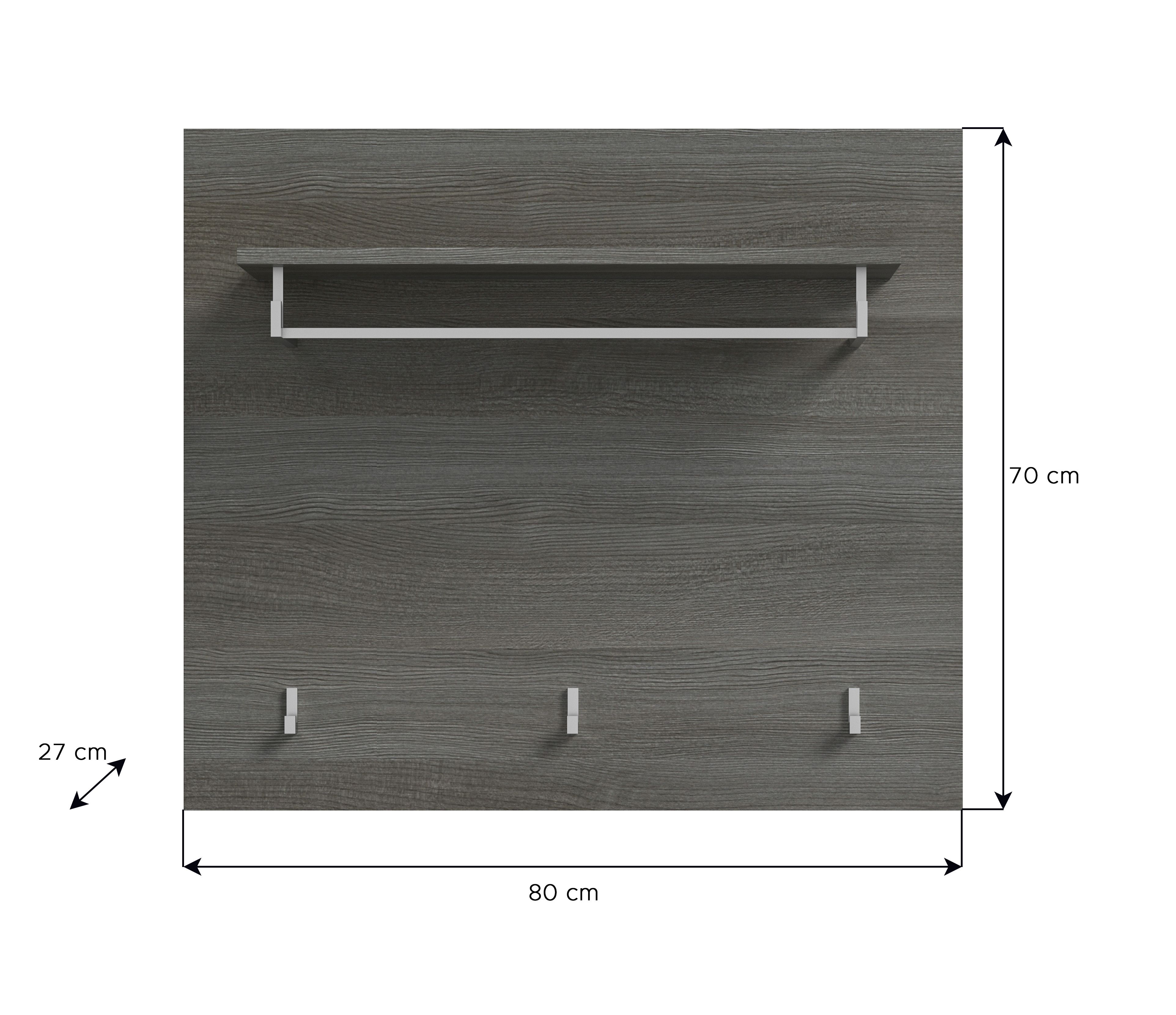 In unserem Sortiment findest du ein stilvolles Garderobenpaneel in Rauchsilber Nachbildung, das deinen Eingangsbereich perfekt ergänzt. Mit seinen kompakten Maßen von 80x70x27 cm bietet es nicht nur ausreichend Platz für deine Garderobe, sondern verleiht auch deinem Raum eine moderne Note. Erlebe die Verbindung von Funktionalität und zeitgemäßem Design mit diesem hochwertigen Garderobenpaneel.