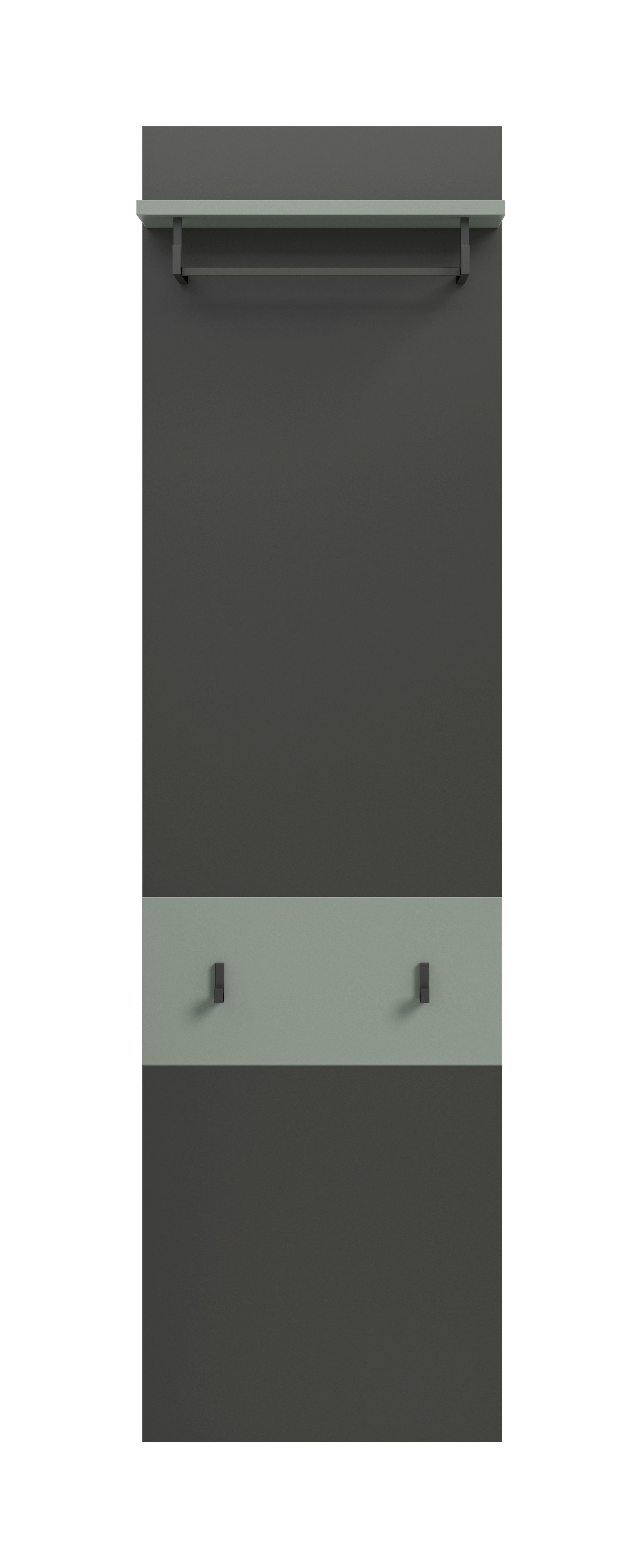 Das Paneel (B/H/T: 45x165x29 cm) in Basalt grau Nachbildung und Smoke Green ist eine elegante und praktische Lösung für Ihre Garderobe. Mit einer Höhe von 165 cm bietet es ausreichend Platz für Ihre Jacken, Taschen und Accessoires. Die stilvollen Haken und Ablageflächen sorgen für einen aufgeräumten Eingangsbereich und machen das Aufhängen von Gegenständen zum Kinderspiel. Das moderne Design und die helle Oberfläche fügen sich harmonisch in jedes Wohnambiente ein, während die kompakte Bauweise auch in schmalen Fluren hervorragend zur Geltung kommt. Verleihen Sie Ihrem Zuhause einen einladenden Look und schaffen Sie Ordnung mit diesem funktionalen Paneel!