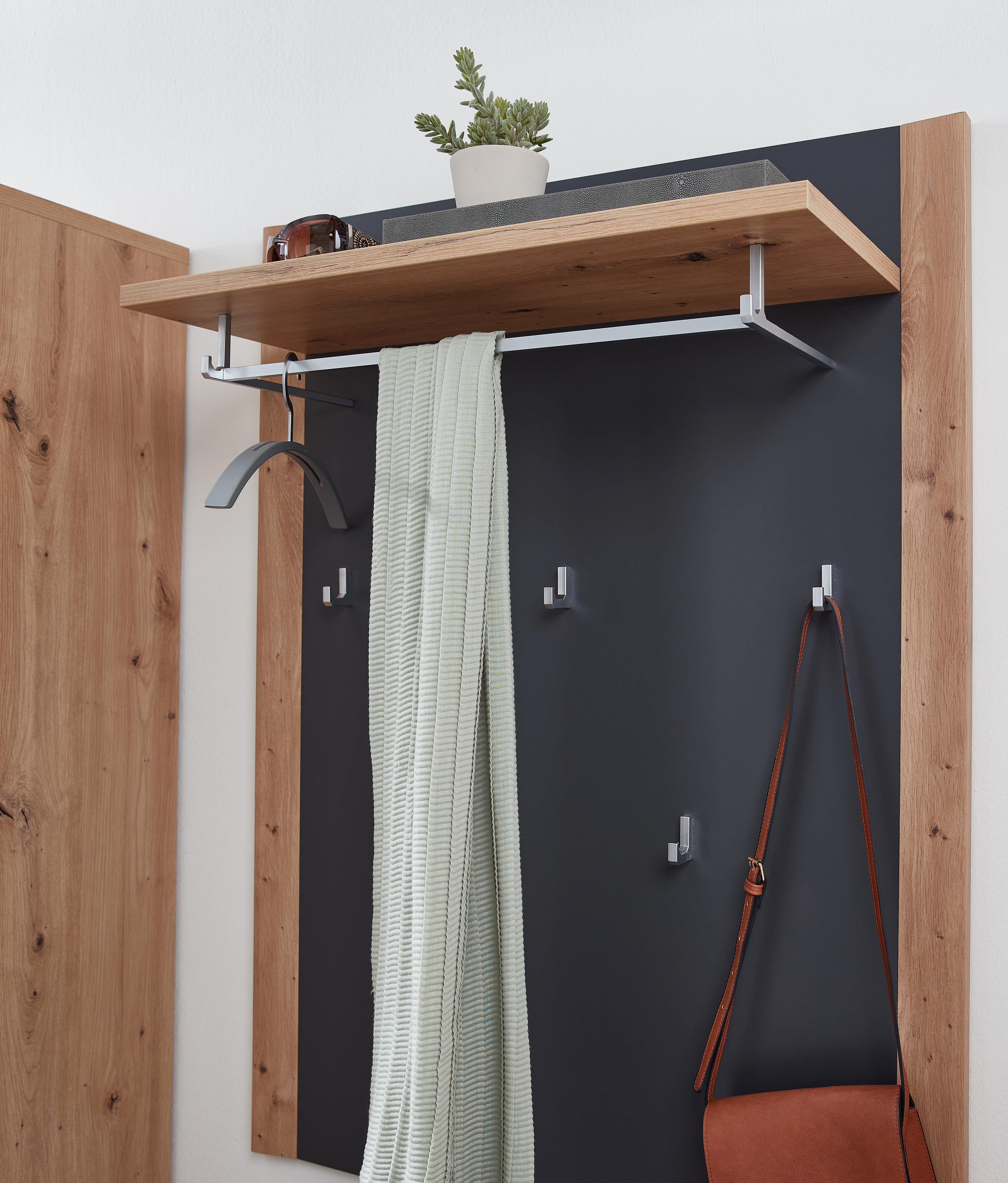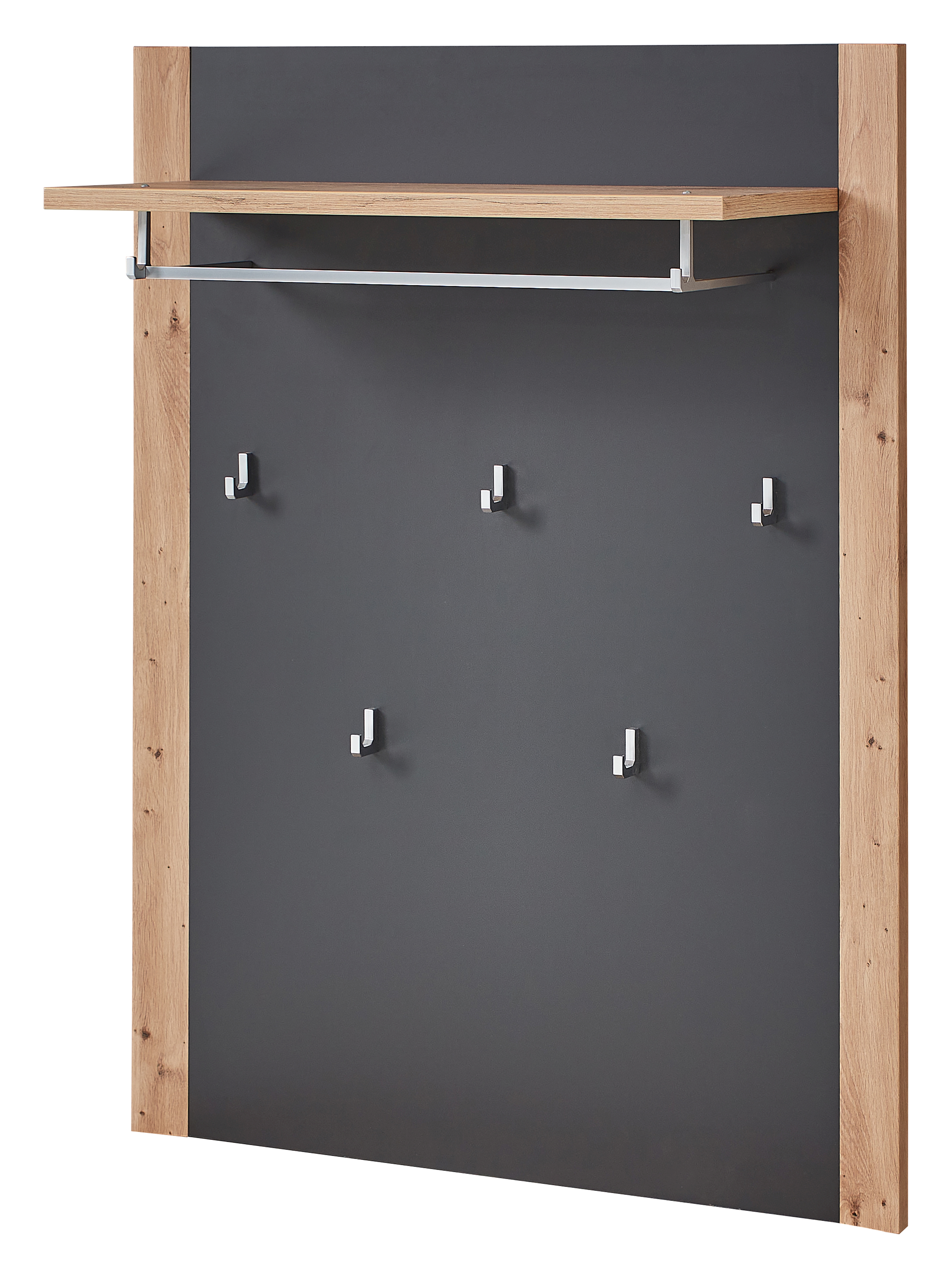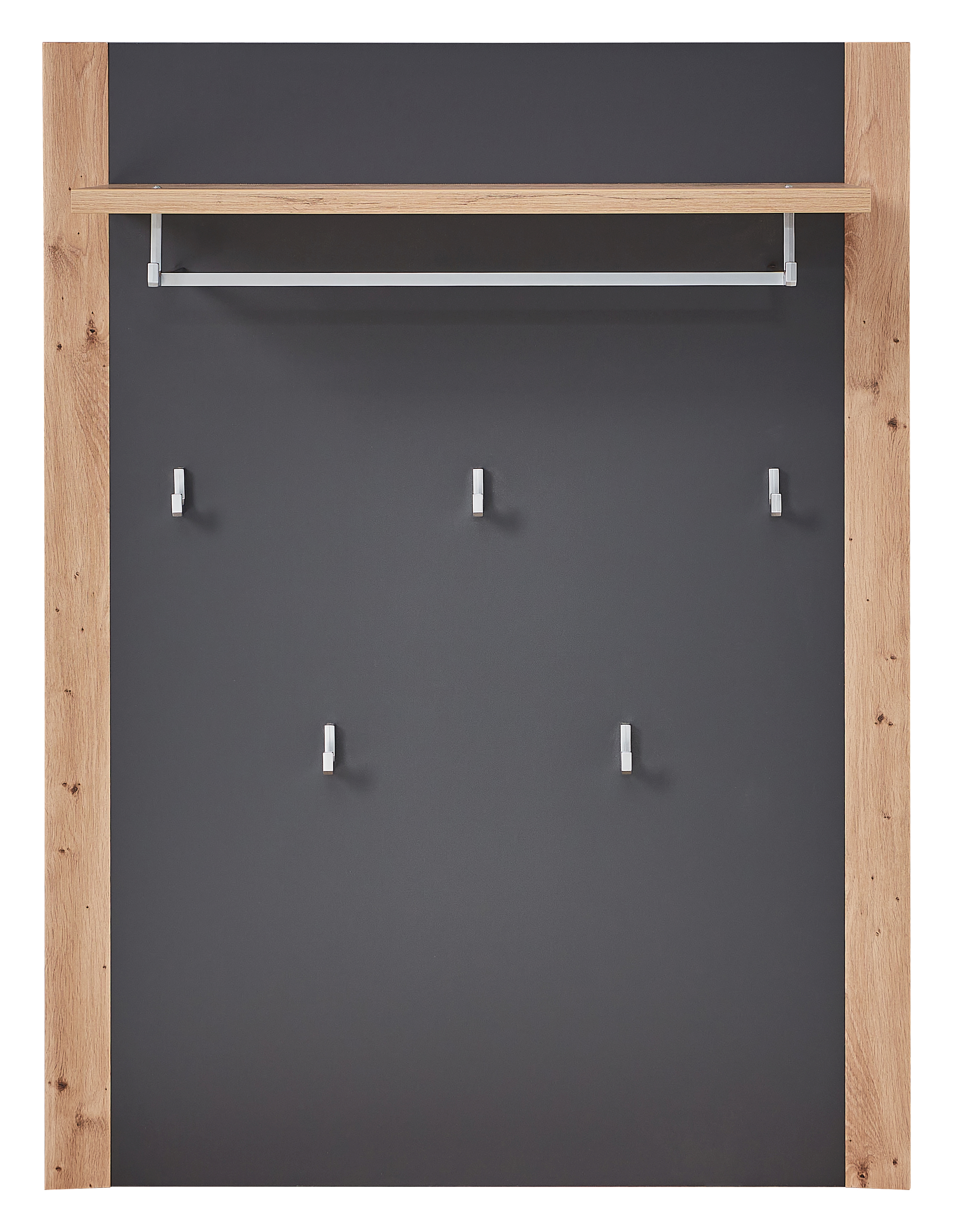Front: Graphit Melamin mit Absetzungen in Artisan Eiche Holznachbildung