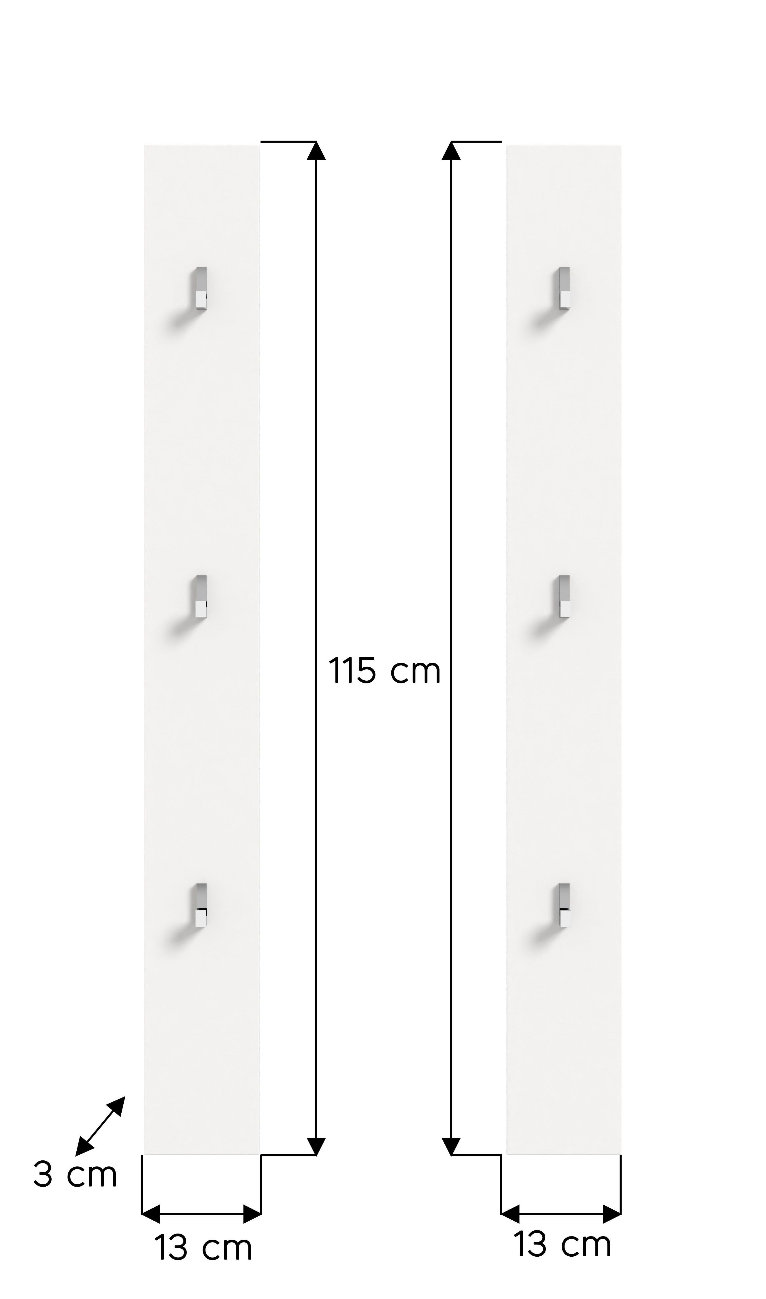 Optimieren Sie Ihren Eingangsbereich mit unserem stilvollen Paneel 2er Set in Weiß Hochglanz (B/H/T: 13x115x3 cm). Jedes Paneel ist mit drei eleganten, silbernen Haken ausgestattet, die sich hervorragend zum Aufhängen von Jacken, Taschen oder Schals eignen. Das moderne Design und die glatte Hochglanz-Oberfläche verleihen jedem Raum einen frischen, zeitgemäßen Look. Die schmale Bauweise macht diese Paneele ideal für kleine Flure oder Räume, wo jeder Zentimeter zählt. Verwenden Sie sie einzeln oder kombiniert, um eine einladende und organisierte Atmosphäre zu schaffen. Mit hochwertigen Materialien gefertigt, sind die Paneele langlebig und pflegeleicht, sodass Sie lange Freude daran haben. Die einfache Montage ermöglicht einen schnellen Aufbau, sodass Sie im Handumdrehen Ordnung schaffen können. Bringen Sie Funktionalität und Stil in Ihre Einrichtung mit diesem praktischen Paneel 2er Set. Ideal für alle, die Wert auf ein gepflegtes und modernes Zuhause legen! Verleihen Sie Ihrem Raum eine persönliche Note und nutzen Sie den verfügbaren Platz effizient!