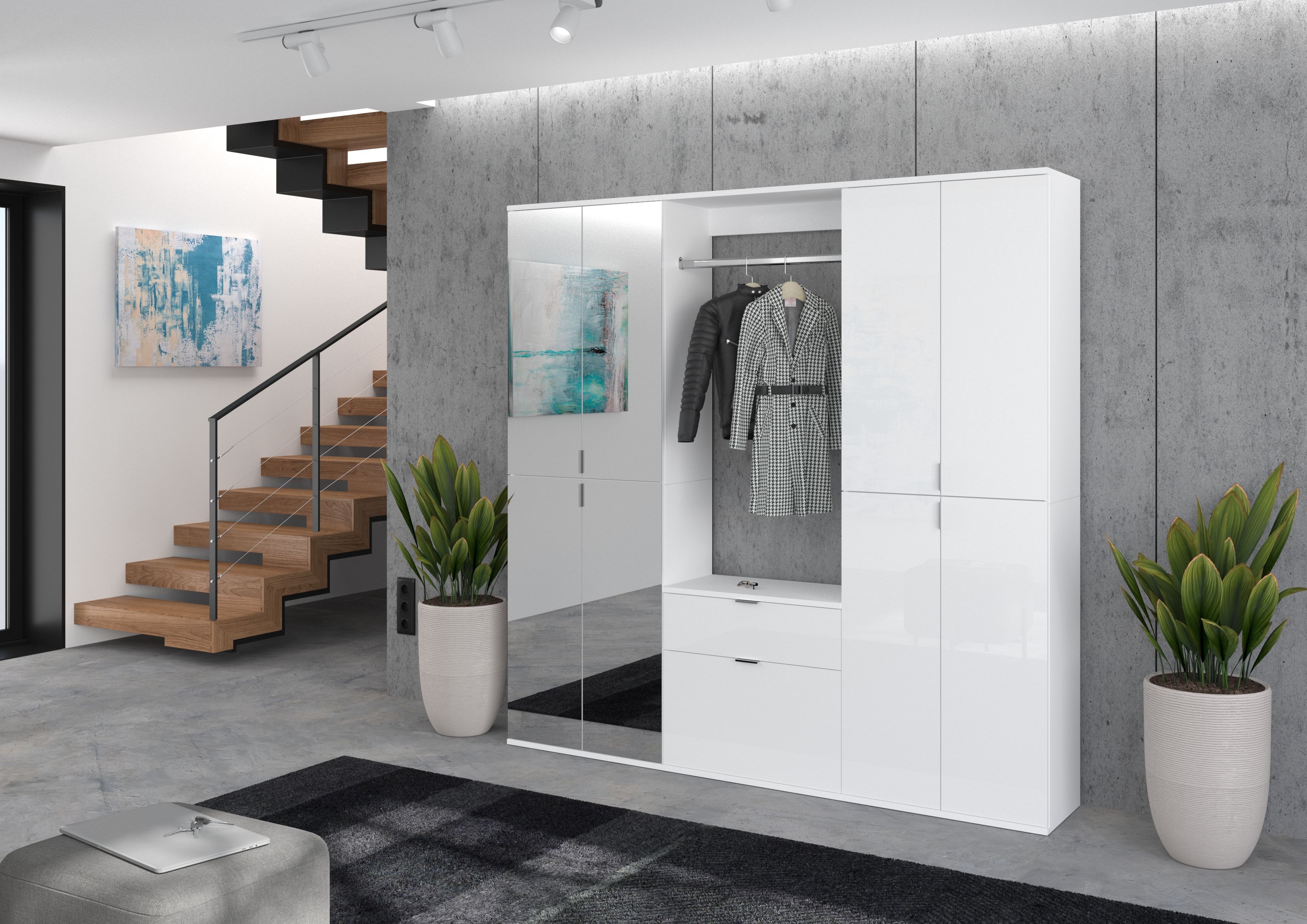 - Design/Stil: Der Hochschrank besticht durch sein modernes und schlichtes Design in weißer Nachbildung und weißem Hochglanzfinish, das eine zeitgemäße Ästhetik für Flur, Diele, Hauswirtschaftsraum, Büro oder Schlafzimmer bietet. Die klaren Linien und das hochglänzende Finish verleihen dem Raum ein elegantes und ansprechendes Erscheinungsbild.