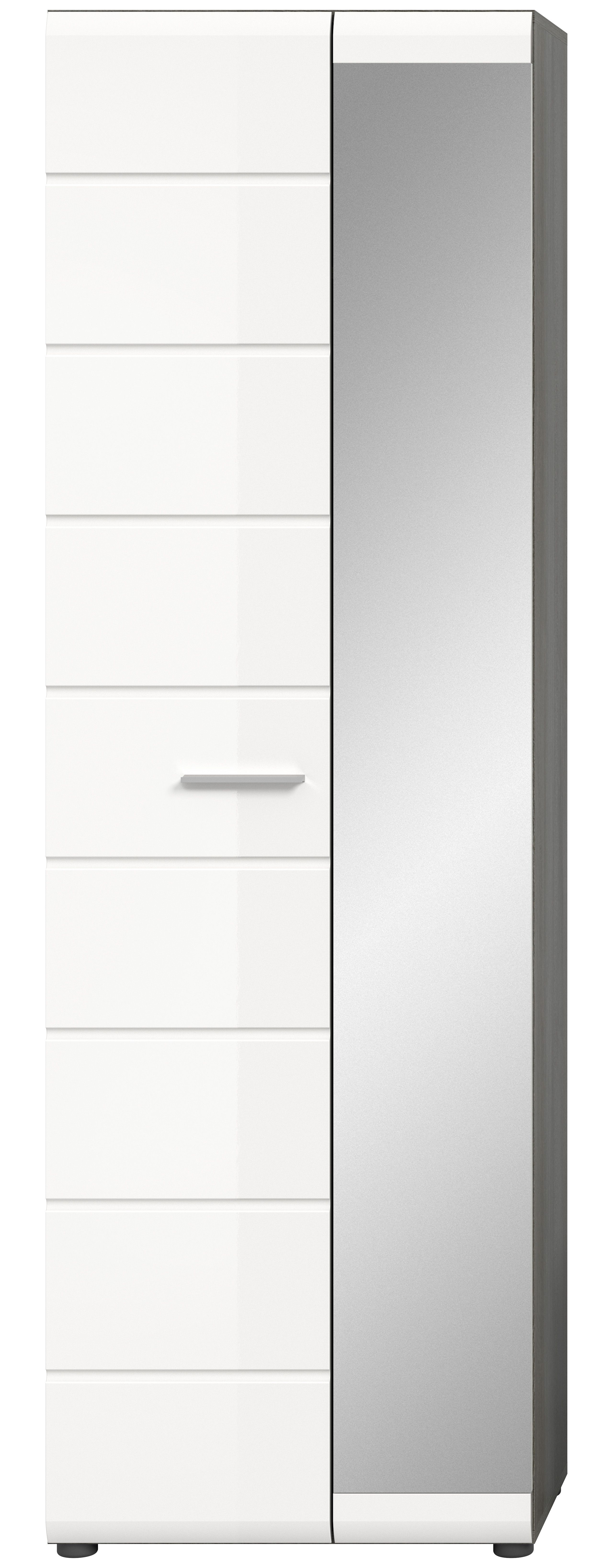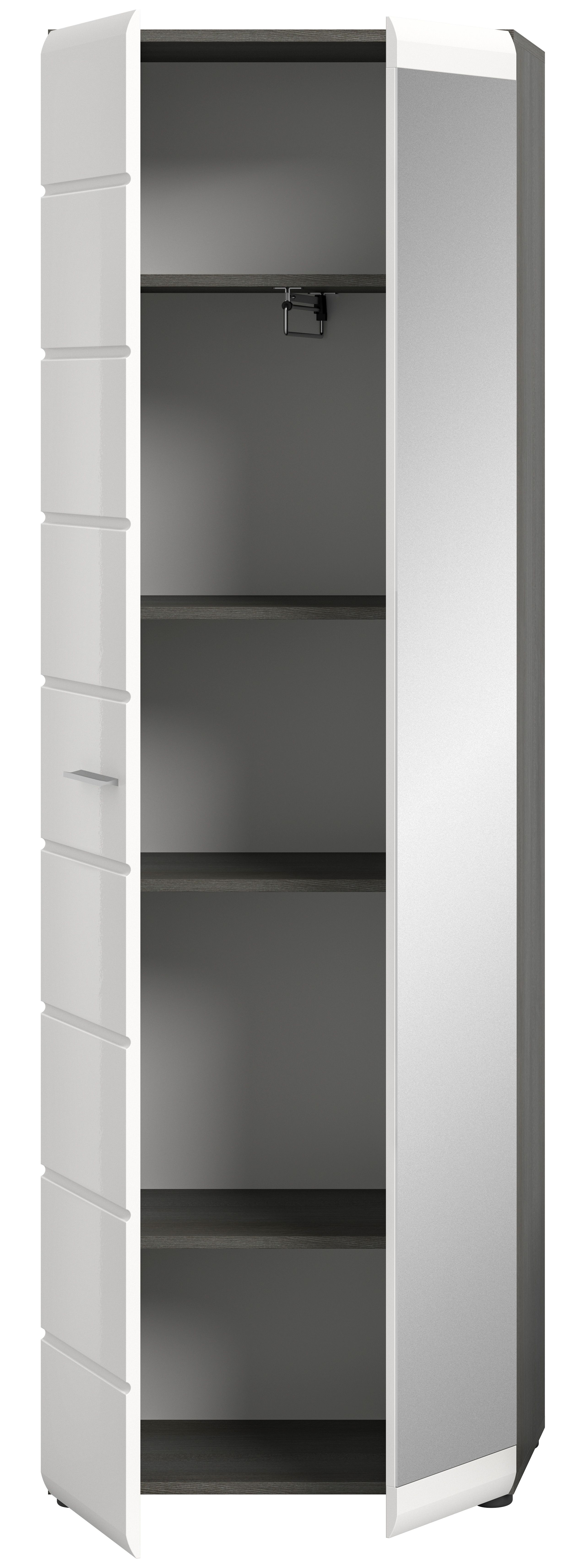 - Design/Stil: Garderobenschrank mit modernem und elegantem Design in Rauchsilber Nachbildung und weißem Hochglanz tiefzieh für eine stilvolle Einrichtung im Flur oder in der Diele.