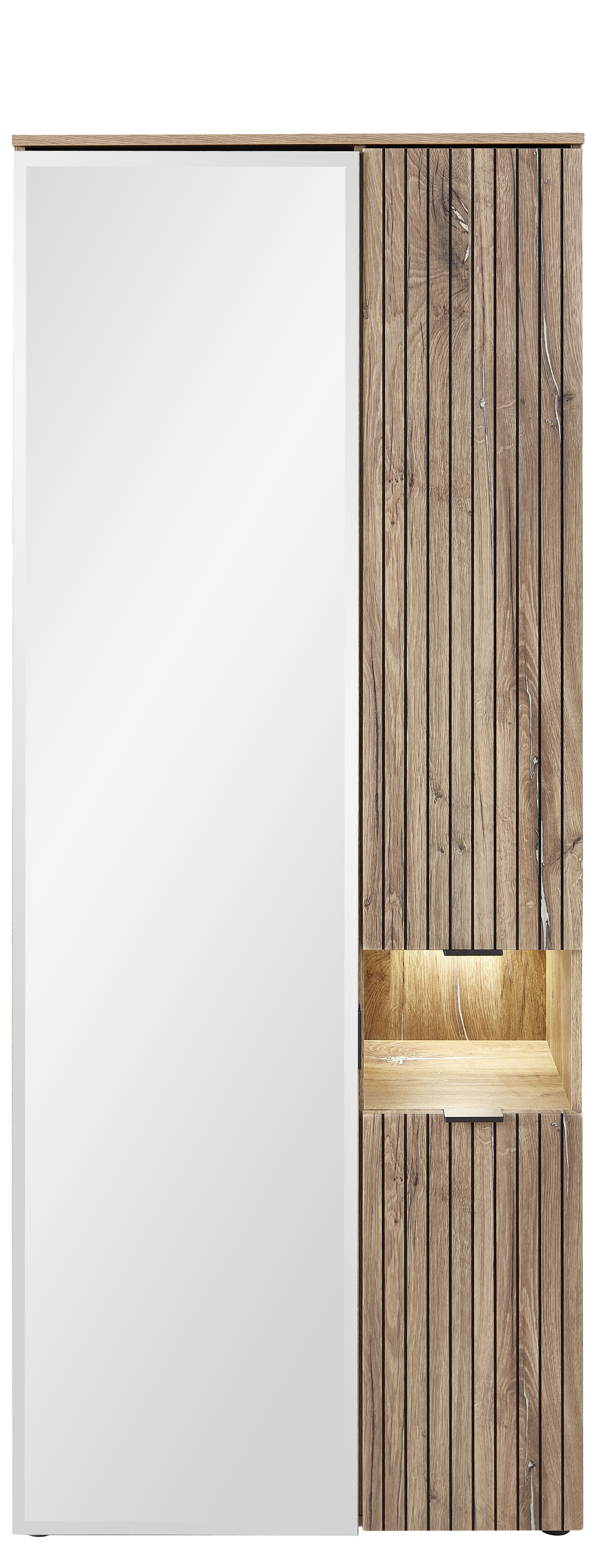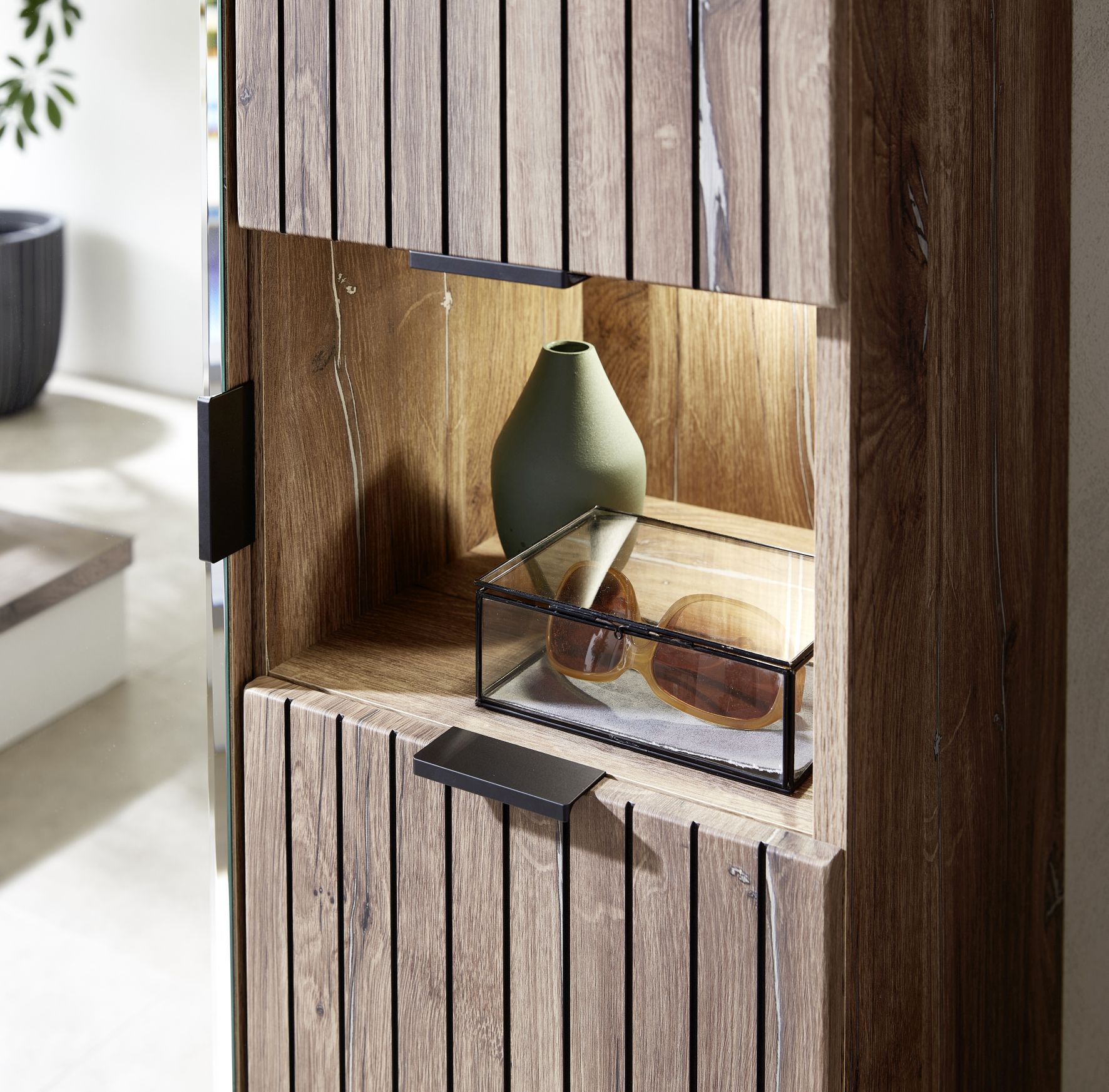 Front: Leistenoptik Flagstaff Eiche Umbra MDF Holznachbildung / Spiegel