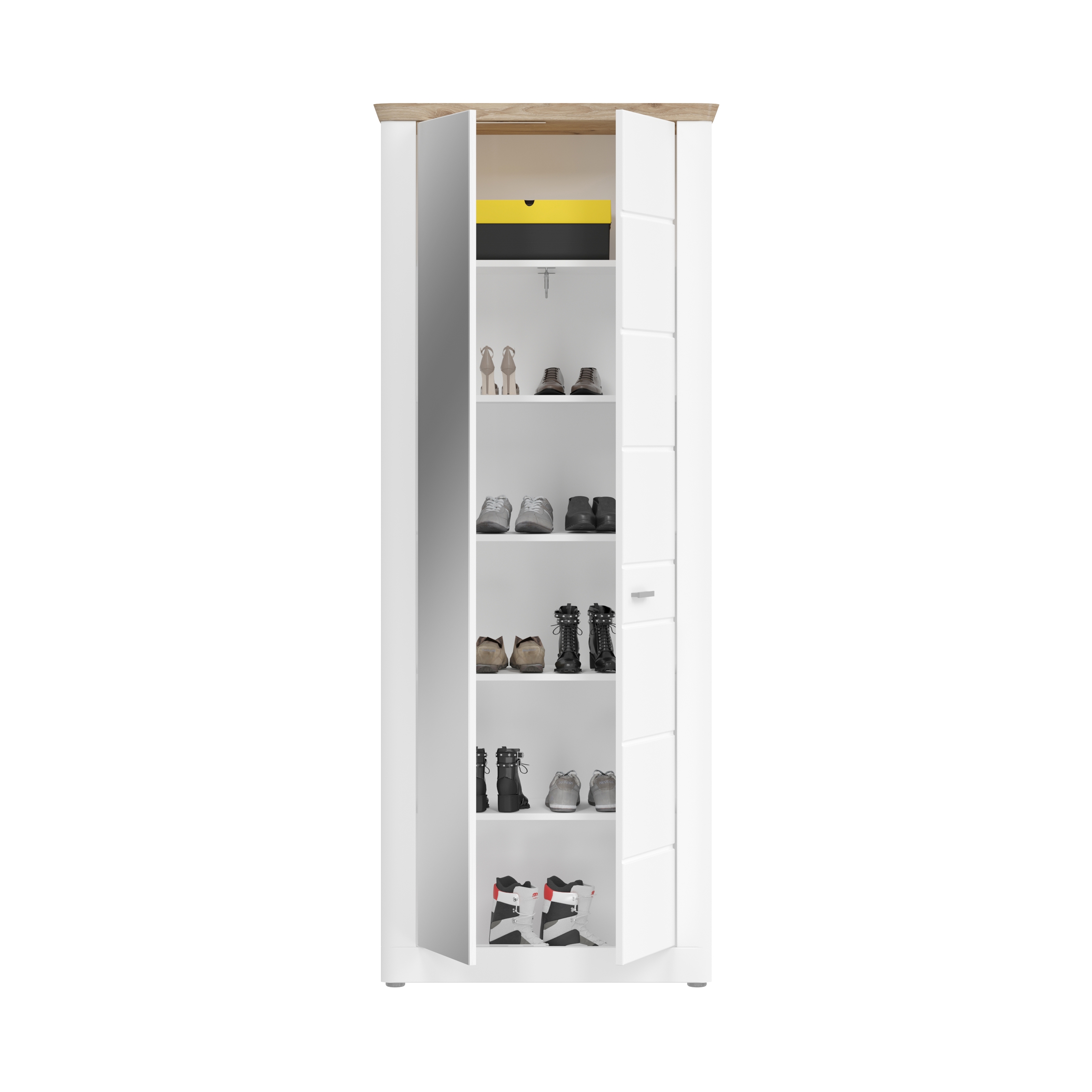 - Einsatzbereich: Ideal für Flur und Diele, um Ordnung zu schaffen und Kleidung sowie Accessoires übersichtlich zu verstauen. Der Garderobenschrank ist eine praktische und platzsparende Lösung für den Eingangsbereich.