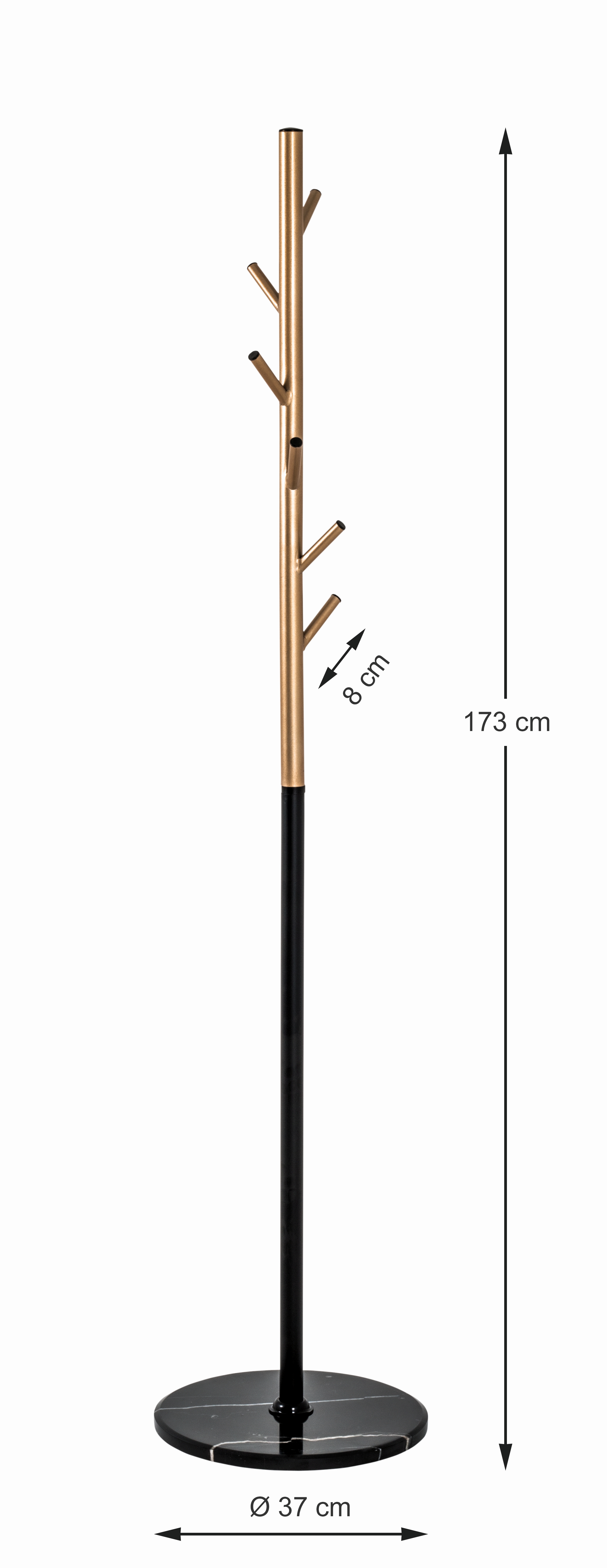 Metall in schwarz und goldfarben lackiert mit einer Fußplatte aus schwarzem Marmor
