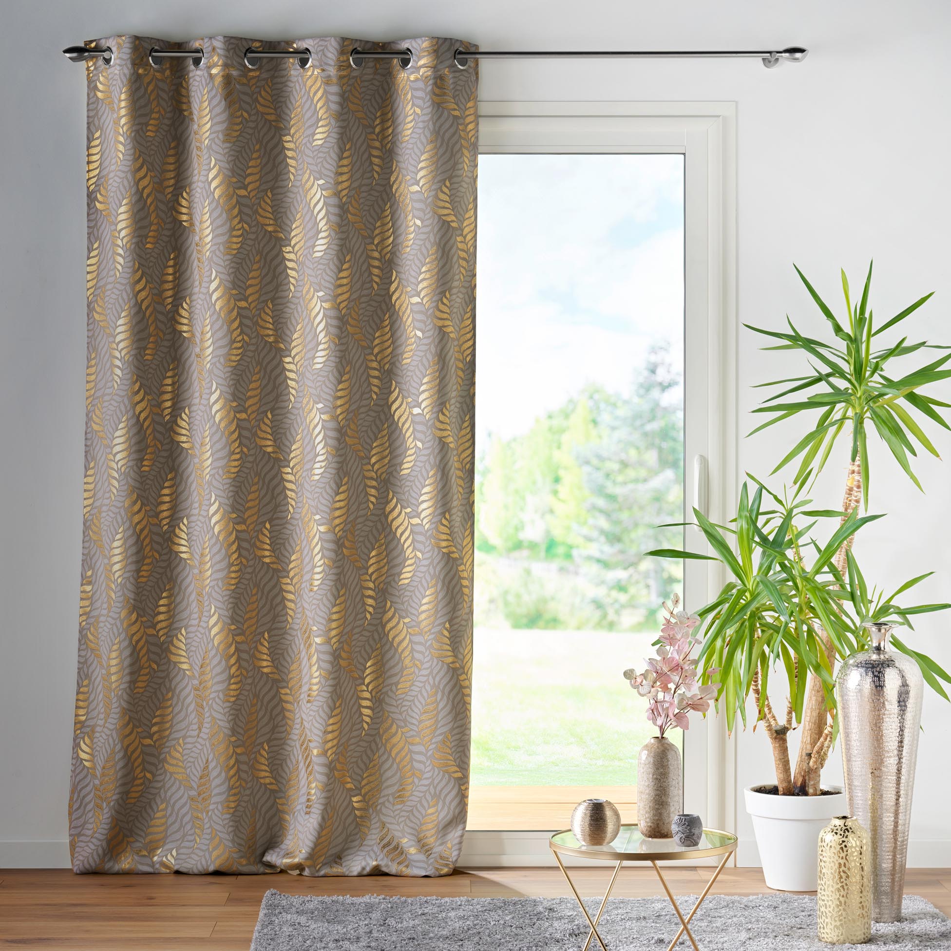 Farbe : taupe, gold mit Blätterdesign