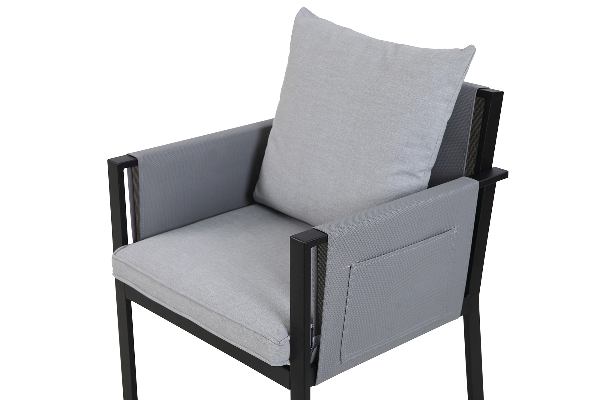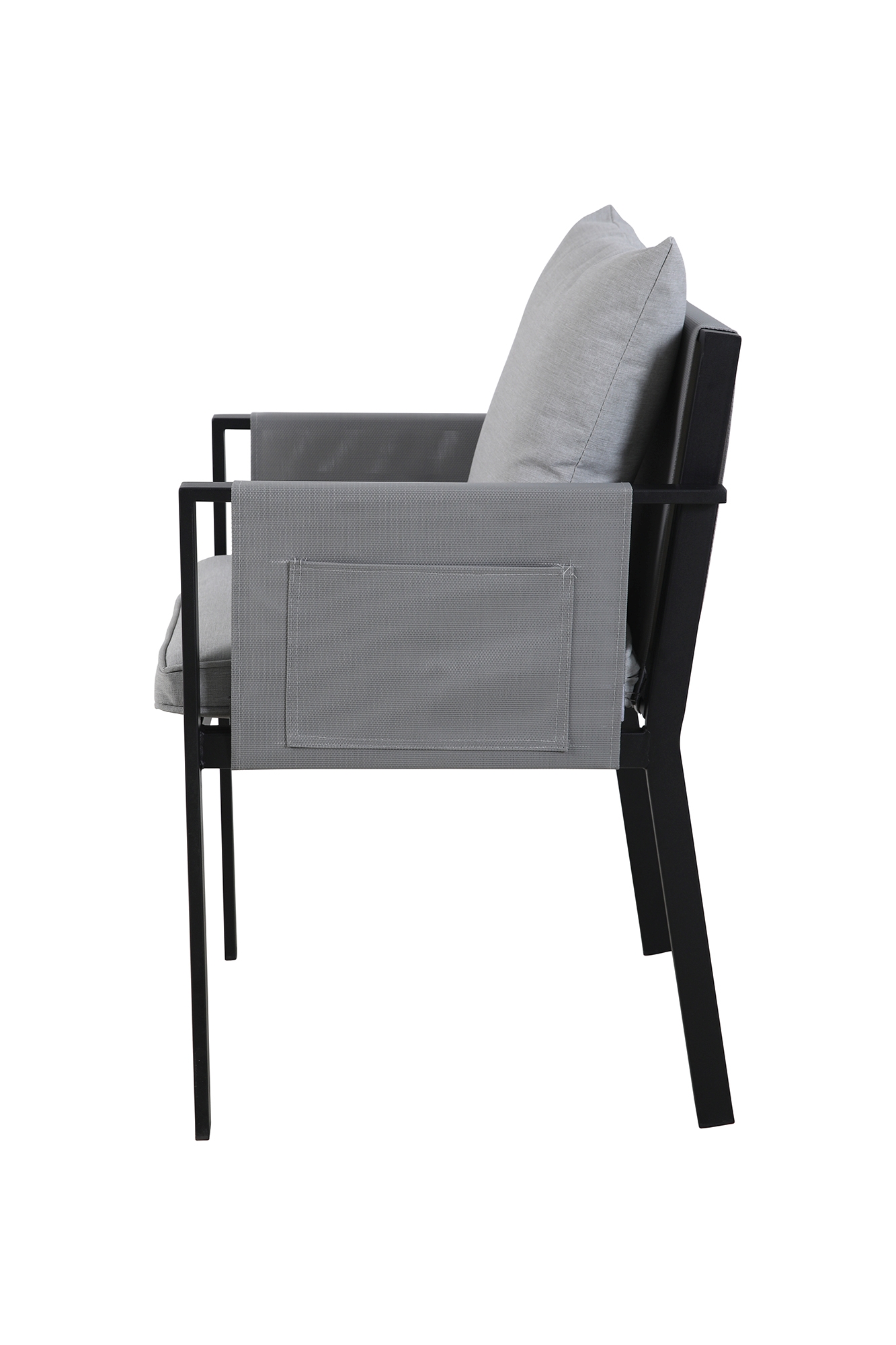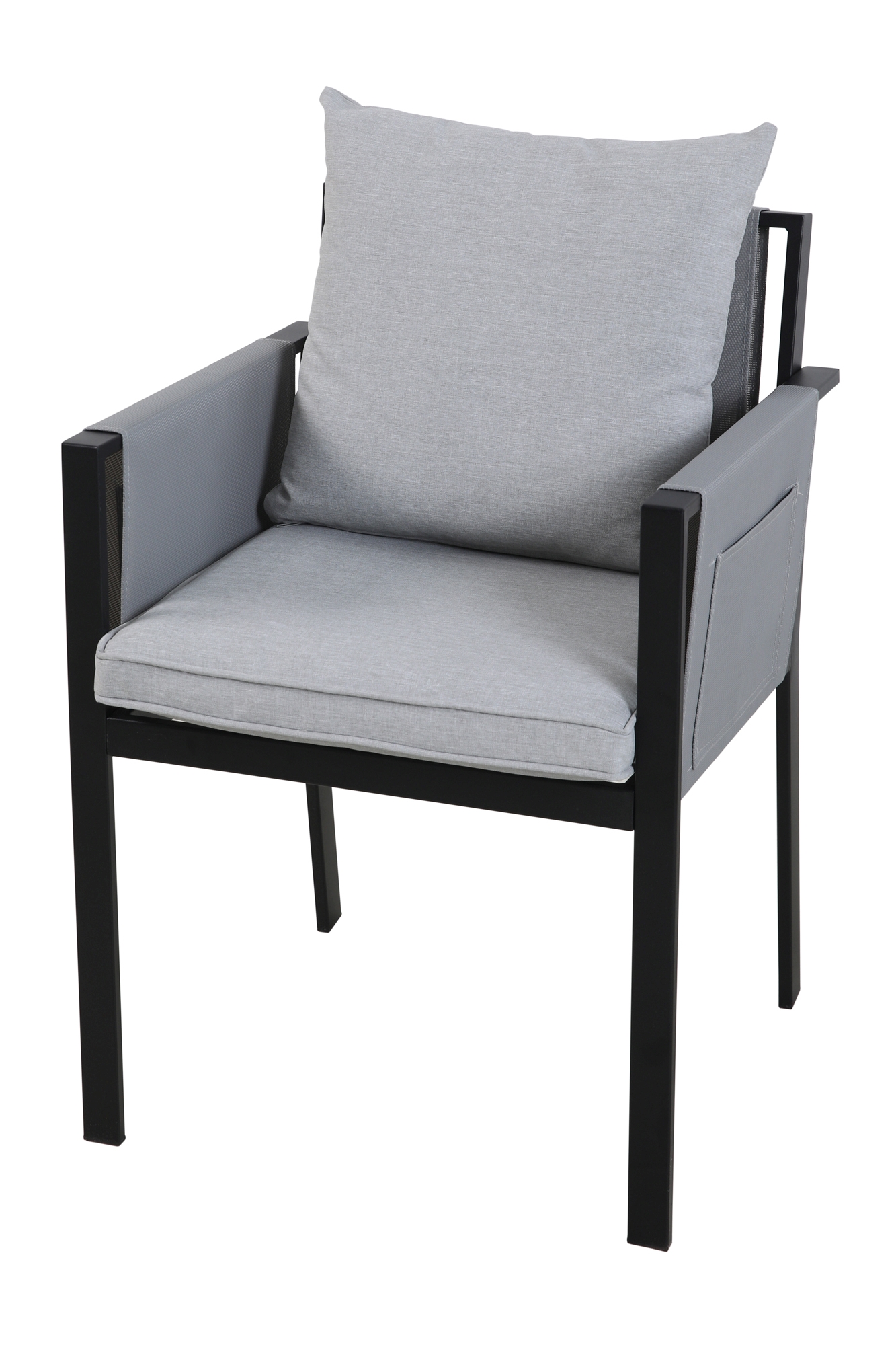 Bezug der Sitzpolster: Olefin (Polyetylen oder Propylen) in der Farbe grau