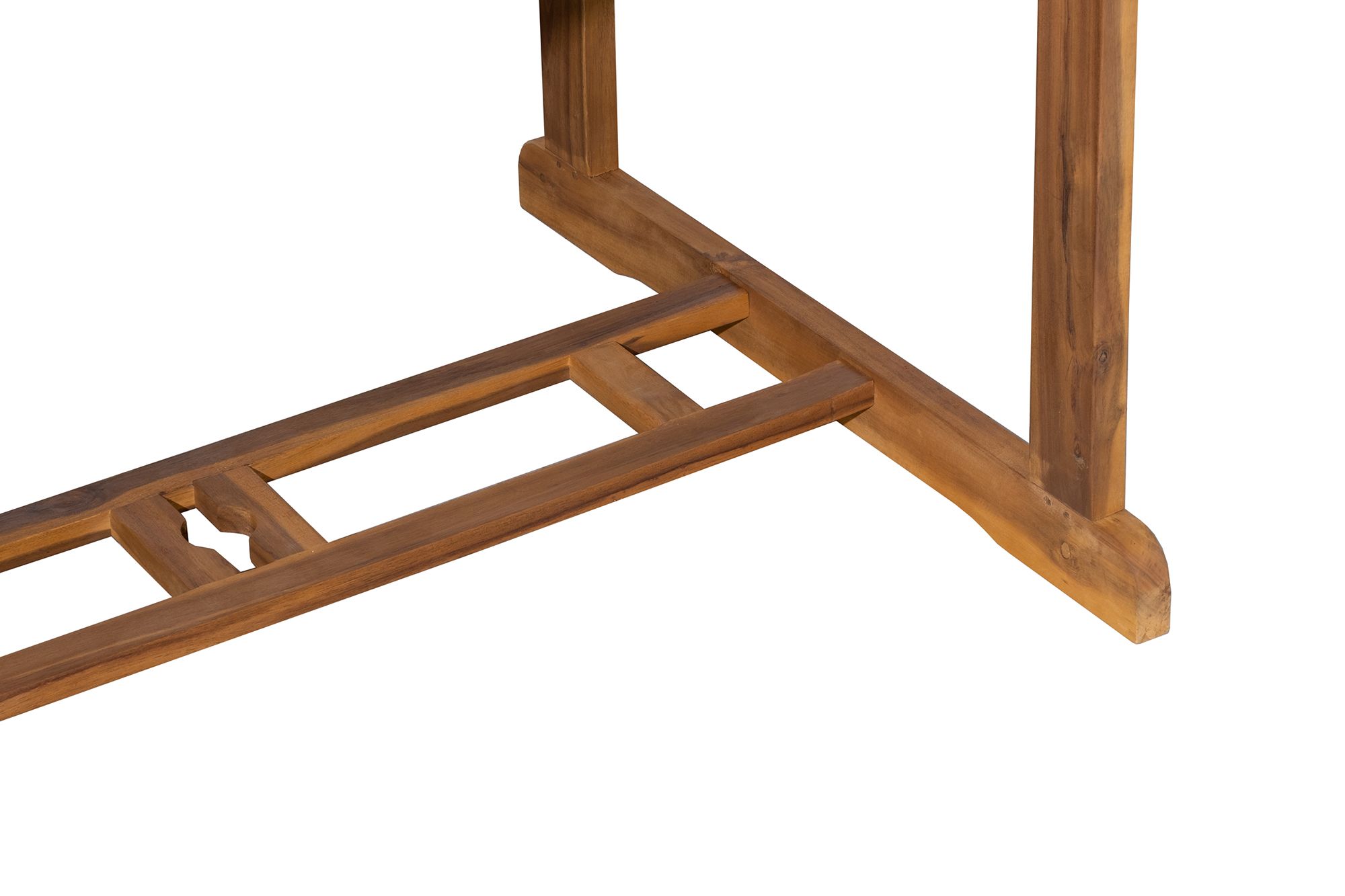 Dieser ausziehbare Gartentisch mit cleverem Schmetterlingsmechanismus wird zum Blickfang in Ihrem Außenbereich. Gefertigt aus langlebigem und wetterbeständigem Akazienholz ist der Tisch optimal für die Verwendung im Outdoor-Bereich geeignet. Das Holz ist bereits vorgeölt, für ein besonders ansprechendes Finish. Der Tisch kann auf großzügige 200 cm Breite erweitert werden, so dass geselligen Runden im Freien nichts mehr im Wege steht. Akazienholz ist ein besonderes Naturprodukt, welches durch elegante Holzmaserung und besondere Farbgebung begeistert. Jeder Gartentisch ist ein einzigartiges Unikat mit natürlichem Charme. Um den besonderen Farbton beizubehalten, sollte das Holz gelegentlich mit etwas Hartholz Pflege-Öl behandelt werden.