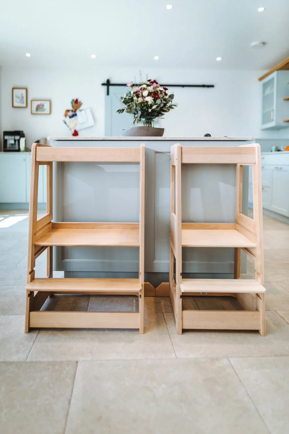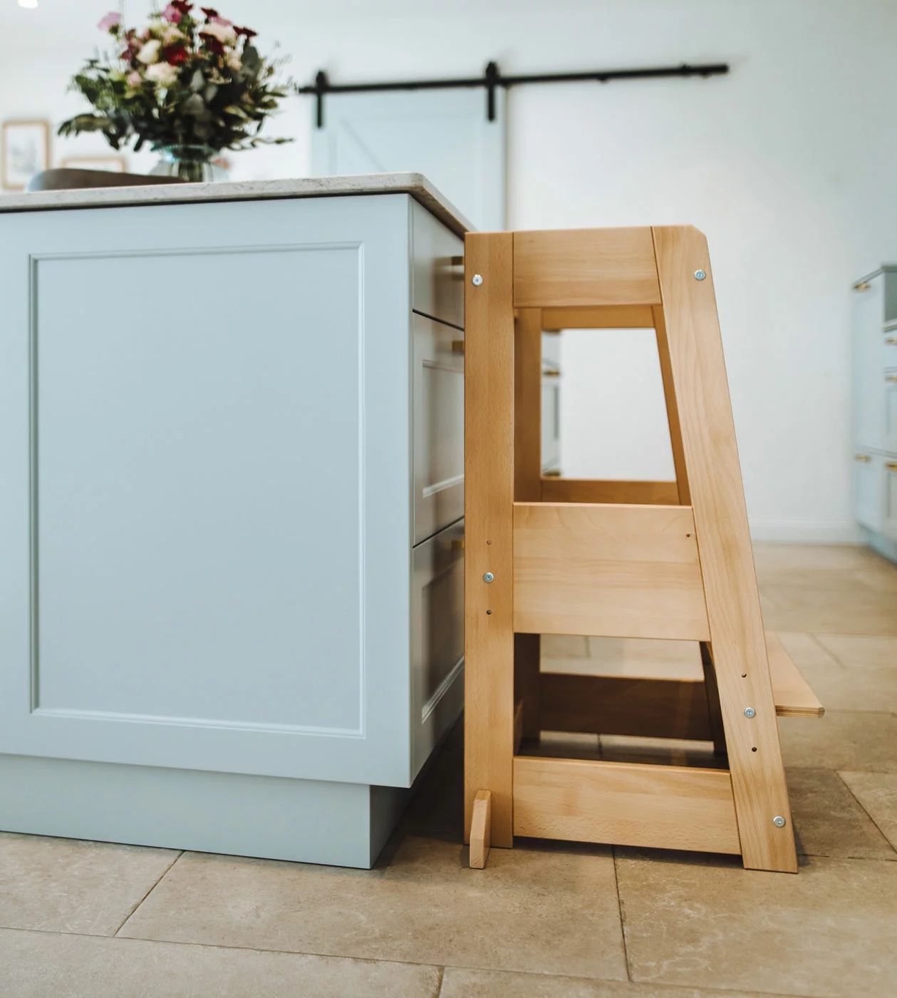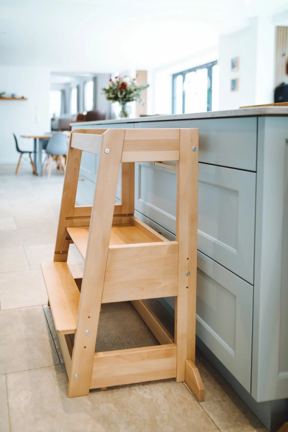 mitwachsend - schon die Kleinsten können auf Augenhöhe mit an der Küchenarbeitsplatte stehen und beim Kochen helfen.