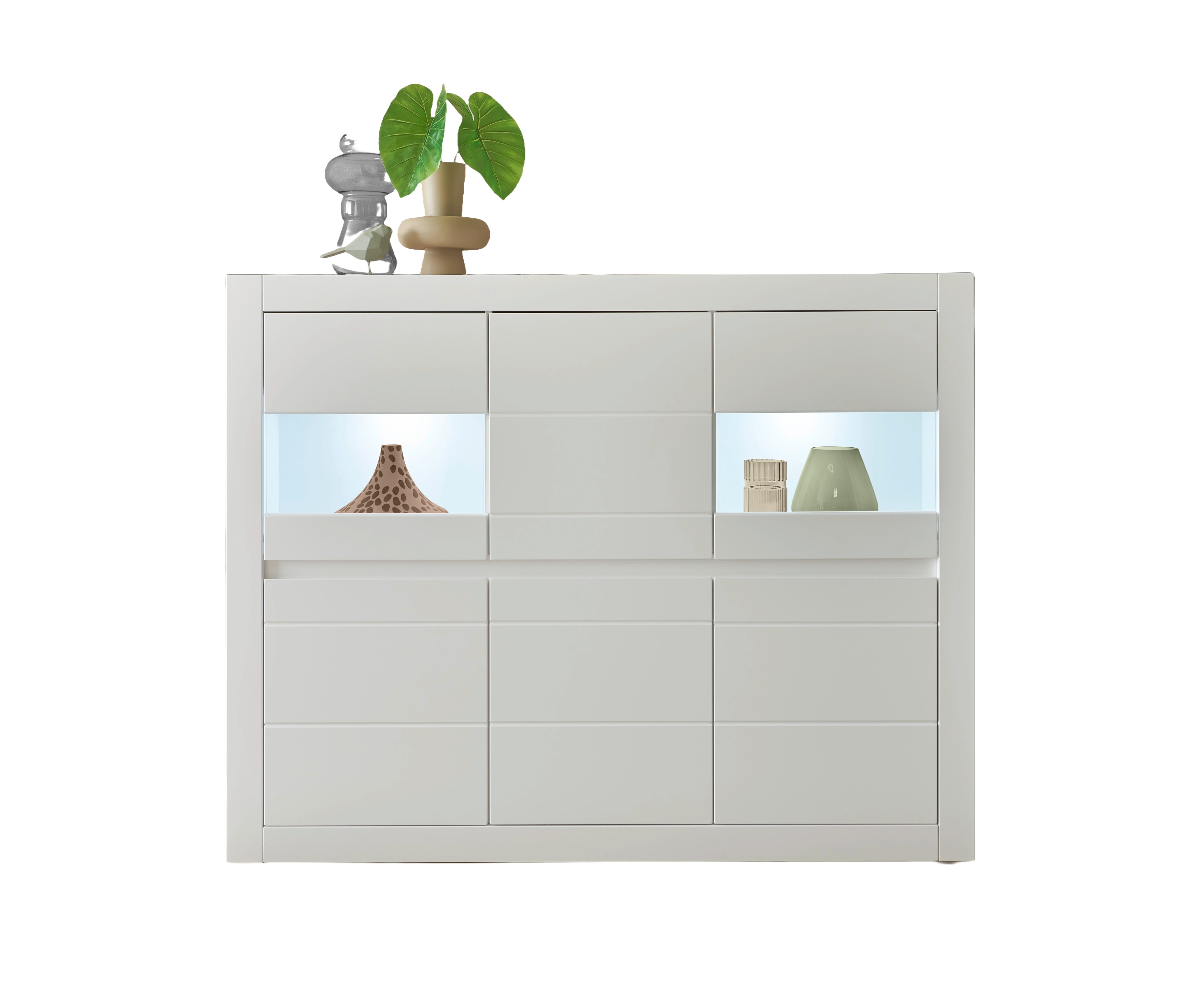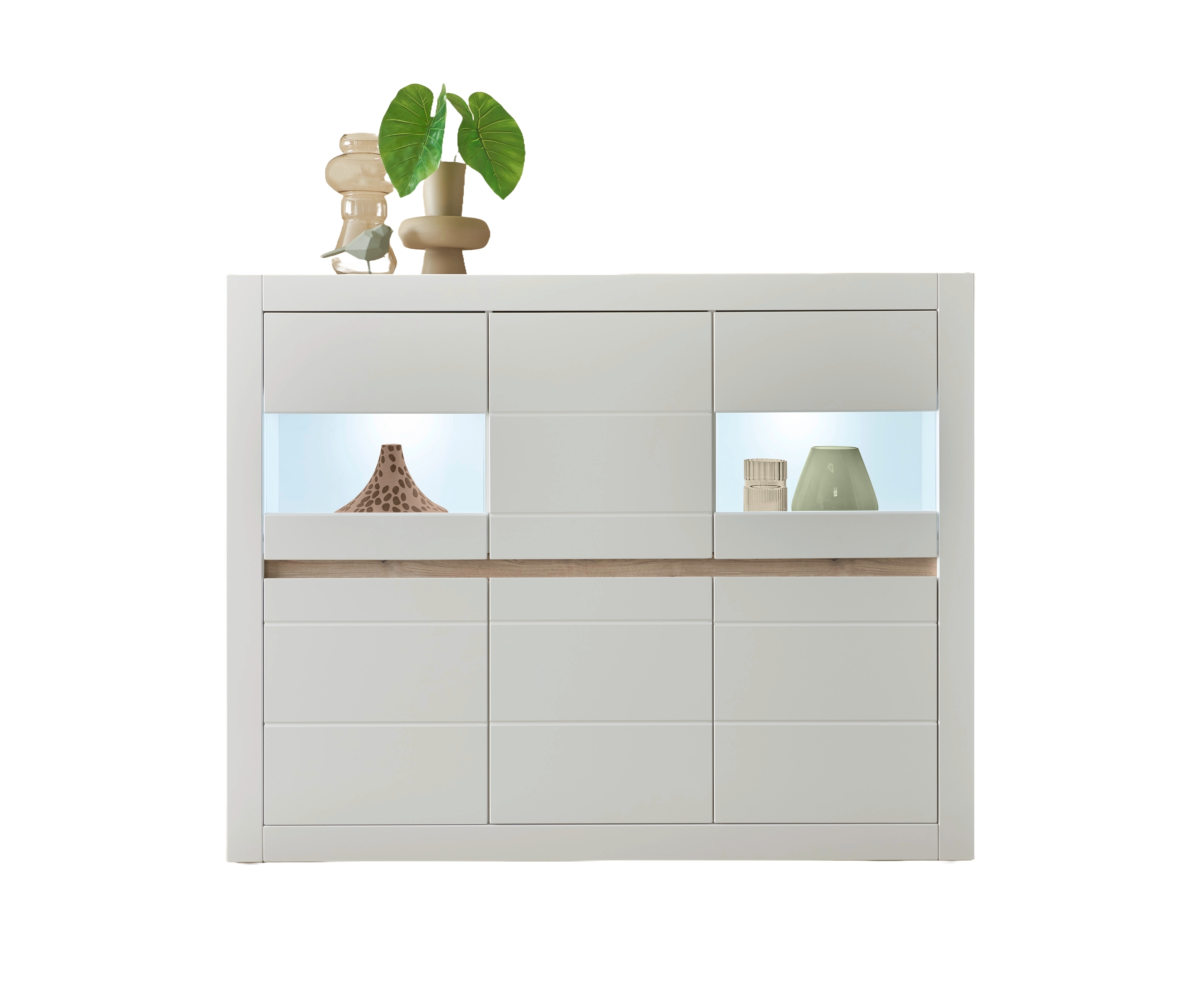 6 Türen mit Soft-Close Dämpfung, davon 2 Türen mit Glaseinsätzen