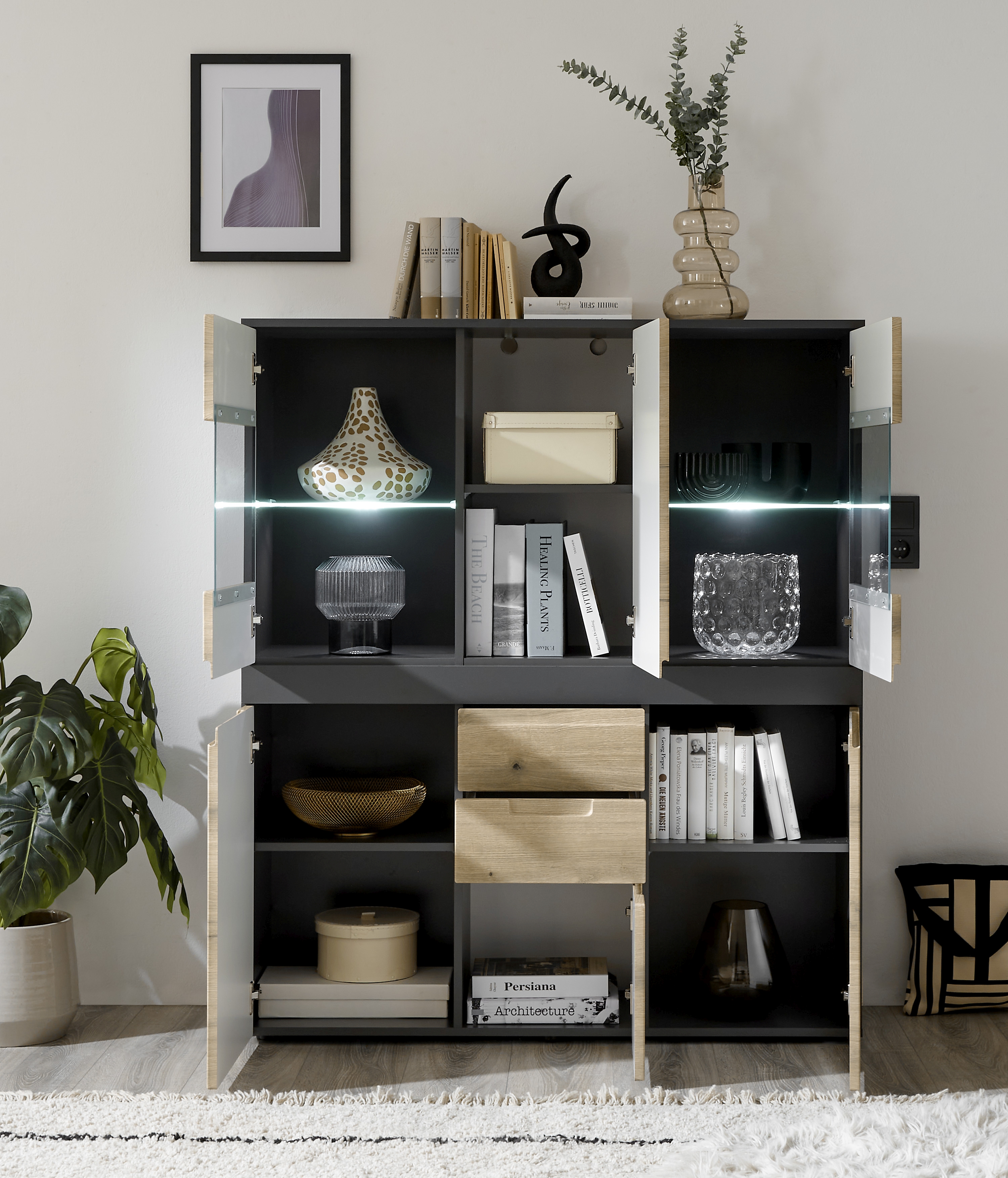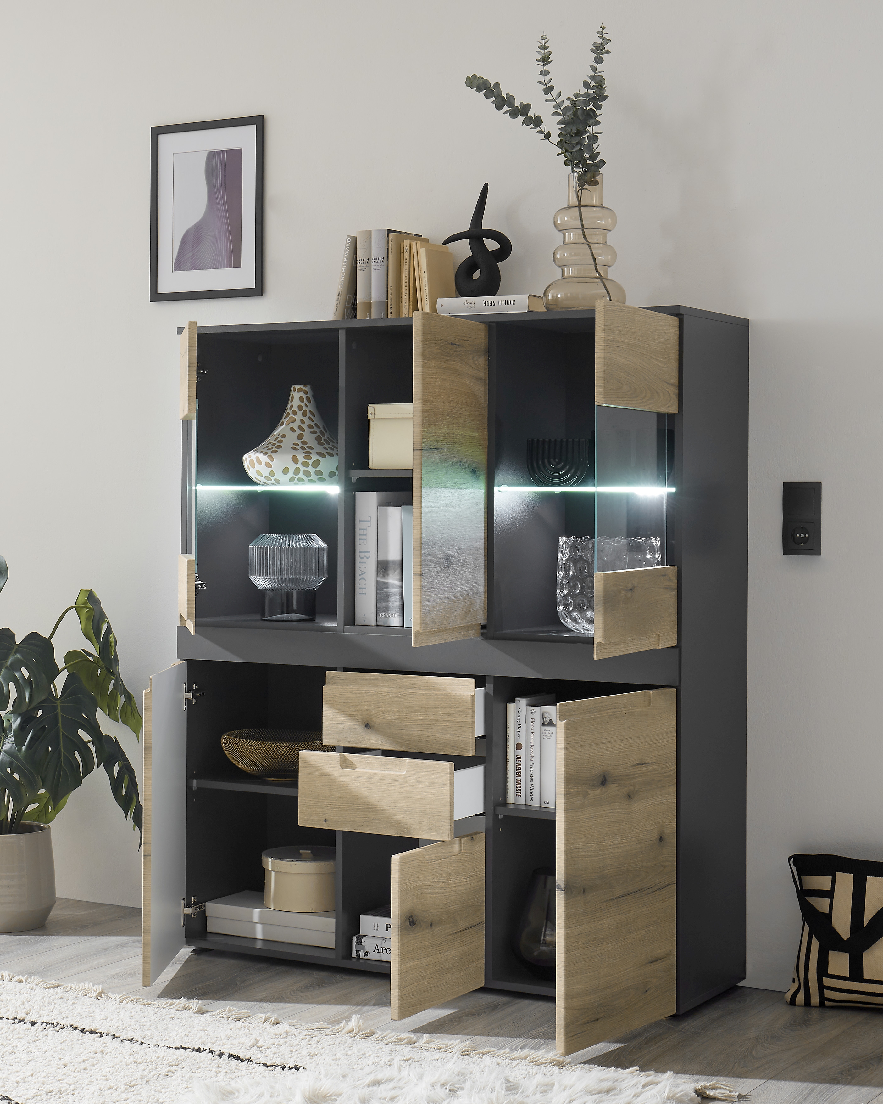 | Ausstattung Kommoden Phono Büro Regal: | Türe(n), inkl. Beleuchtung | ||