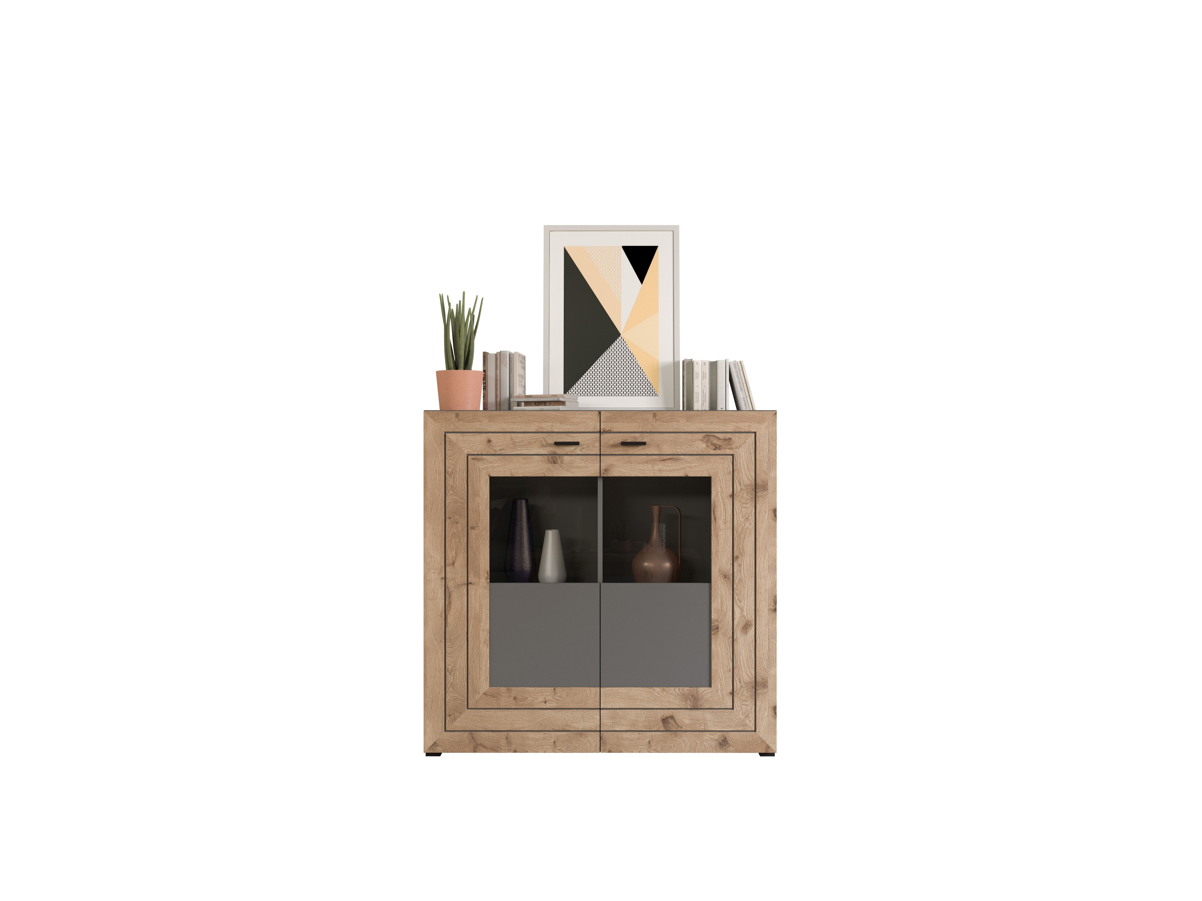 Einsatzbereich: Geeignet für Wohnzimmer und Esszimmer in Wohnungen oder Häusern, bietet die Vitrine eine vielseitige Lösung zur Aufbewahrung und Präsentation von Gegenständen und verleiht dem Raum eine moderne und stilvolle Atmosphäre. - Nachhaltigkeit: Das Möbel besteht aus FSC®-zertifiziertem Holzwerkstoff zum Schutz der Wälder.