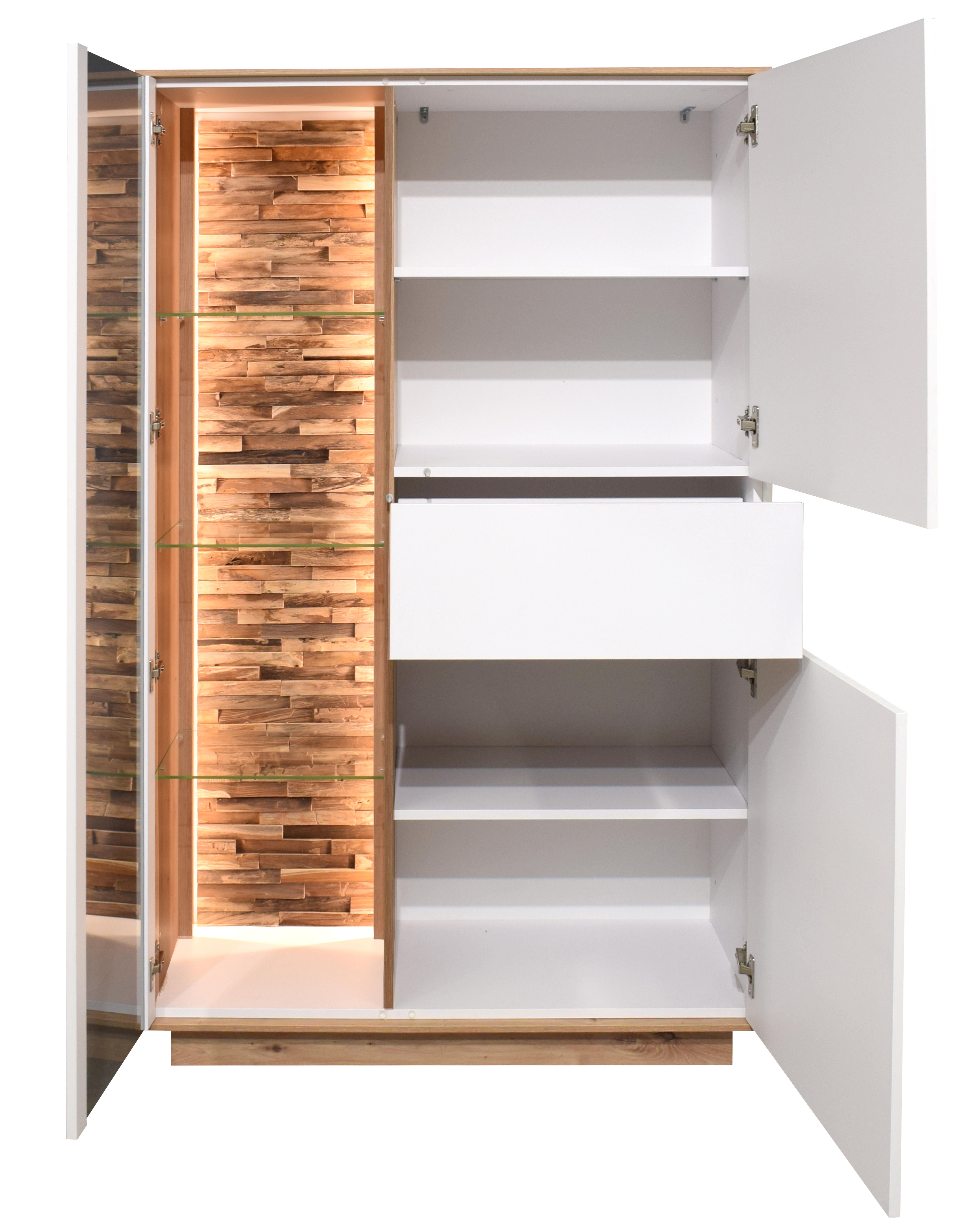Front und Korpus: Ice Weiß supermatt / Asteiche Holznachbildung