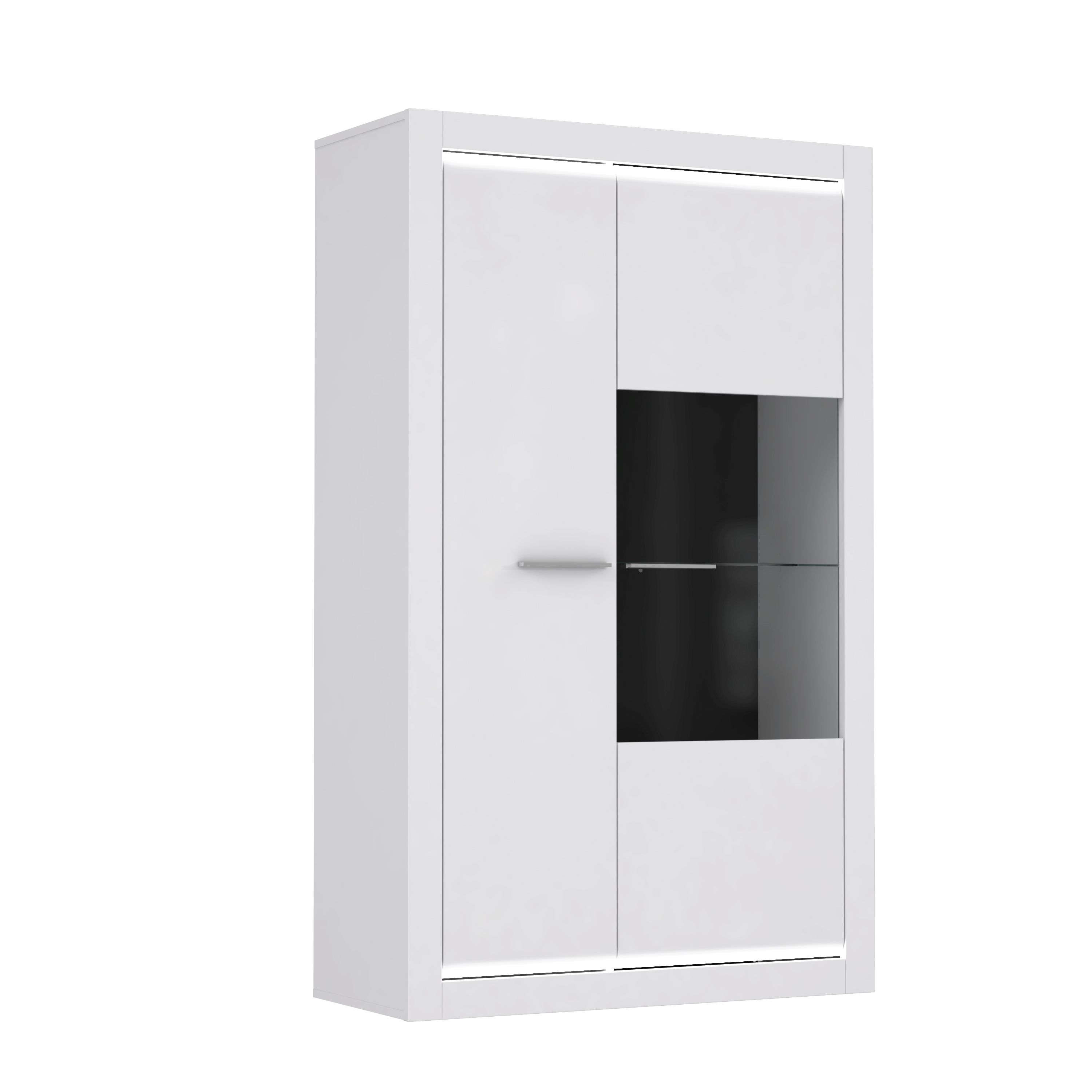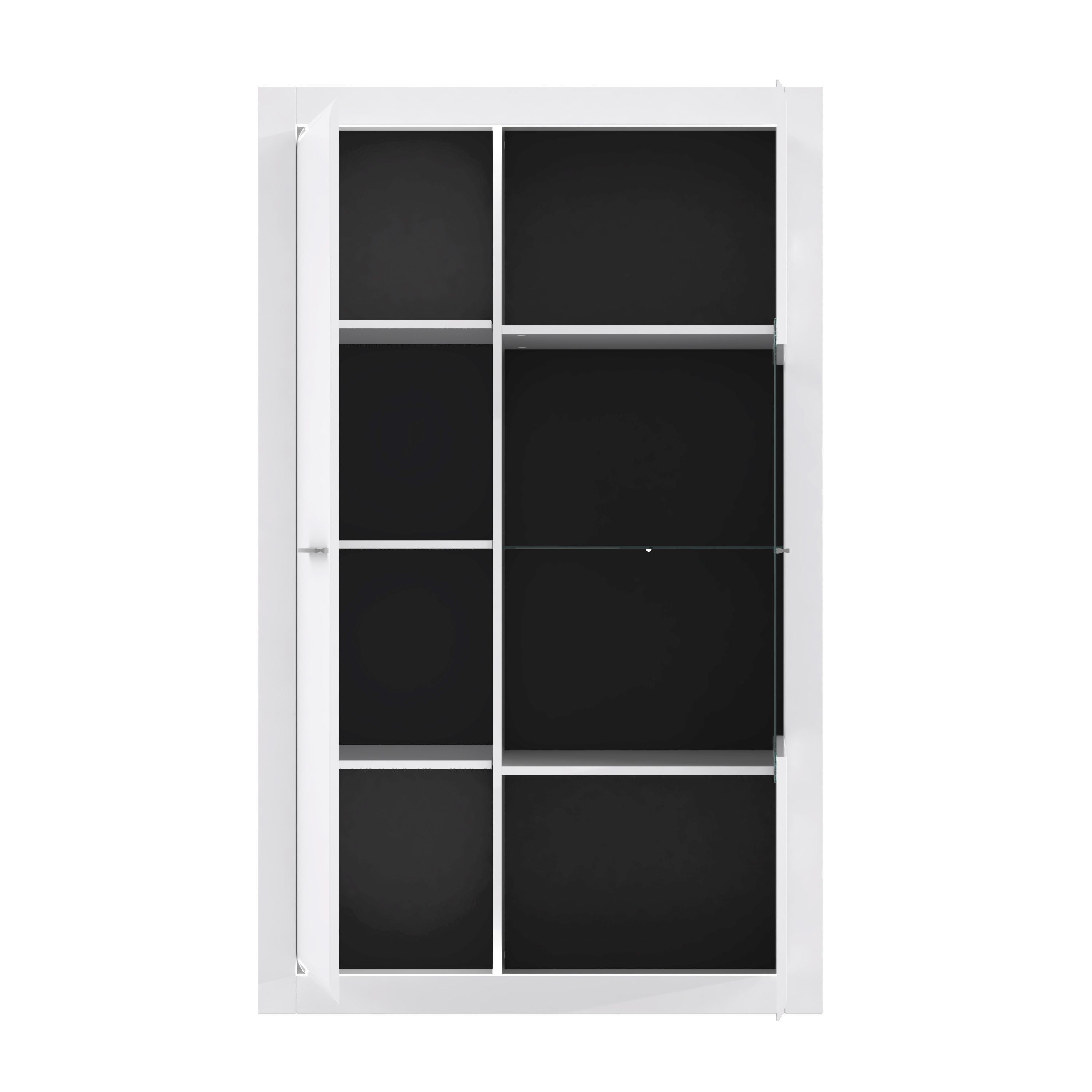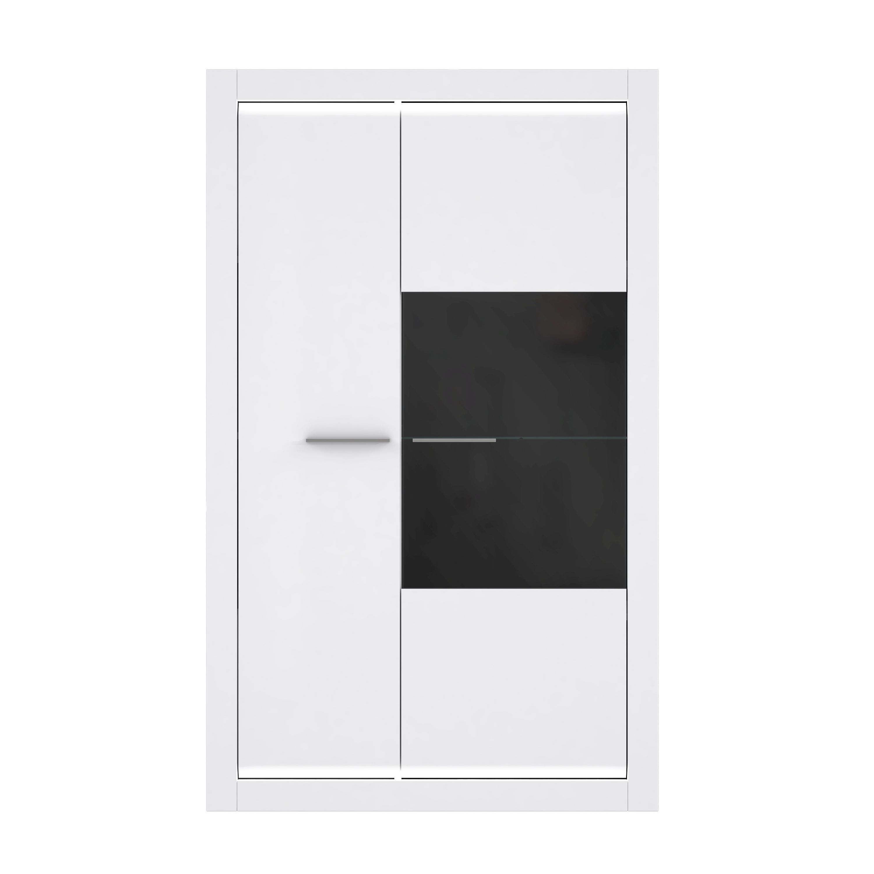 Front: MDF (Mitteldichte Holzfaserplatte) in Hochglanz Weiß / Glas