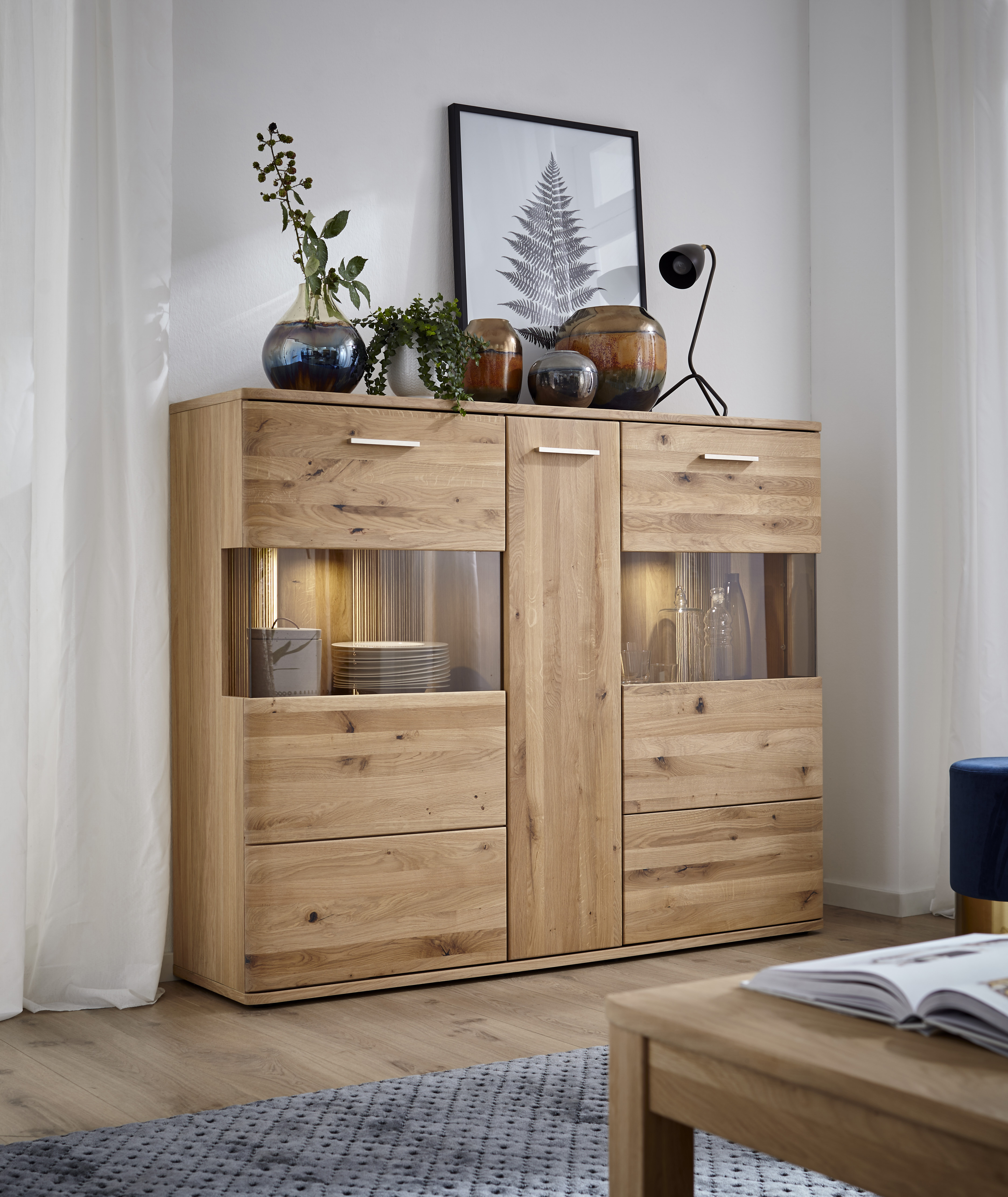 Korpus: außen Eiche Bianco furniert, Oberfläche geölt / innen Holznachbildung
