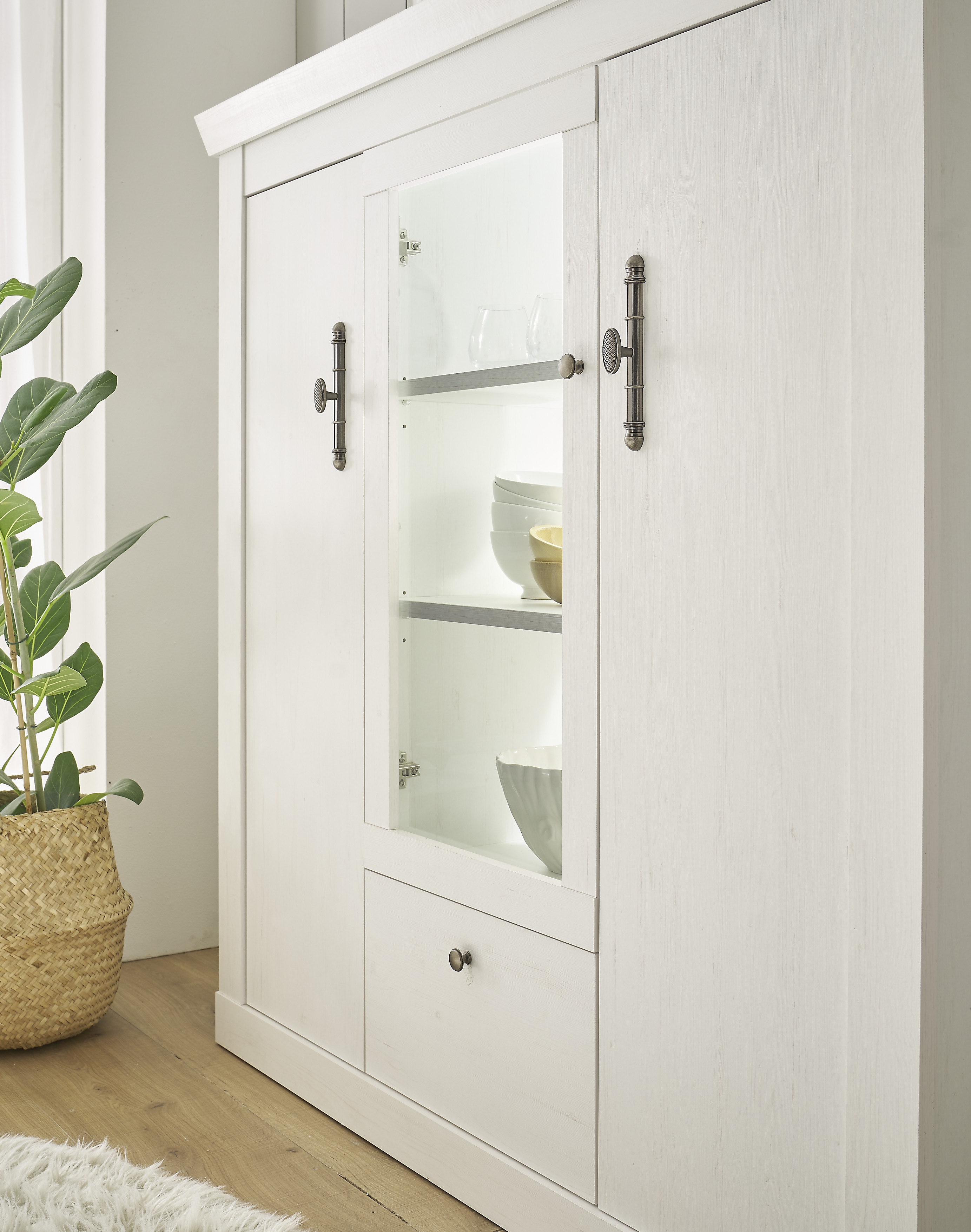 Front: Pinie Weiß Holznachbildung / Glas