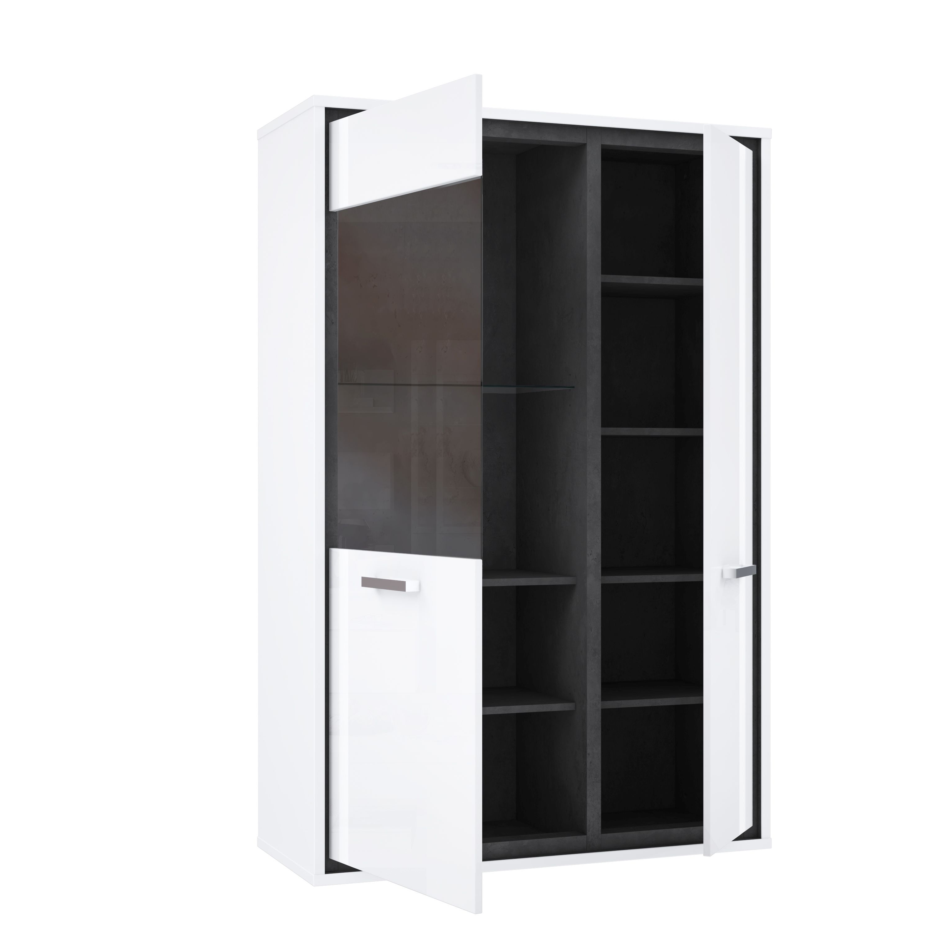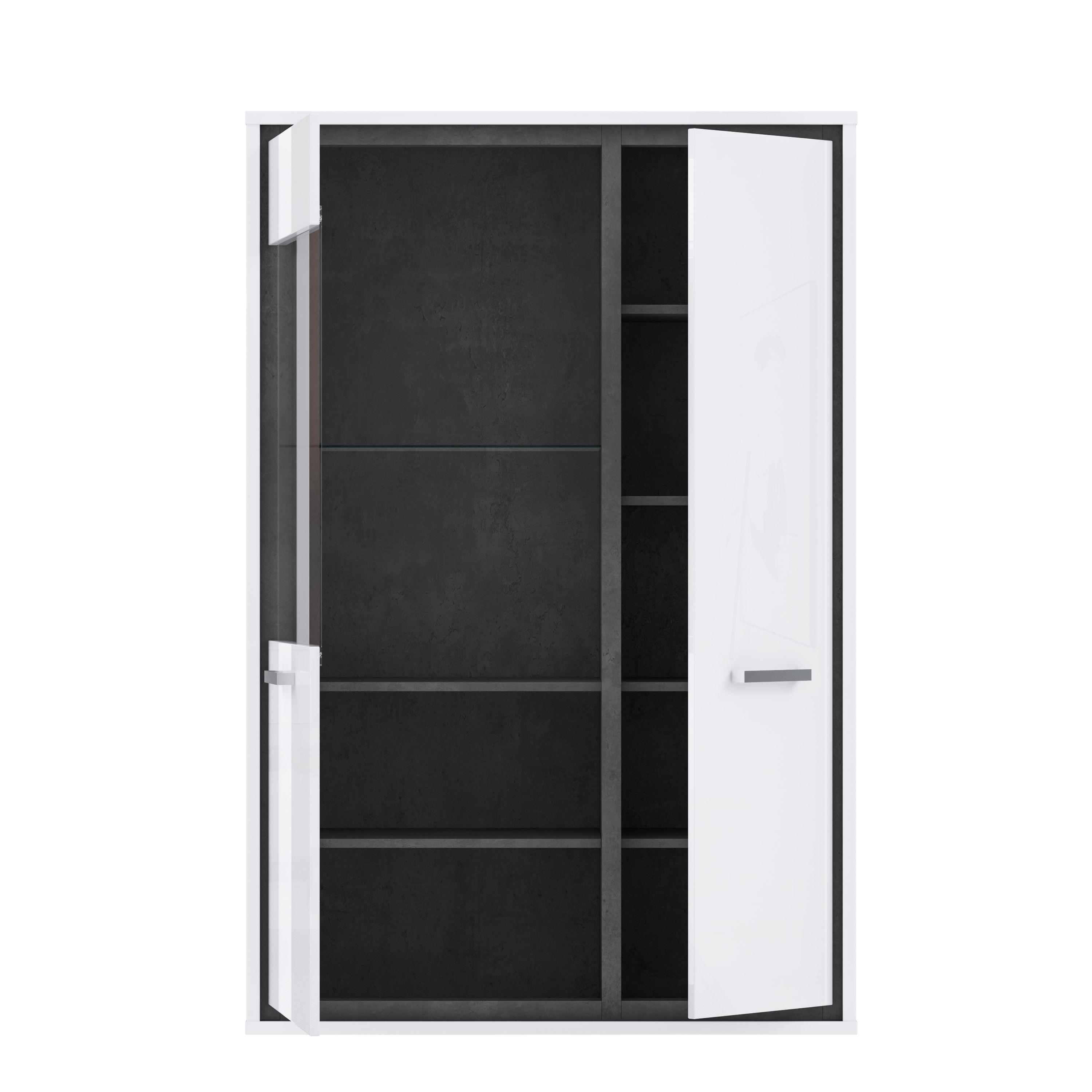 Front und Korpus: Weiß kombiniert mit Absetzungen in Concrete Optik Dark Gray