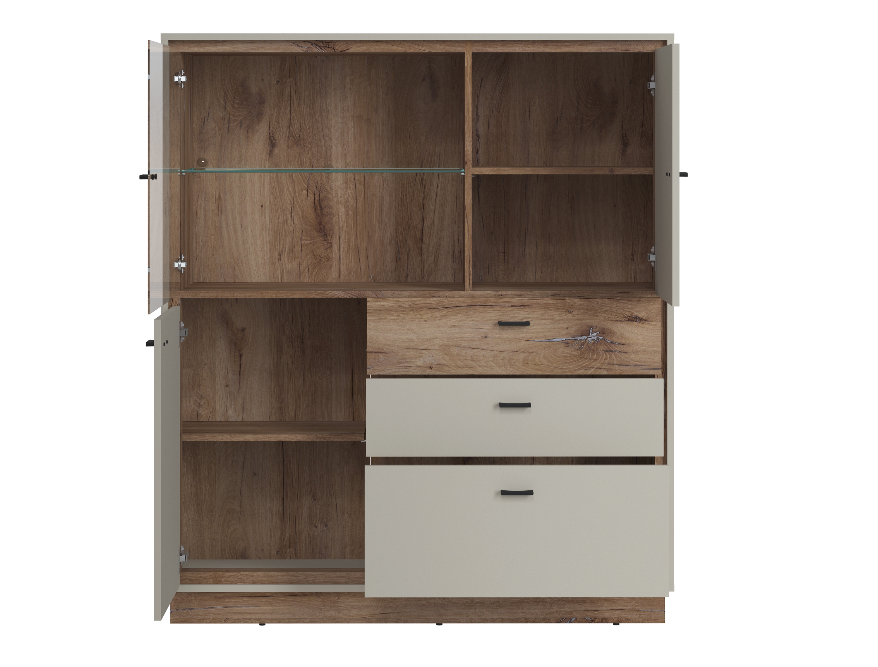Front: Kieselgrau mit Absetzungen in Flagstaff Eiche dunkel Holznachbildung / Glas