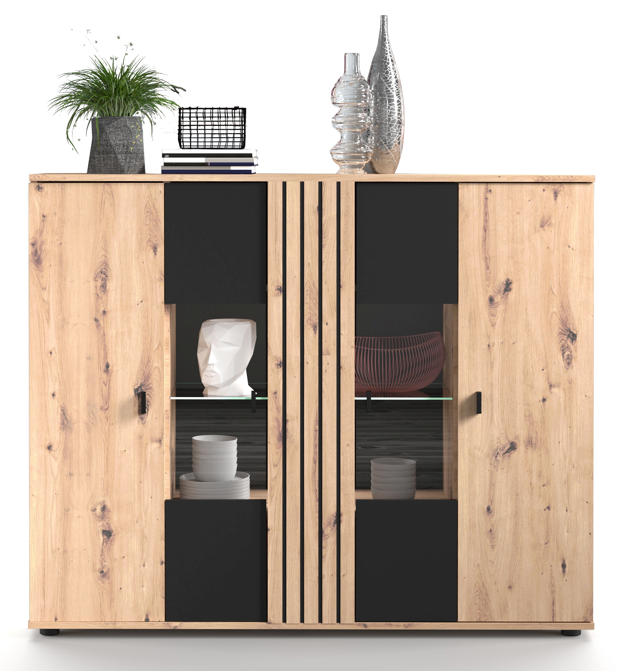 Front: Schwarz mit Lamellen in Artisan Eiche Holznachbildung