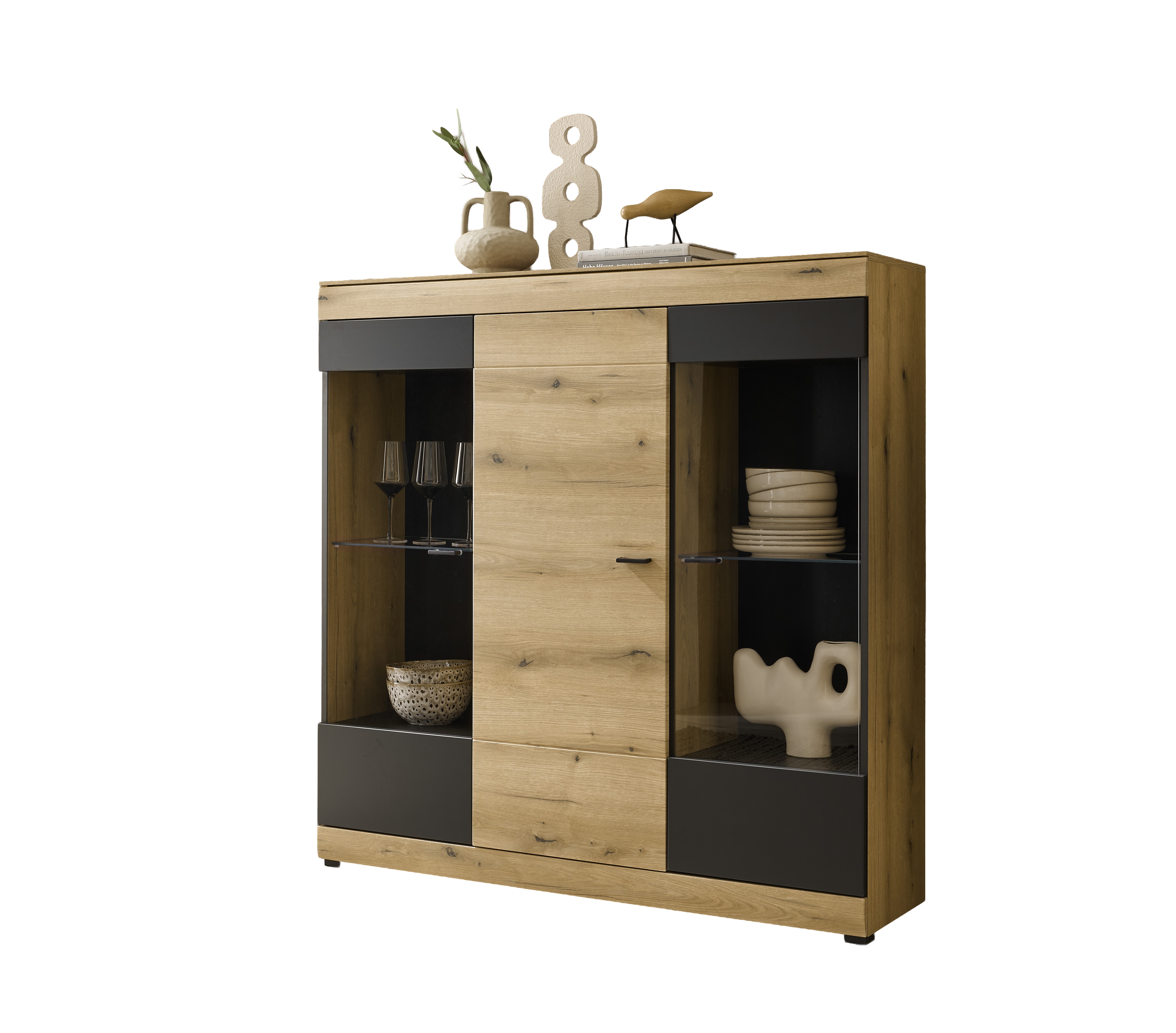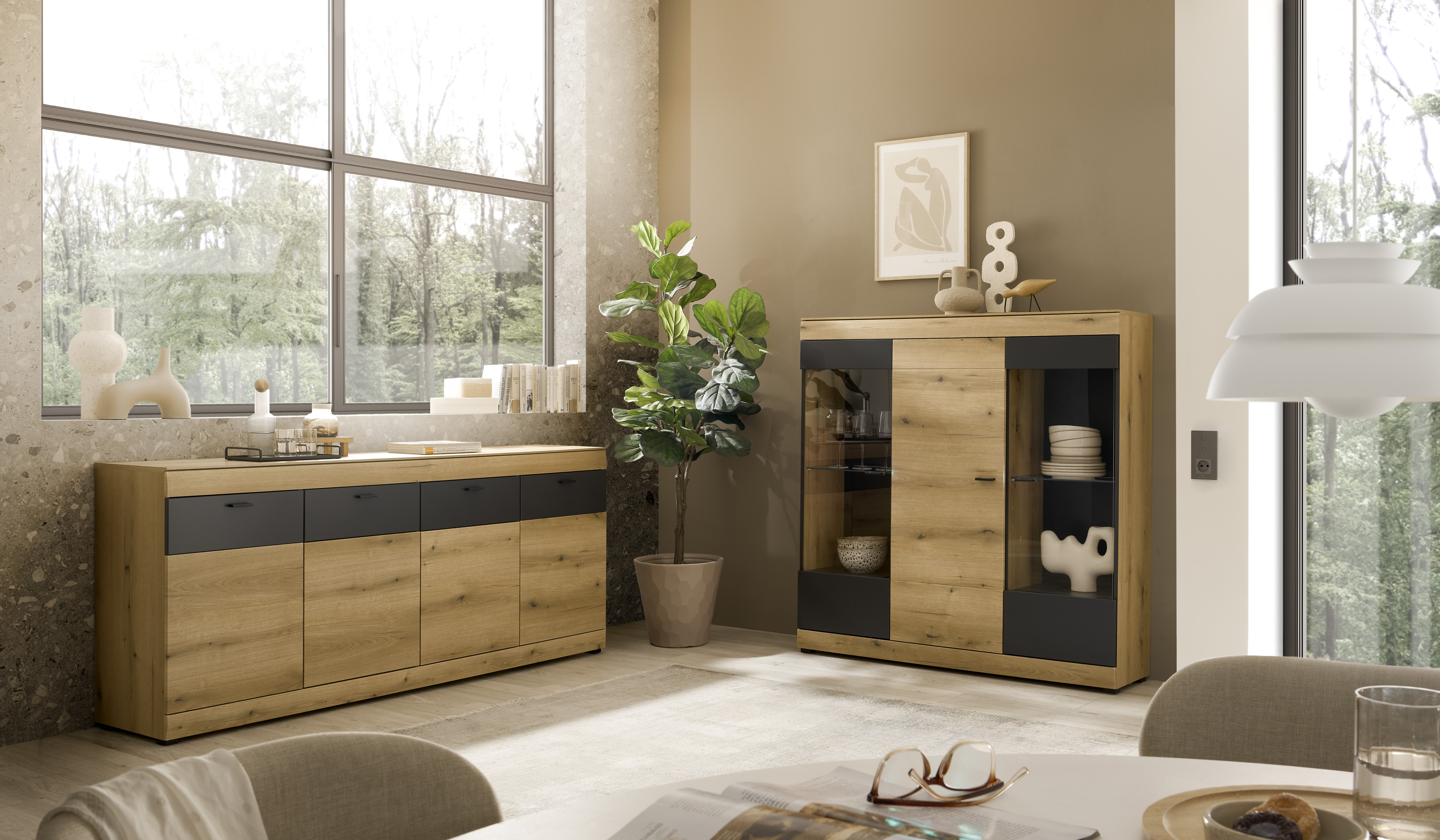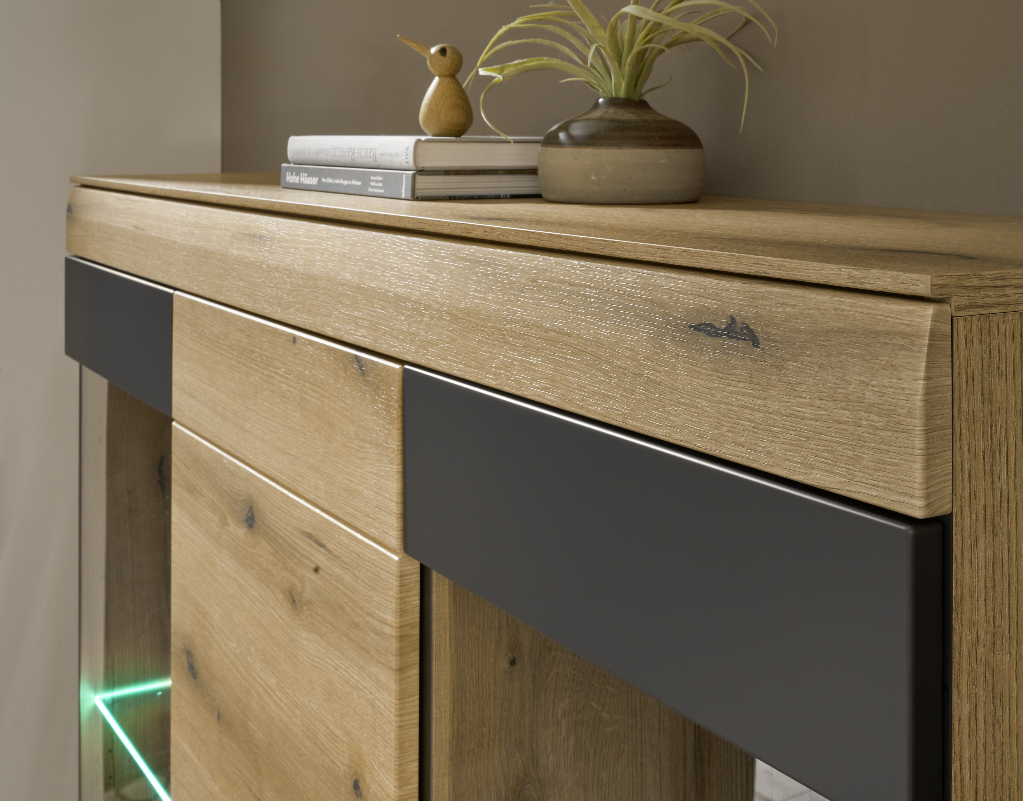 - Zeitloses Design mit Eiche-Fronten und graphitmatten Akzenten