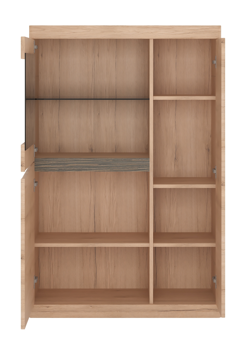 Front: MDF San Remo Eiche hell Holznachbildung PVC / Rauchglas braun