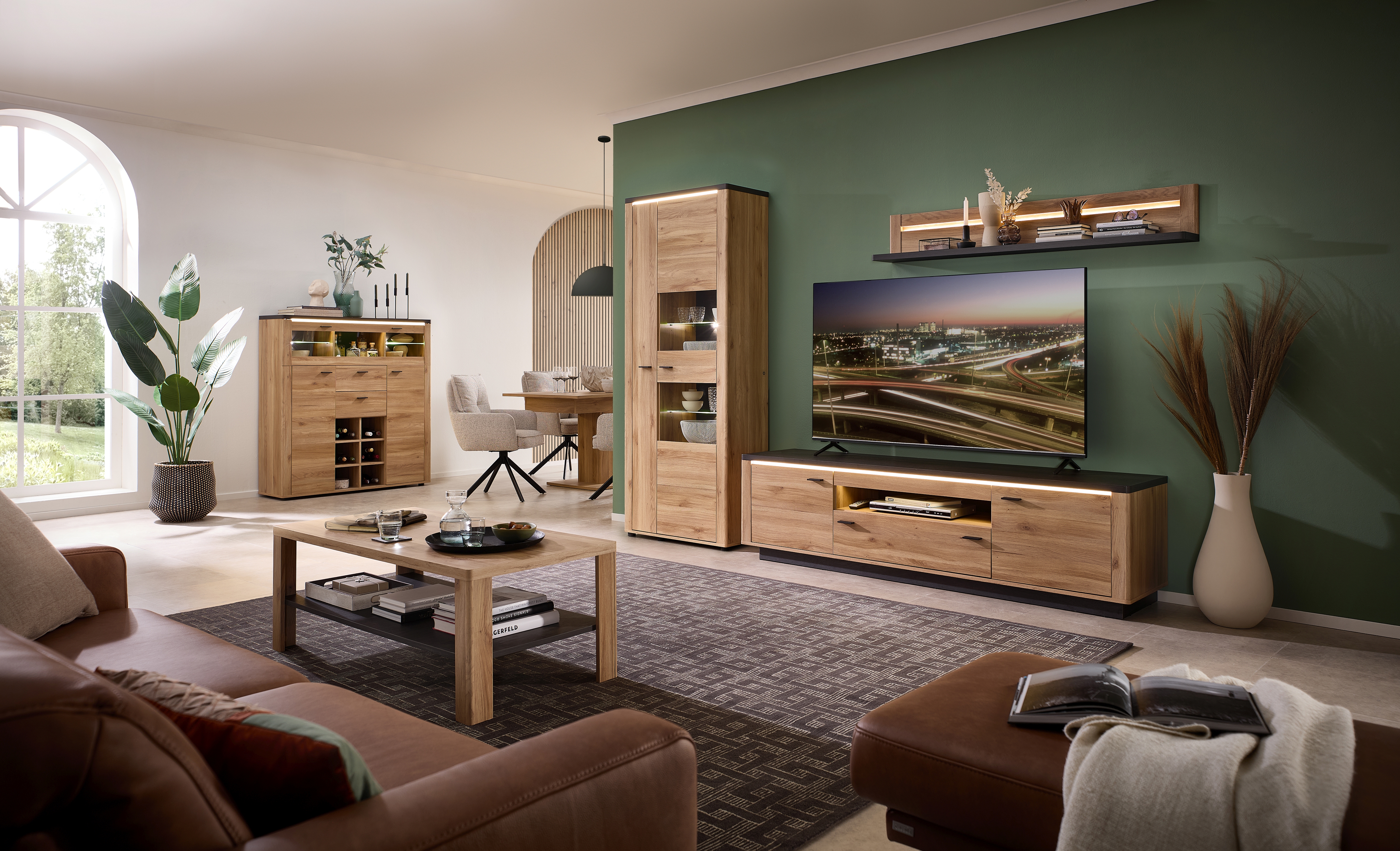 Korpus: Mauvella Eiche Holznachbildung kombiniert mit Absetzungen in Carbon Eiche dunkel Holznachbildung