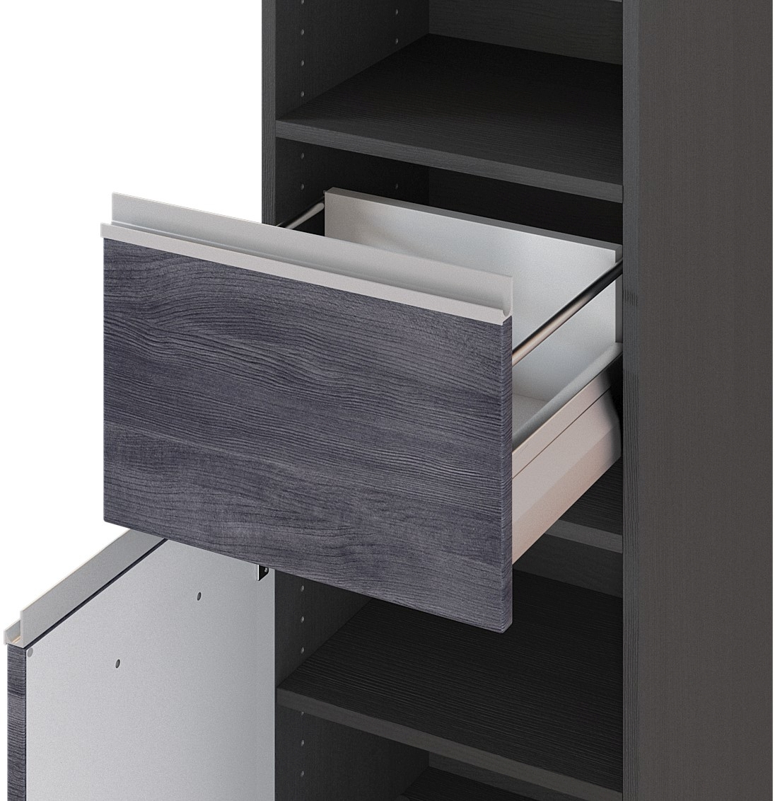 Front: MDF (Mitteldichte Holzfaserplatte) Eiche rauchsilber Holznachbildung