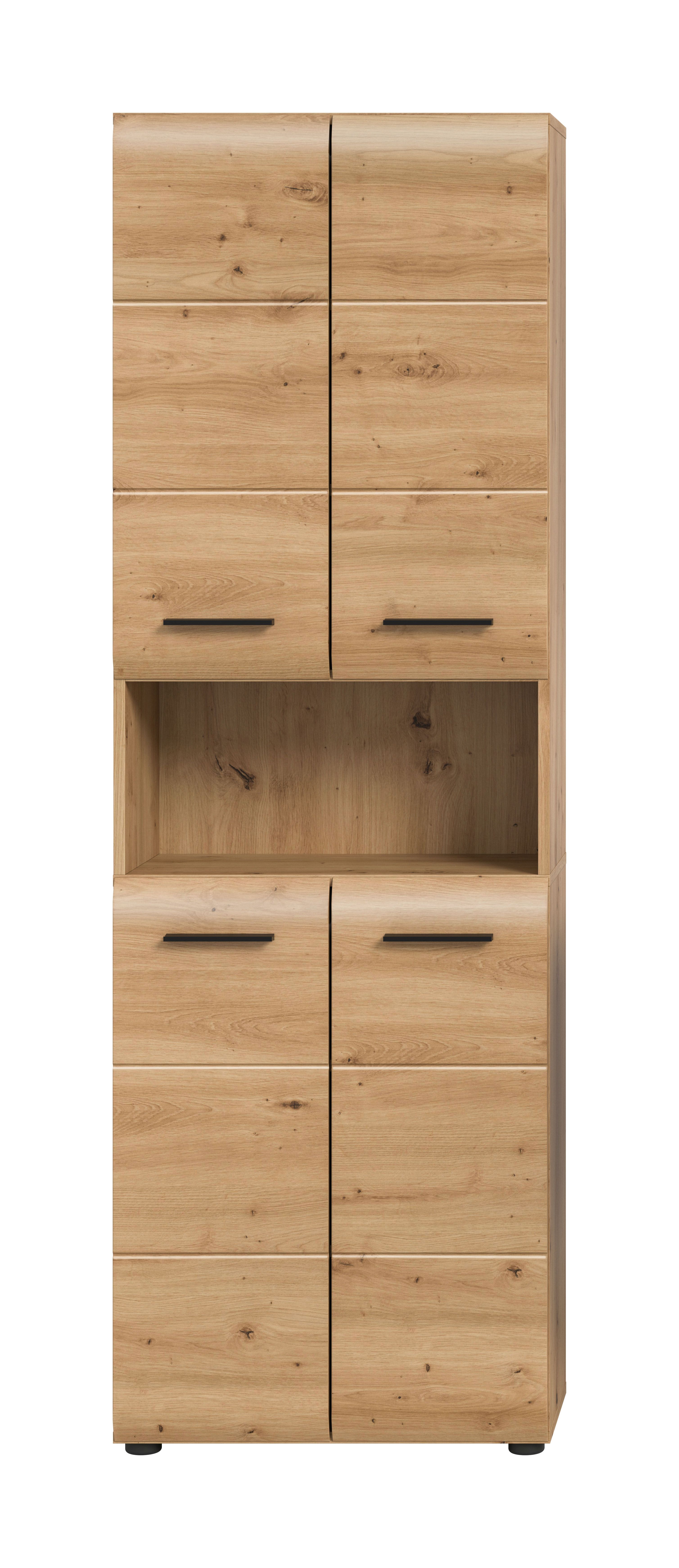 Entdecken Sie unseren geräumigen Badezimmer Hochschrank in Artisan Eiche Holznachbildung. Mit den großzügigen Maßen von 60x185x30 cm bietet er nicht nur viel Stauraum für Ihre Badutensilien, sondern setzt auch einen modernen Akzent in Ihrem Badezimmer.