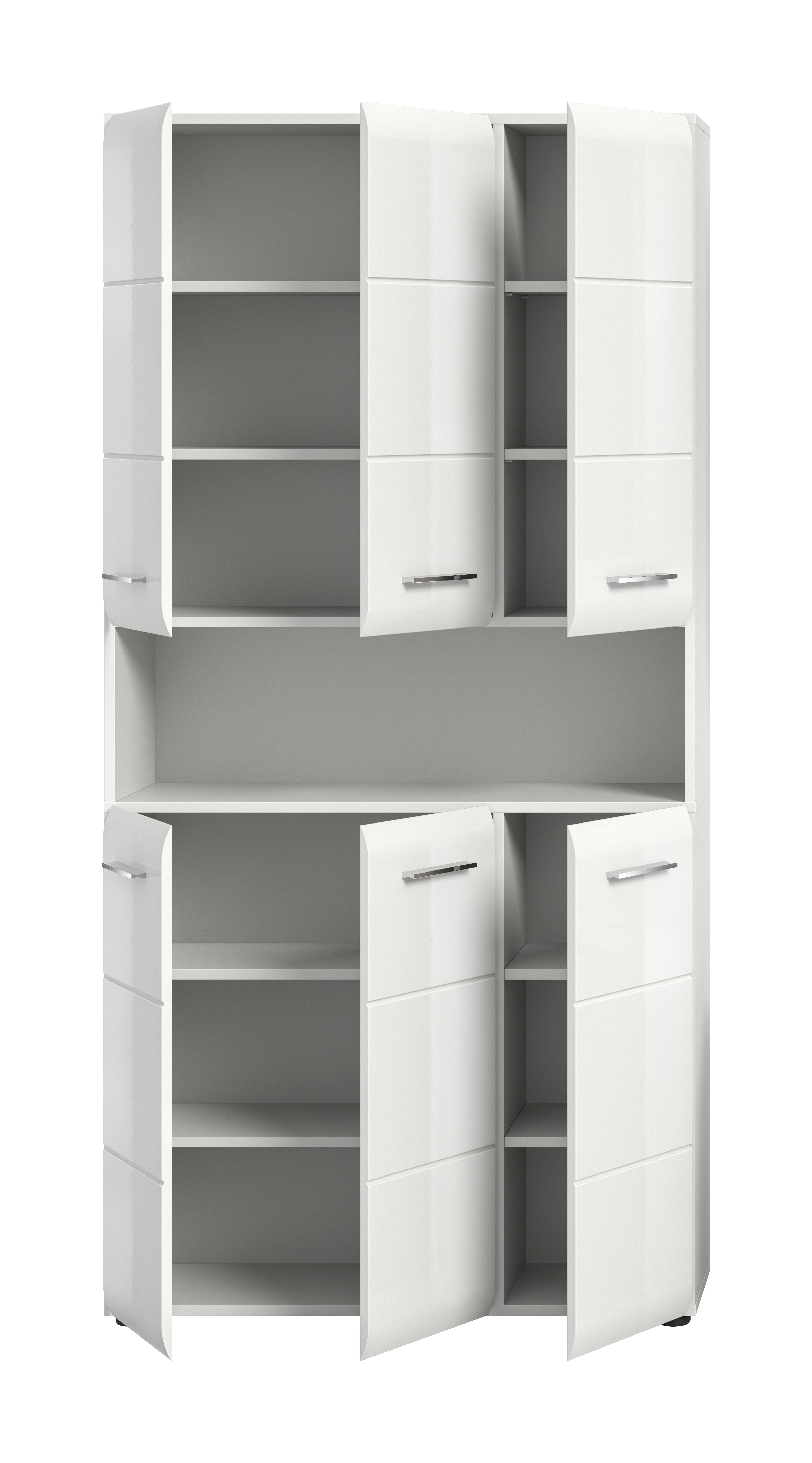 - 6 Türen, 8 höhenverstellbare Einlegeböden, 12 geschlossene Fächer, 2 Konstruktionsböden, 1 offenes Fach