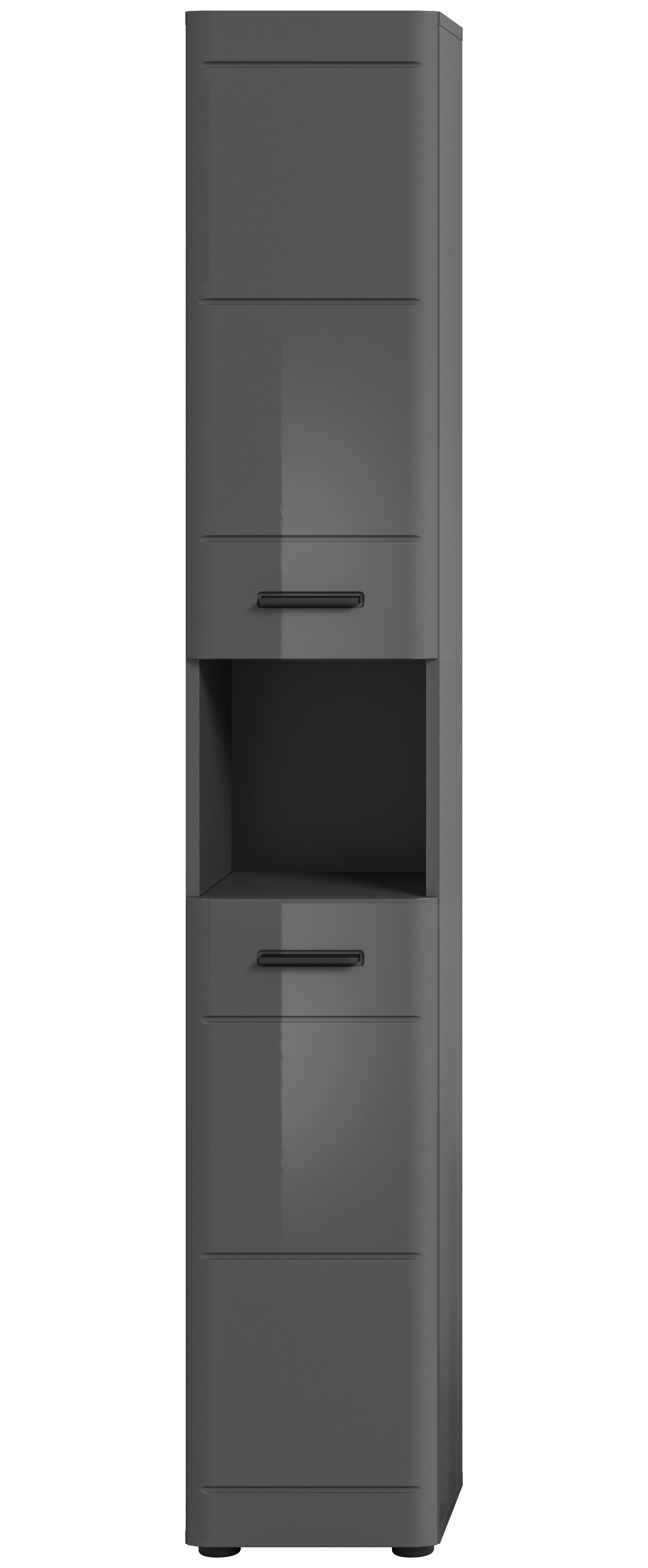 Mit unserem Badezimmer Hochschrank in grau Nachbildung und grau Hochglanz tiefzieh, Maße 30x180x30 cm, setzt du ein echtes Style-Statement in deinem Badezimmer. Seine kompakte Größe und sein trendiges Design machen ihn zum perfekten Begleiter für jeden Raum.