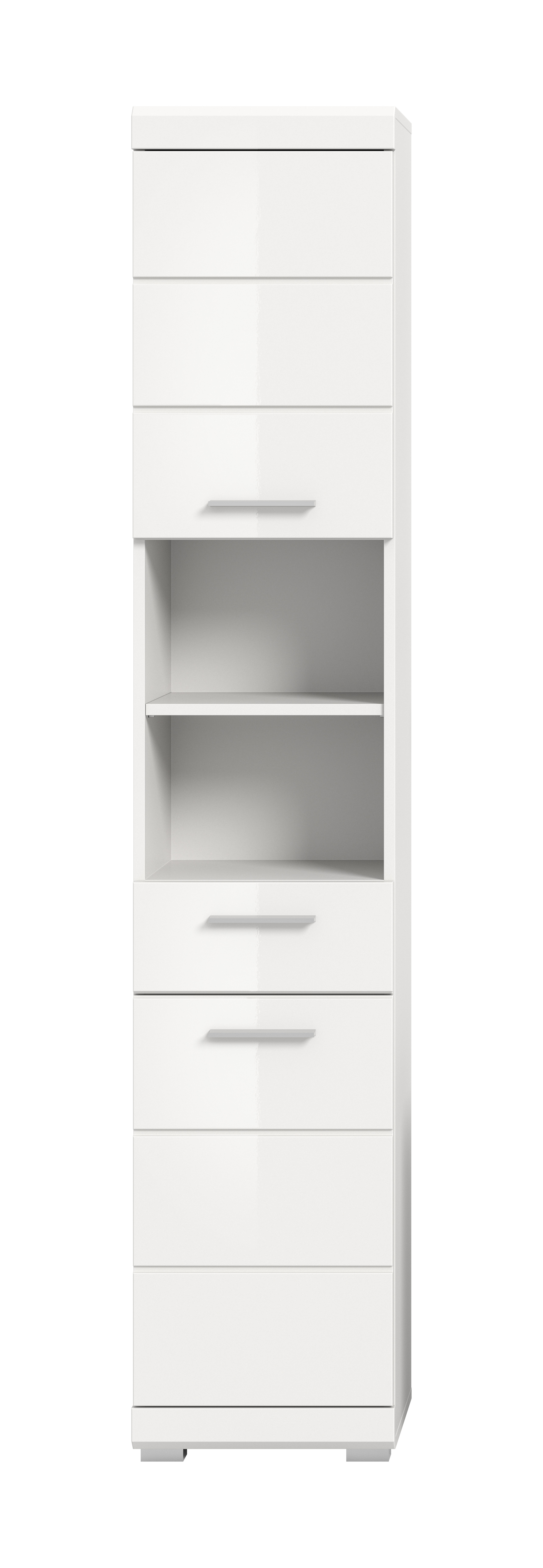 - Design/Stil: Schlichter Hochschrank in weiß Nachbildung und weißem Hochglanz tiefzieh, der sich nahtlos in verschiedene Badezimmer- und Hauswirtschaftsräume einfügt und ein modernes und ordentliches Erscheinungsbild bietet.