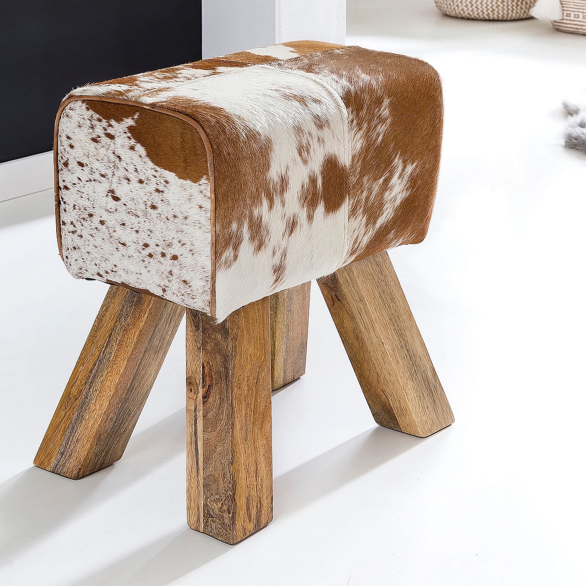 - DESIGN ✔ Sitzhocker mit Haarleder // Vier Massivholz Beine // Kultiger Retro // Country Look