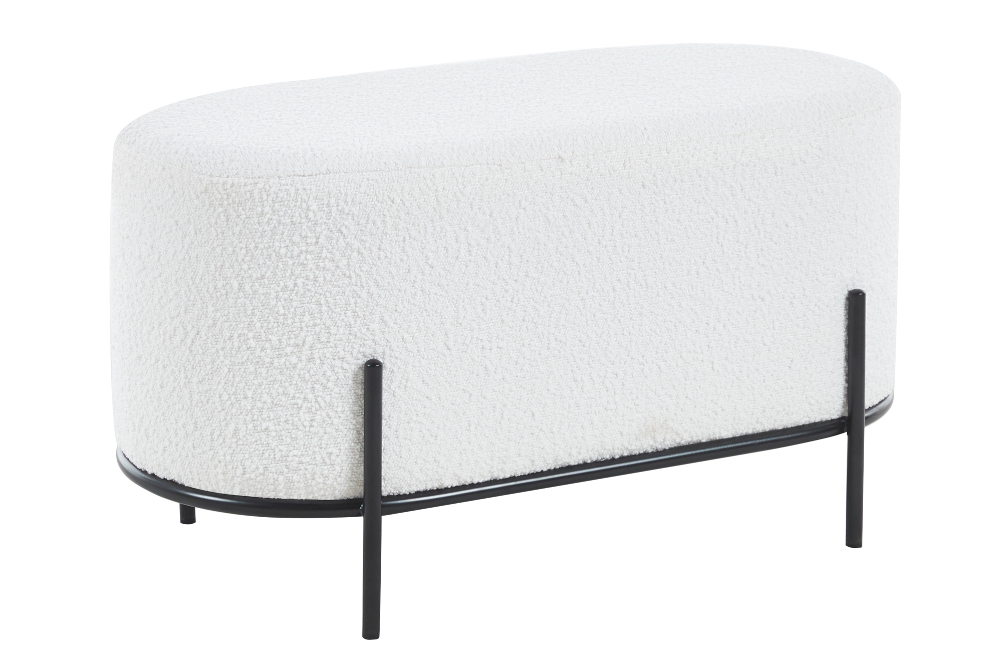 Wenn sich spontan Gäste ankündigen, sind zusätzliche Sitzgelegenheiten immer ein willkommener Segen. Wenn diese dann auch noch stylisch aussieht und platzsparend Nutzen schafft, dann hat man einen idealen Design-Kompagnon für Sofa und Sitzecke. Der Hocker in Bouclé-Optik bietet genau diese Kombination aus ansprechender Optik und funktionalem Nutzen. Hier können Sie zusätzliche Gäste platzieren oder aber ganz entspannt die Füße hochlegen. Der Bouclé Stoff, der schon lange Einzug in unsere Wohn- und Schlafzimmer gehalten hat, vermittelt Wärme und Geborgenheit. Außerdem spiegelt der Stoff mit seiner wolligen Optik die Essenz des beliebten Scandi Styles gekonnt wider. Das Design-Gestell mit hohen Füßen besteht aus pulverbeschichtetem schwarzem Metall und rundet den Look ab. Auch als Bettbank können Sie diesen Artikel vielseitig nutzen.