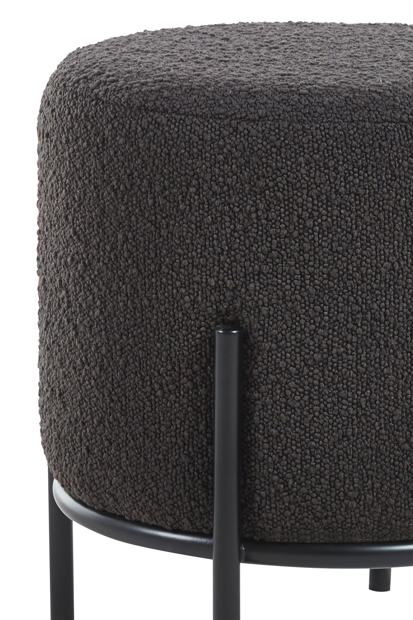 Wenn sich spontan Gäste ankündigen, sind zusätzliche Sitzgelegenheiten immer ein willkommener Segen. Wenn diese dann auch noch stylisch aussieht und platzsparend Nutzen schafft, dann hat man einen idealen Design-Kompagnon für Sofa und Sitzecke. Der Hocker in Bouclé-Optik mit einem Durchmesser der Sitzfläche von 35 cm bietet genau diese Kombination aus ansprechender Optik und funktionalem Nutzen. Hier können Sie zusätzliche Gäste platzieren oder aber ganz entspannt die Füße hochlegen. Der Bouclé Stoff, der schon lange Einzug in unsere Wohn- und Schlafzimmer gehalten hat, vermittelt Wärme und Geborgenheit. Außerdem spiegelt der Stoff mit seiner wolligen Optik die Essenz des beliebten Scandi Styles gekonnt wider. Das Design-Gestell mit hohen Füßen besteht aus schwarzem pulverbeschichtetem Metall und rundet den Look ab.