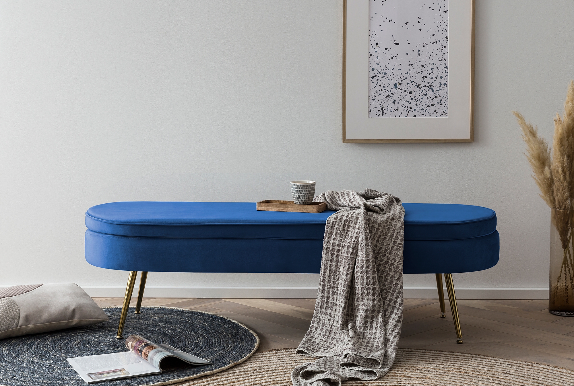 - Edler Stoffbezug in Samt-Optik in Dunkelblau