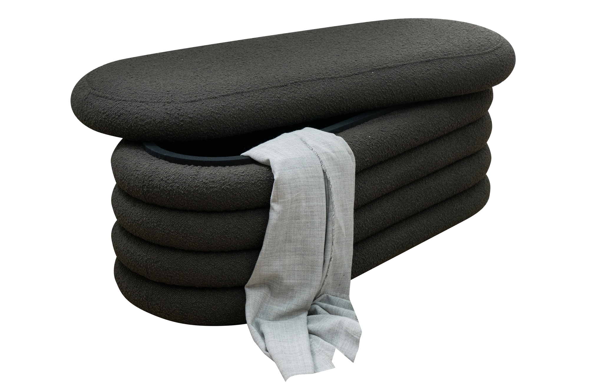 Clevere Stauraumlösung in topaktuellem Design. Dieser Polsterhocker im modernen Bouclé Gewand macht nicht nur optisch eine gute Figur. Das obere Element der Sitzbank lässt sich abnehmen, sodass das Innere des Hockers zur praktischen Stauraumlösung wird. Mit dieser Bank schaffen Sie somit nicht nur eine zusätzliche Sitzgelegenheit, sondern schaffen ebenso stilvoll Ordnung in Ihrem Wohn- und Schlafbereich. Vor allem als am Fußende platzierte Bettbank macht das angesagte Bouclé-Highlight im 70er Jahre Retro-Design etwas her. Die Lieferung erfolgt völlig unkompliziert – Der Artikel wird bereits fertig montiert geliefert. Nur noch auspacken, hinstellen und am neuen Lieblingsstück erfreuen.