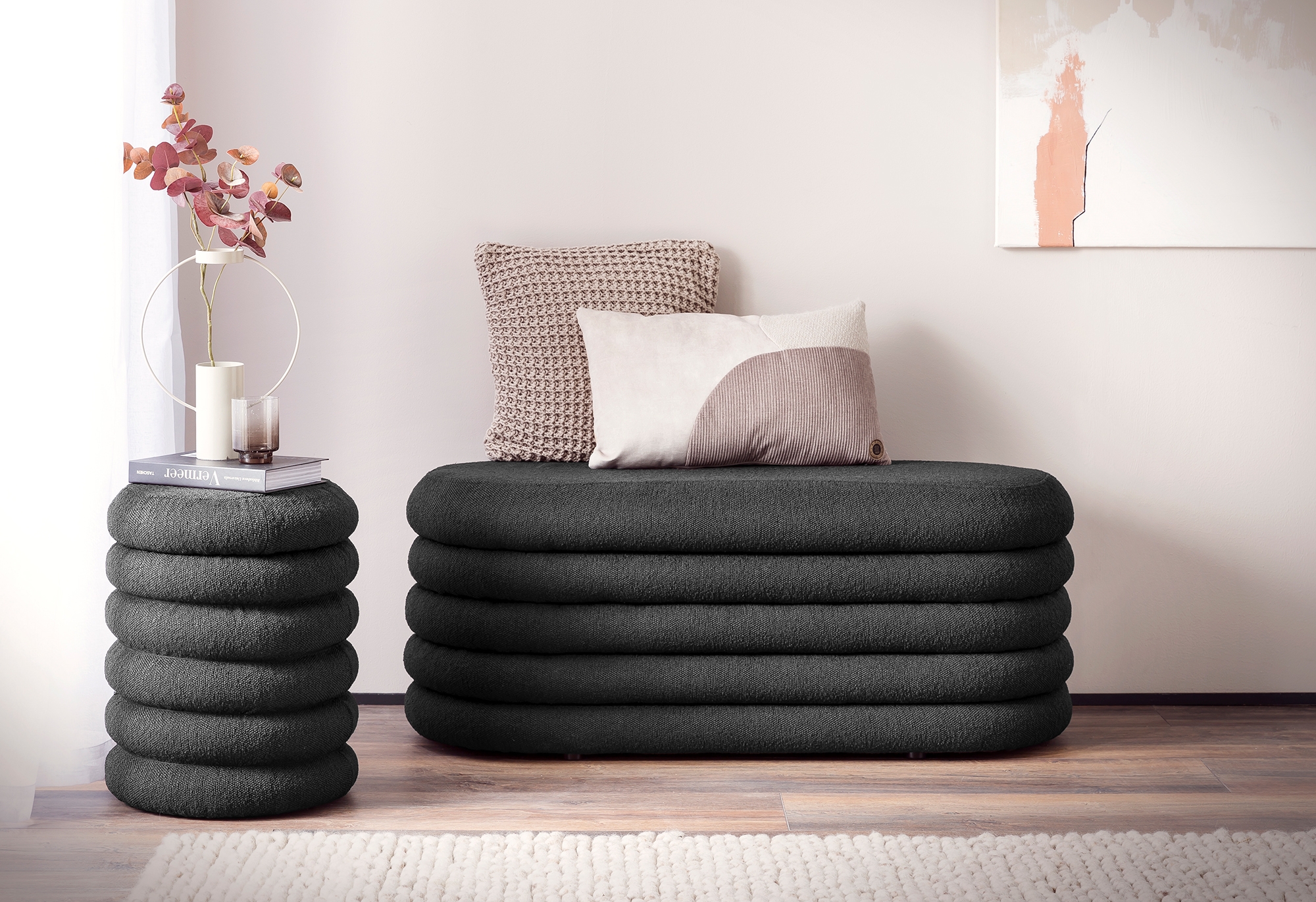 Bezug: Bouclestoff in der Farbe anthrazit aus 100% Polyester