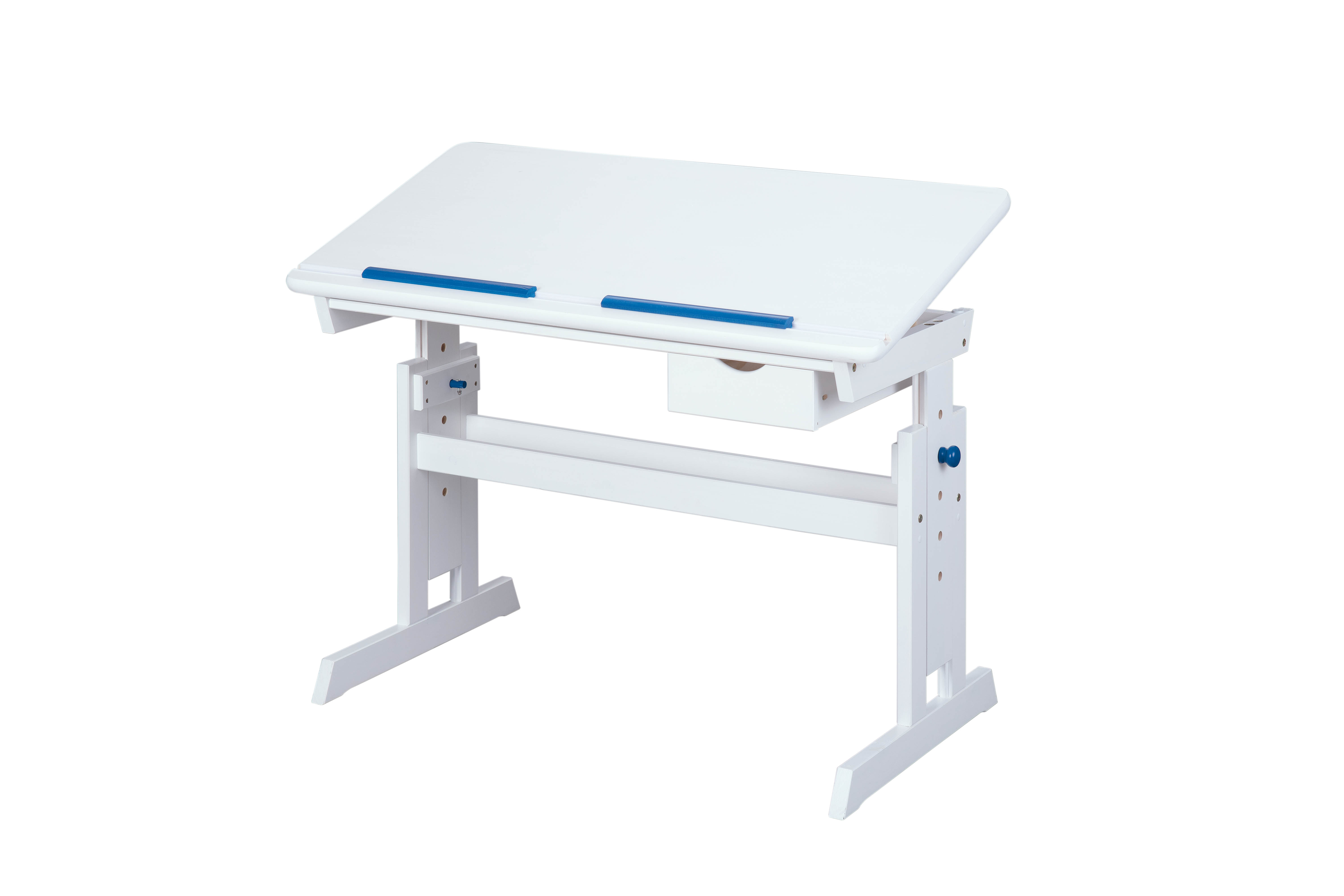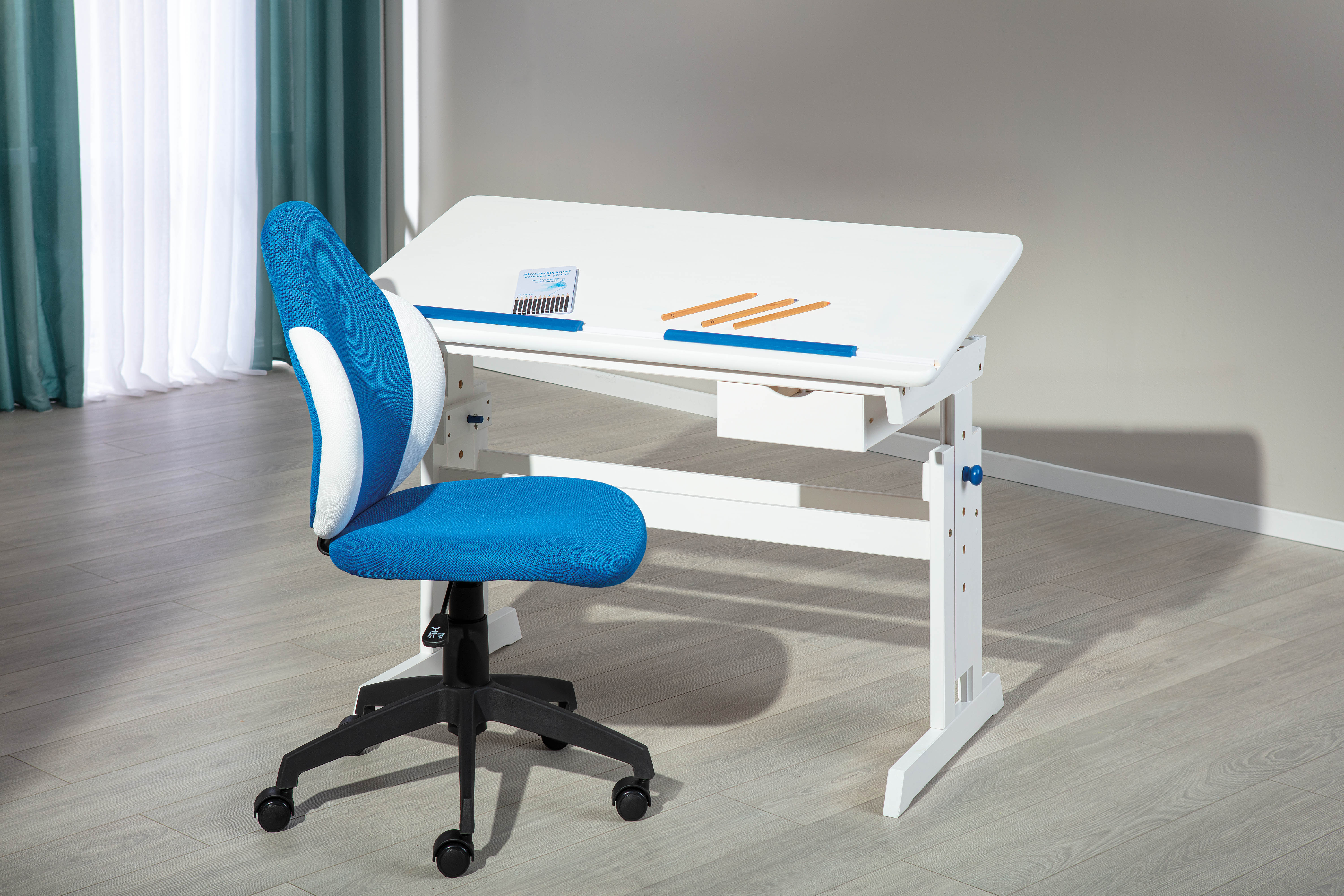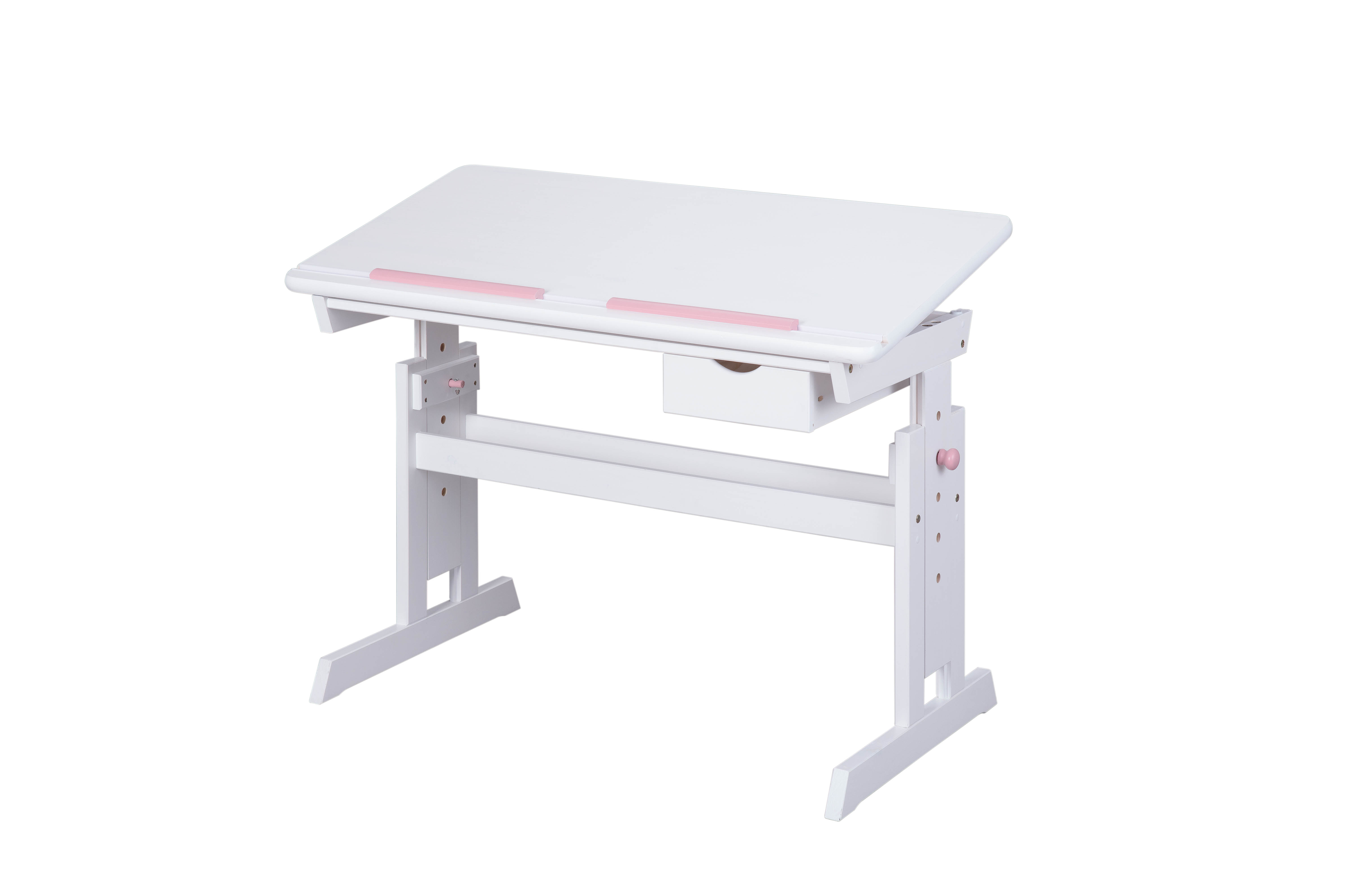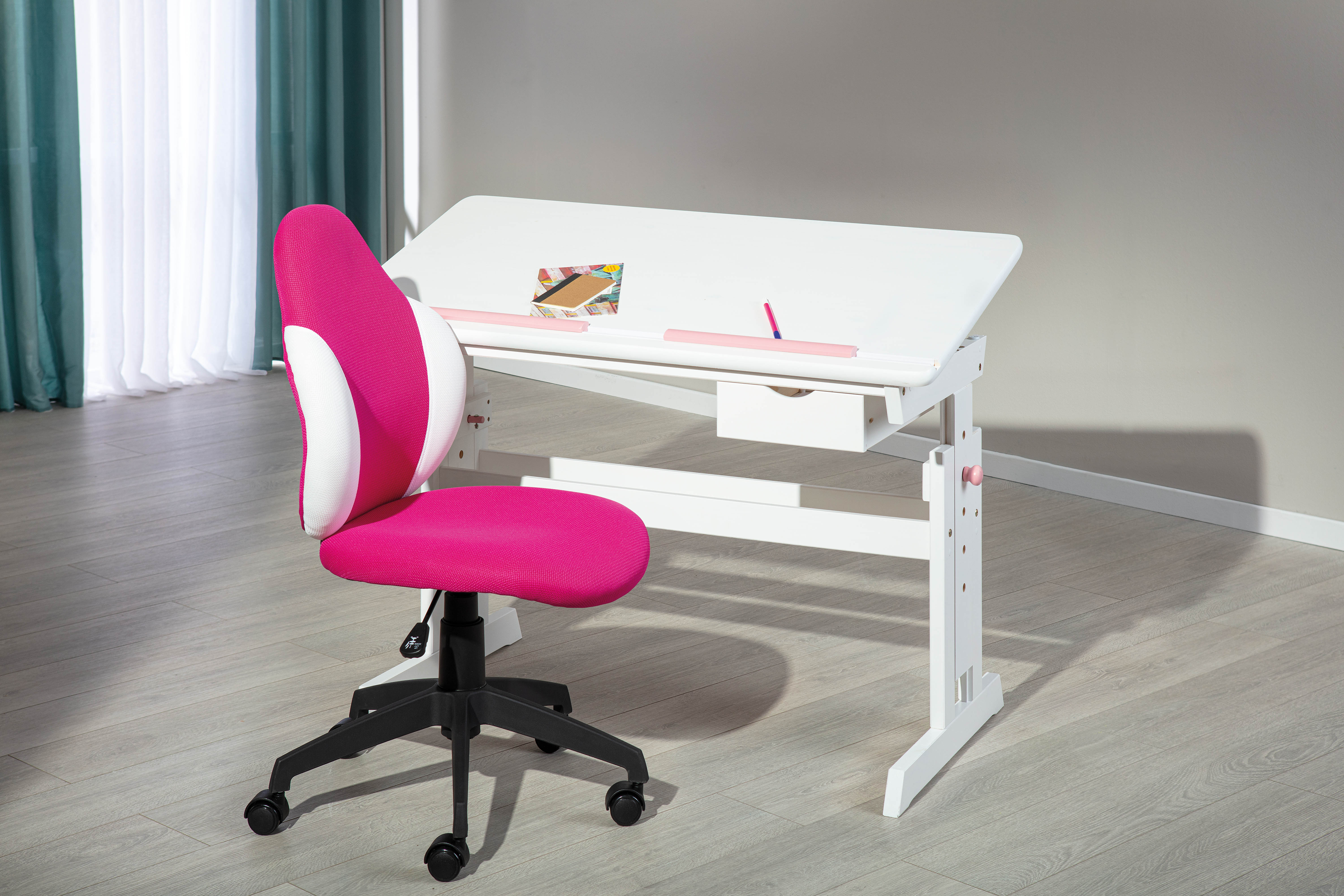 Dank der verstellbaren Tischhöhe lässt sich der Tisch perfekt an die Größe des Kindes anpassen und sorgt so für ein komfortables Arbeiten in der idealen Sitzposition. Die neigbare Tischplatte ermöglicht es, den Tisch je nach Tätigkeit zu verstellen, sodass Kinder bequem lernen oder zeichnen können. Diese Anpassungsfähigkeit hilft dabei, Haltungsschäden durch langes, falsches Sitzen zu vermeiden. Zudem gibt es eine Schublade, die Platz für alle nötigen Lernutensilien bietet und so für Ordnung sorgt.