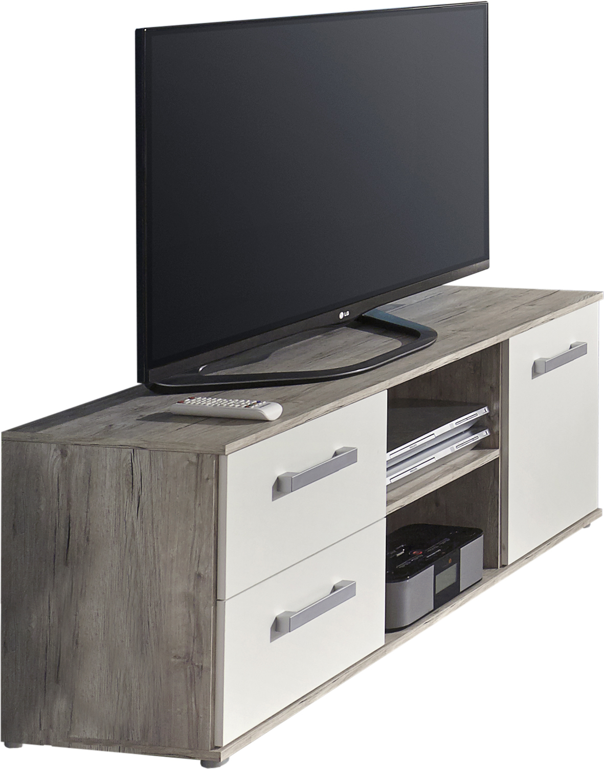 1 Lowboard mit 2 Schubkästen, 2 offenen Fächer und 1 Tür