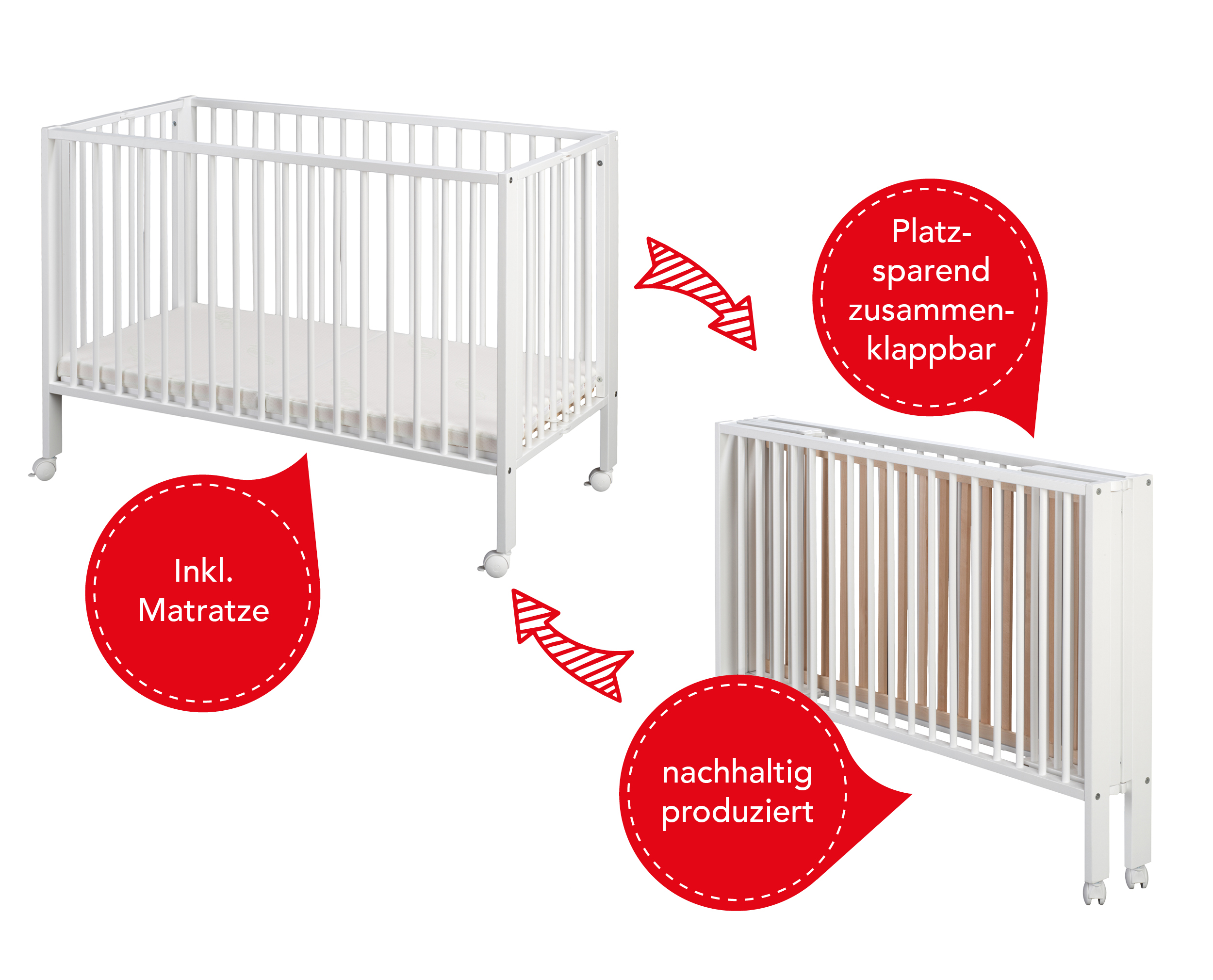 Das faltbare Reisebett JORI bietet die perfekte Schlafmöglichkeit für unterwegs. Egal wo, ein sicherer Schlafplatz für Ihr Kind ist mit diesem Reisebett gewährleistet.