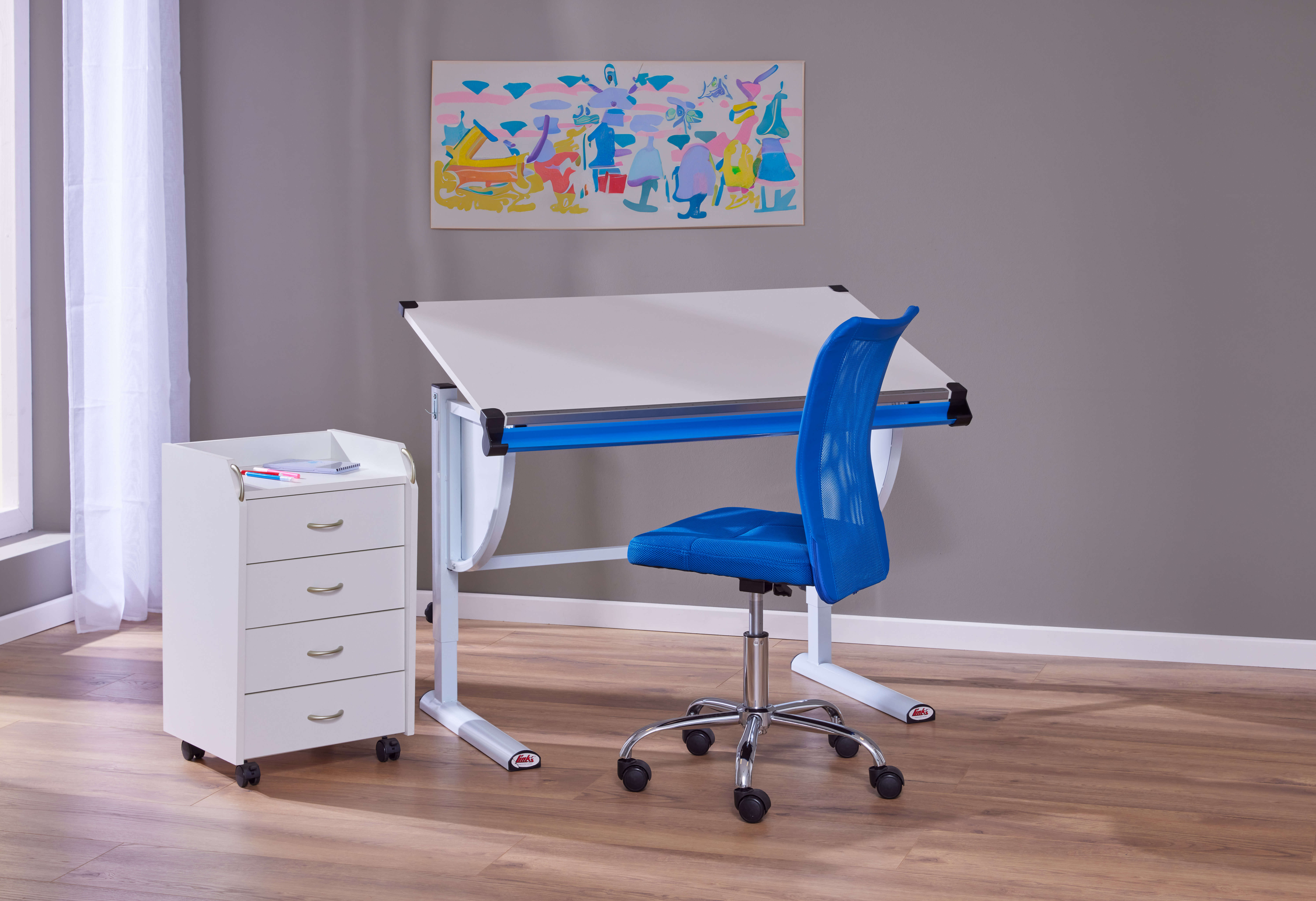 Ausgestattet mit einem verchromten Metallfußkreuz, 5 lastabhängig gebremsten Sicherheitsrollen und einer geprüften Sicherheitsgasfeder ist der Bonnie Kinderstuhl für die täglichen Anforderungen seines jungen Nutzers bestens gerüstet.