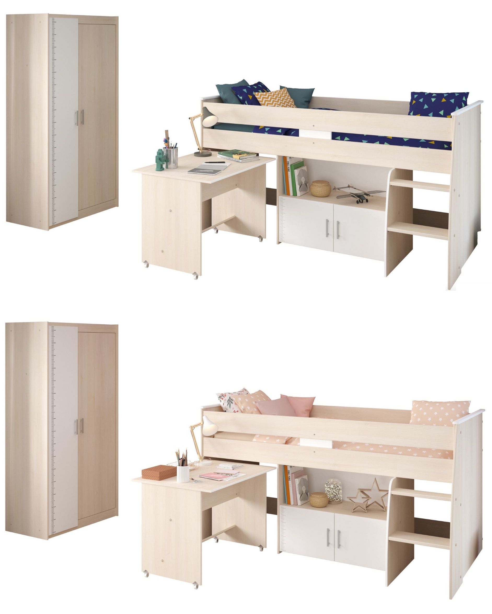| Hochbett mit ausgezogenem Schreibtisch | 206 | 110 | 183 |