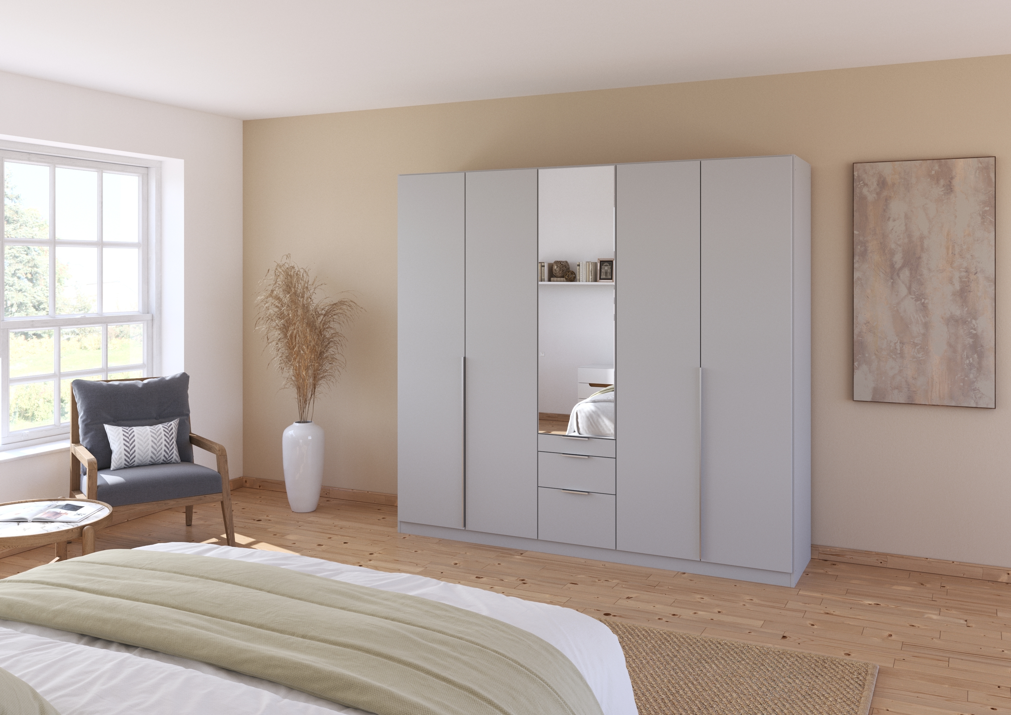 5 Türen, davon mittig 1 Tür mit Spiegel